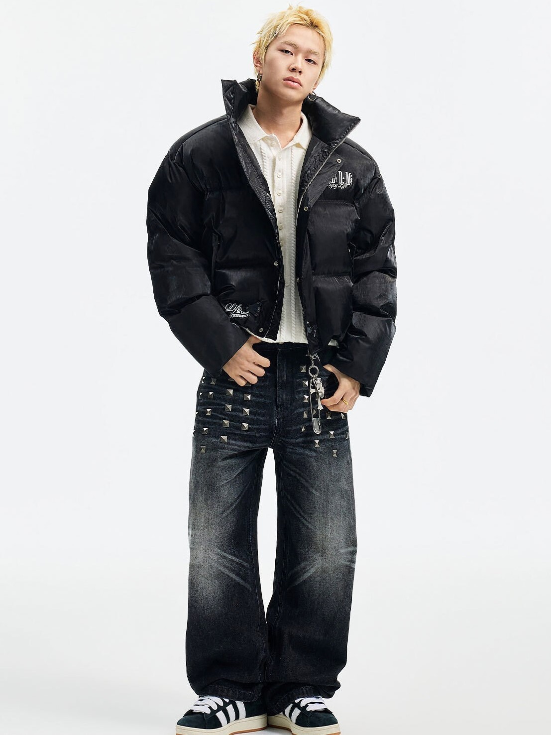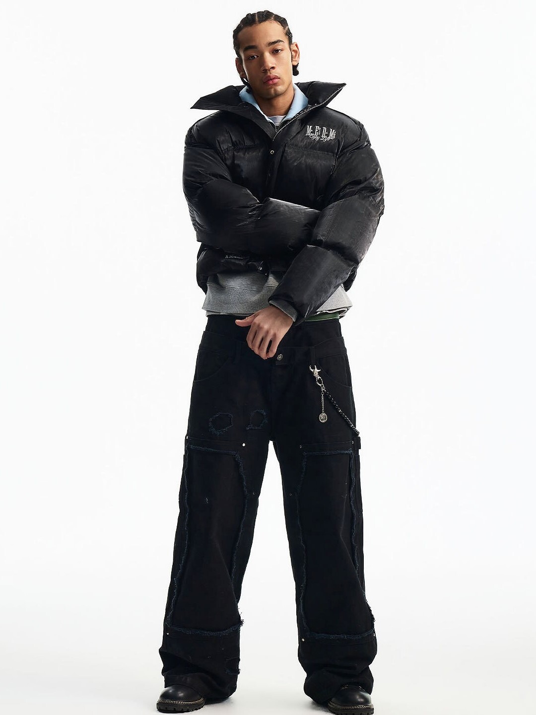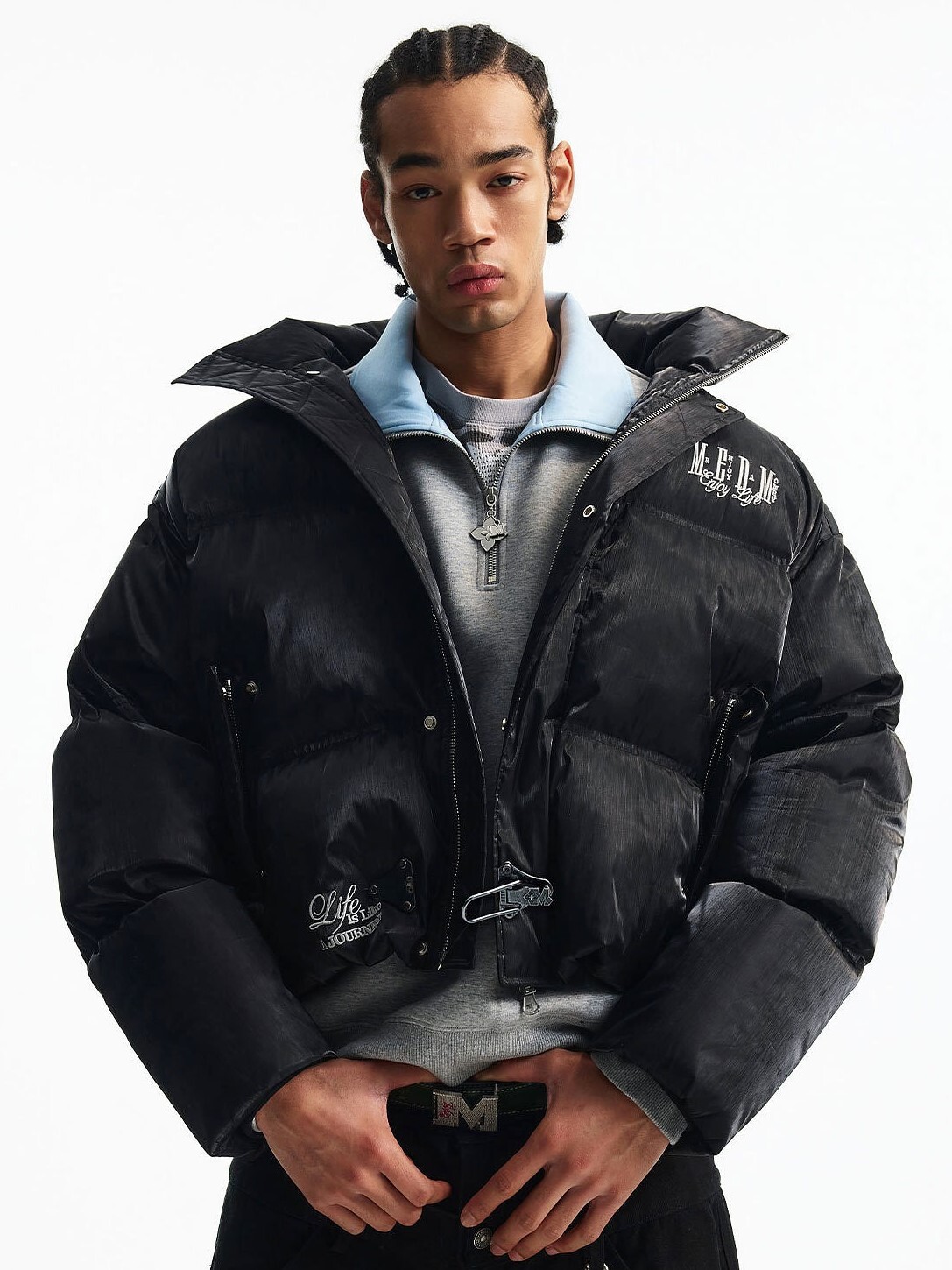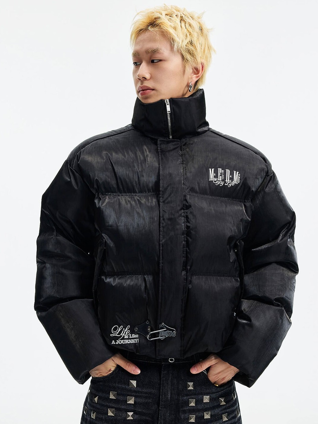 MEDM 暗黑風 液態金屬 胸前下擺Logo 鴨絨保暖 羽絨外套