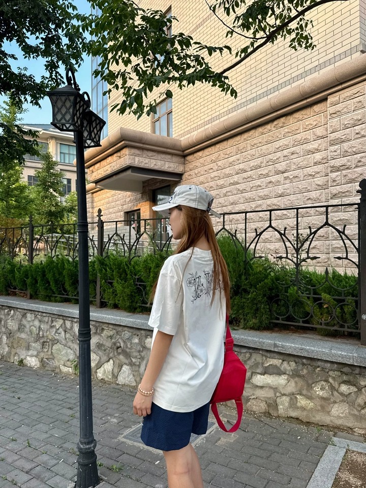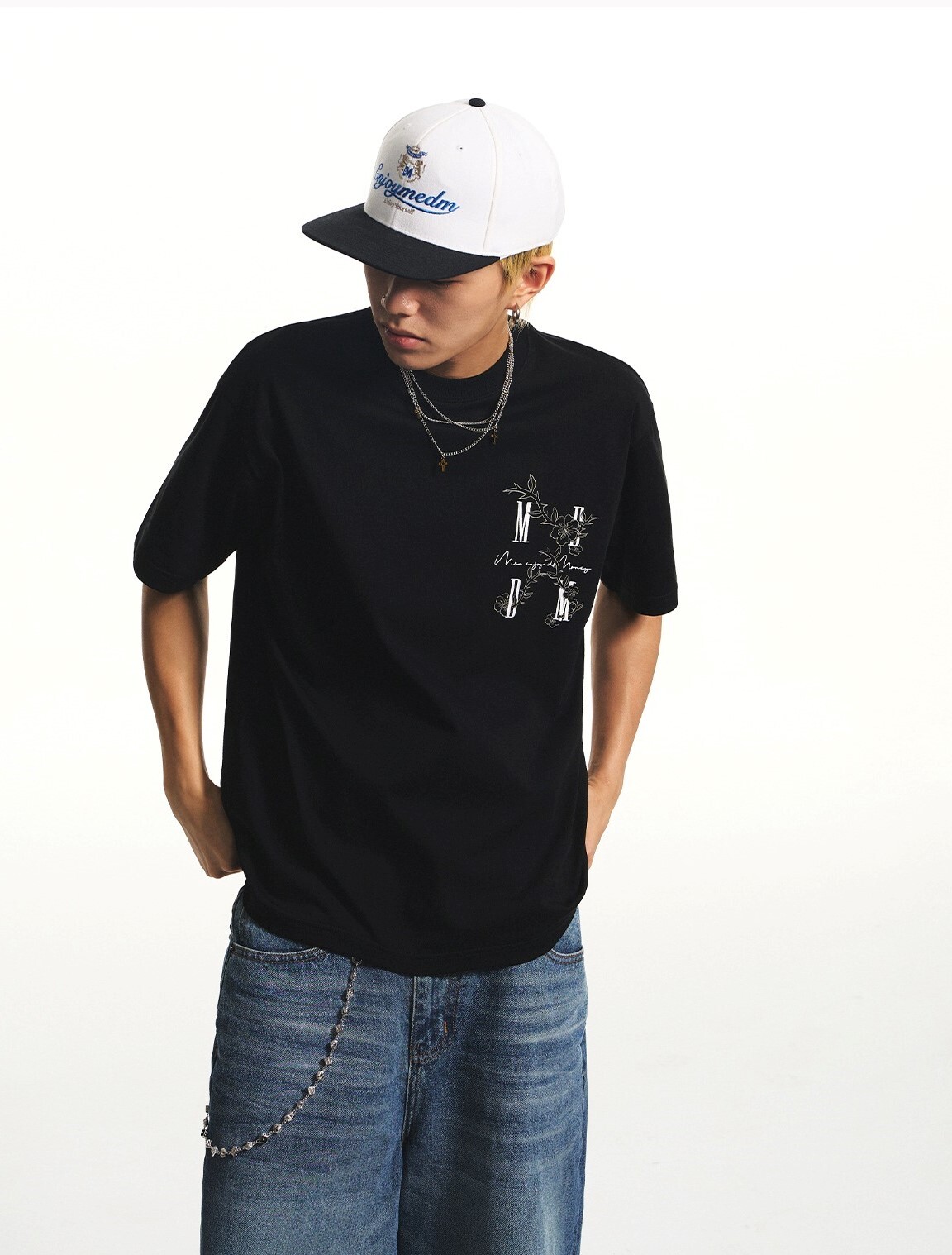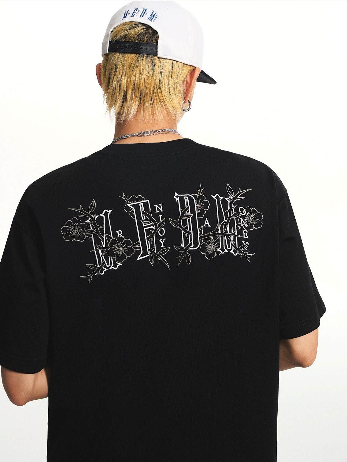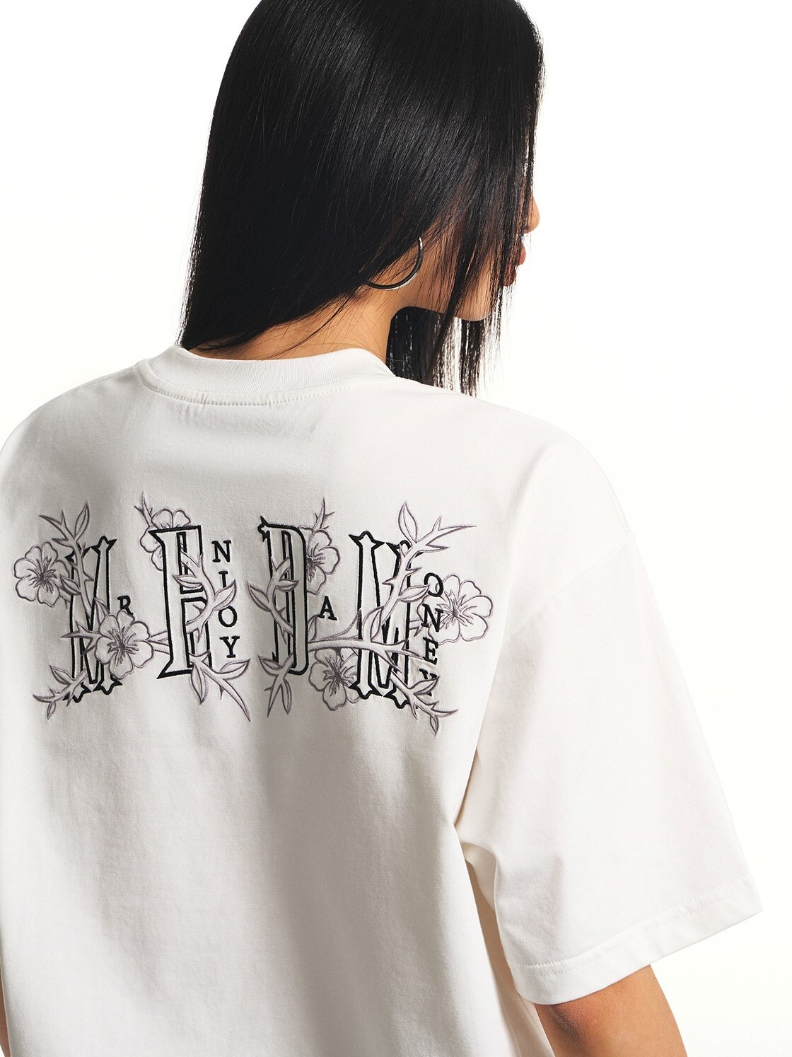 MEDM 花朵刺繡雙面Logo 防曬寬鬆 短袖 T