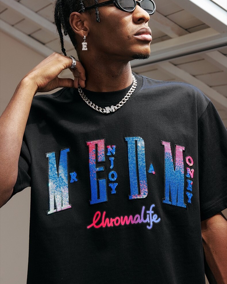 MEDM 滿版珠片 炫彩字體Logo 短袖 T