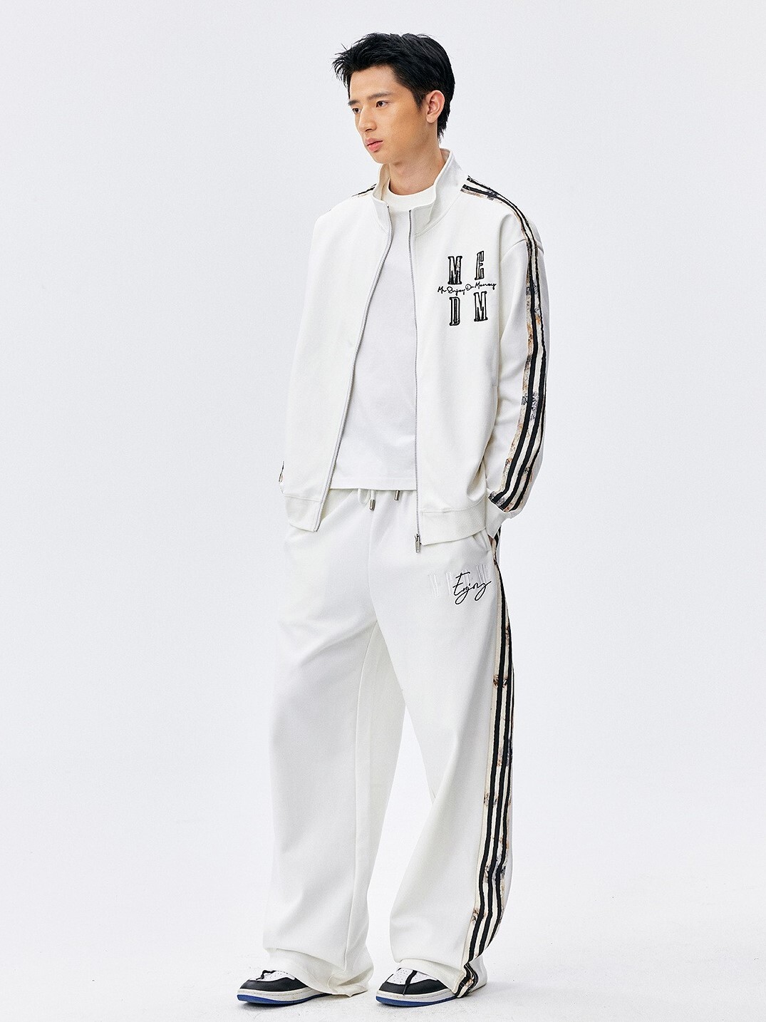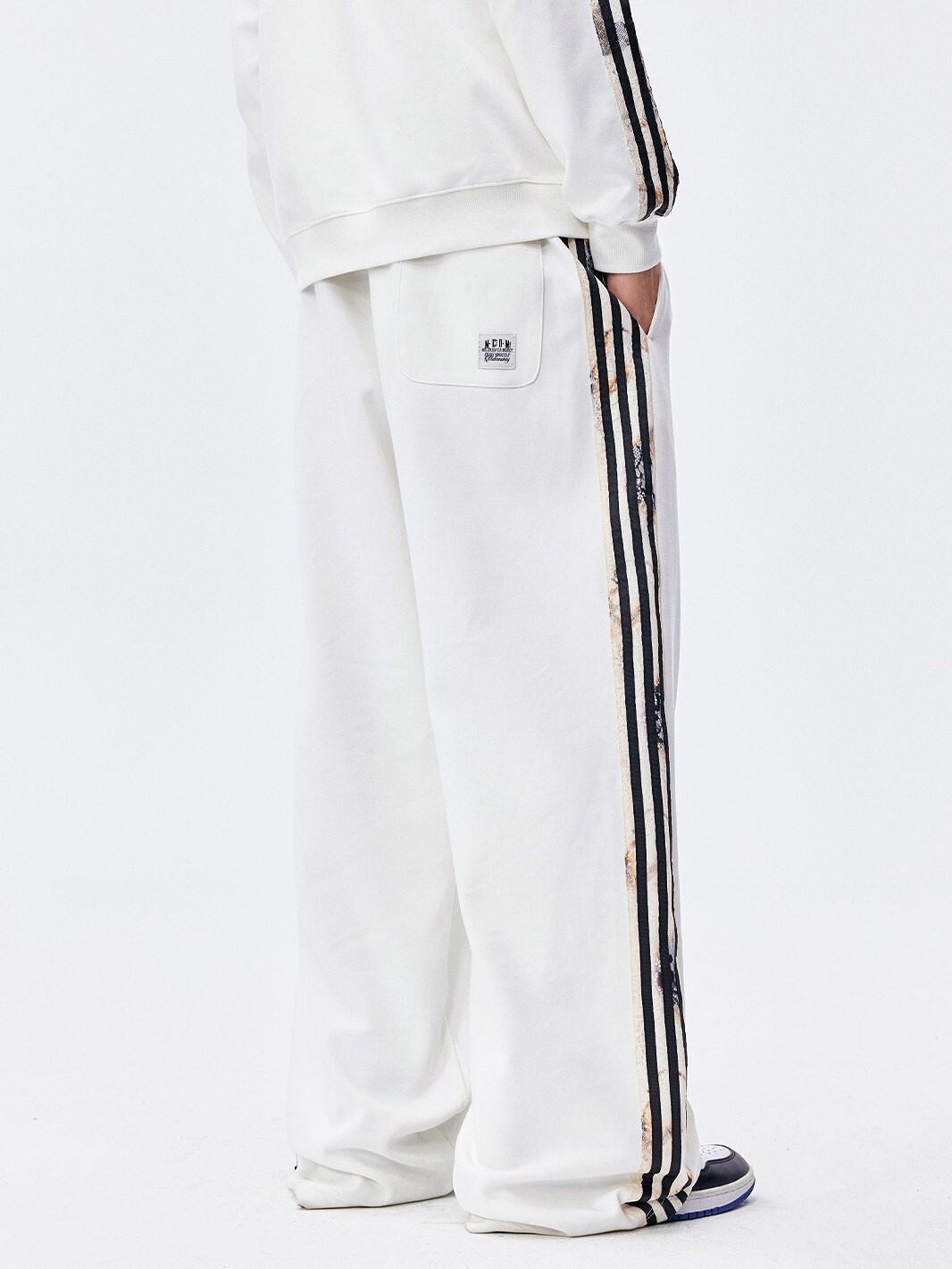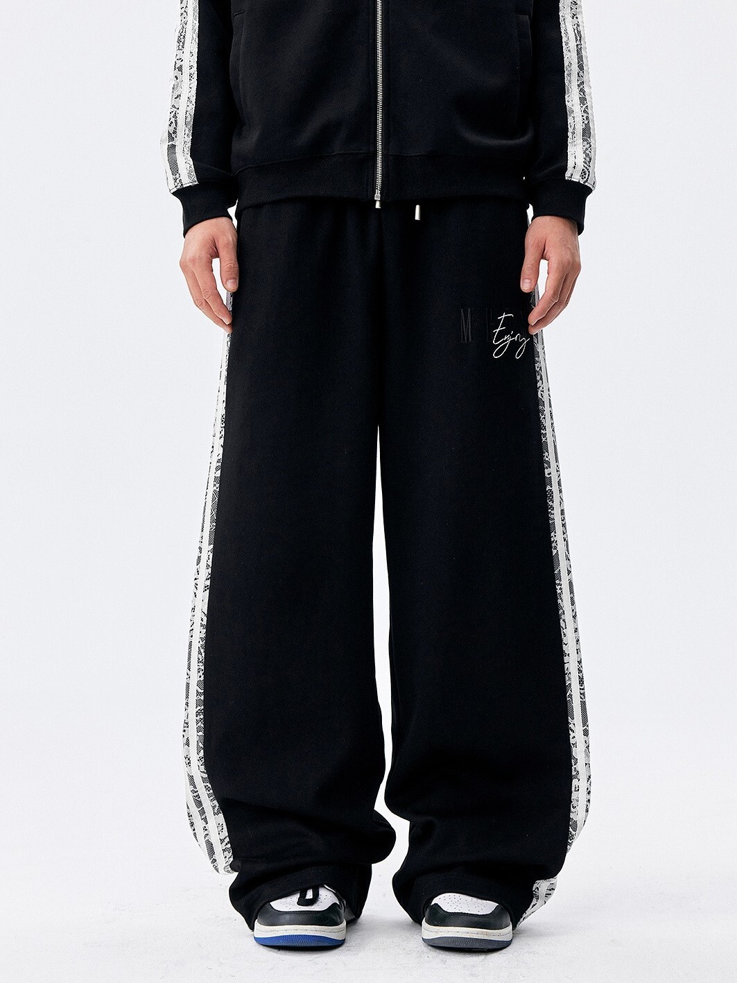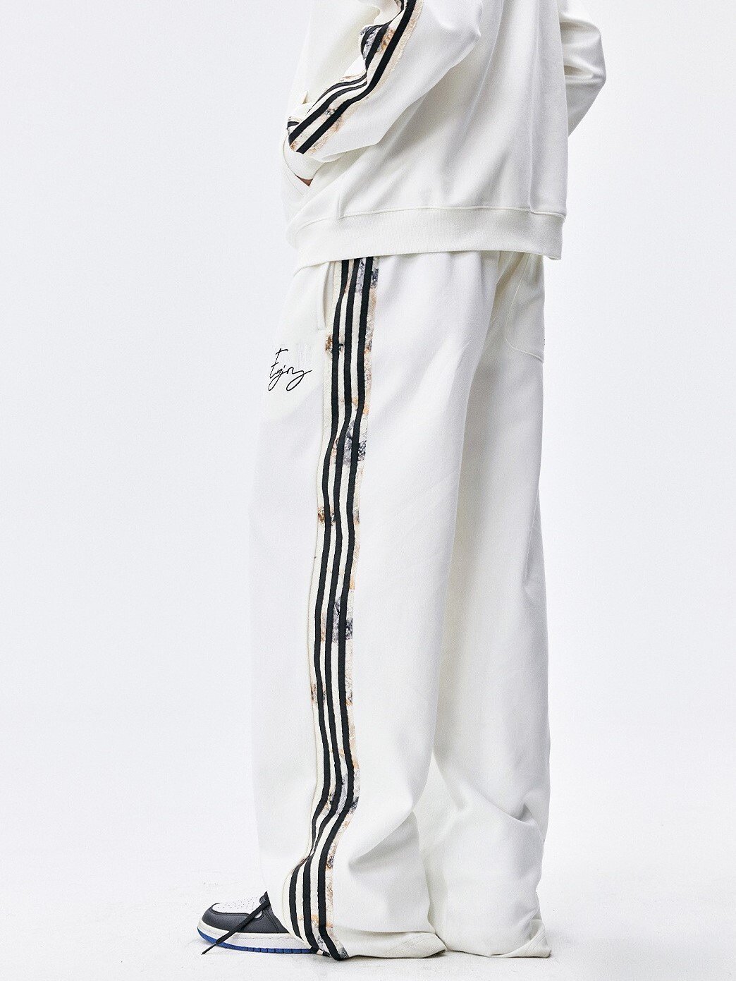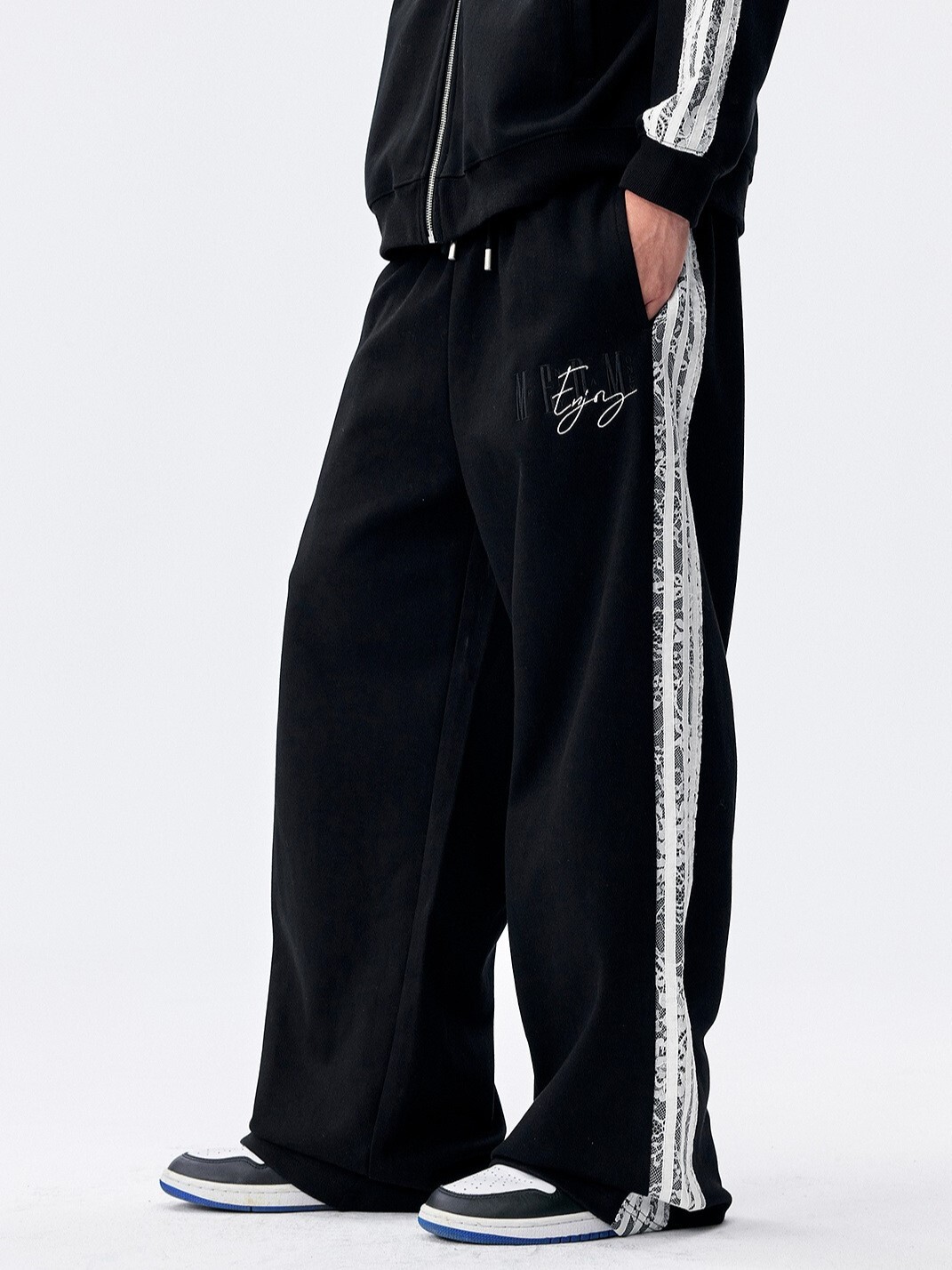 MEDM 蕾絲拼接條紋 寬鬆運動長褲