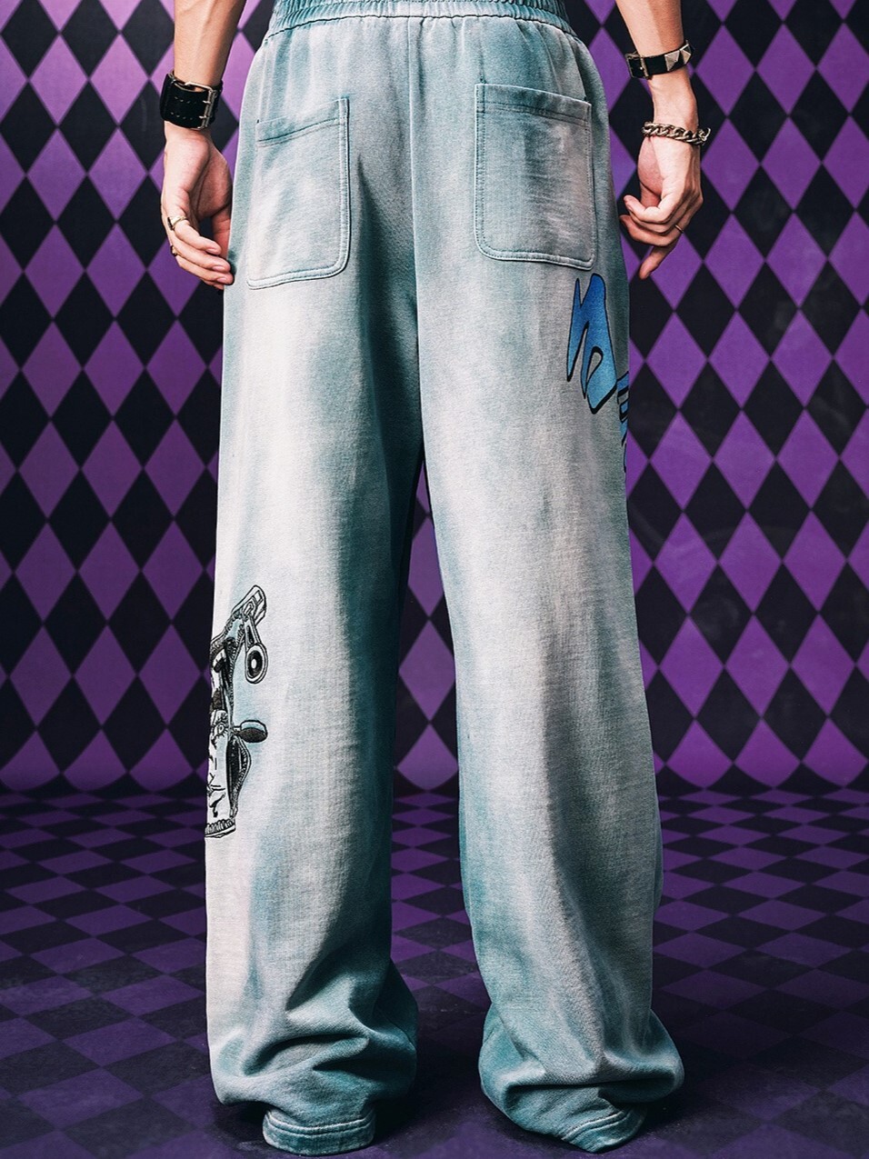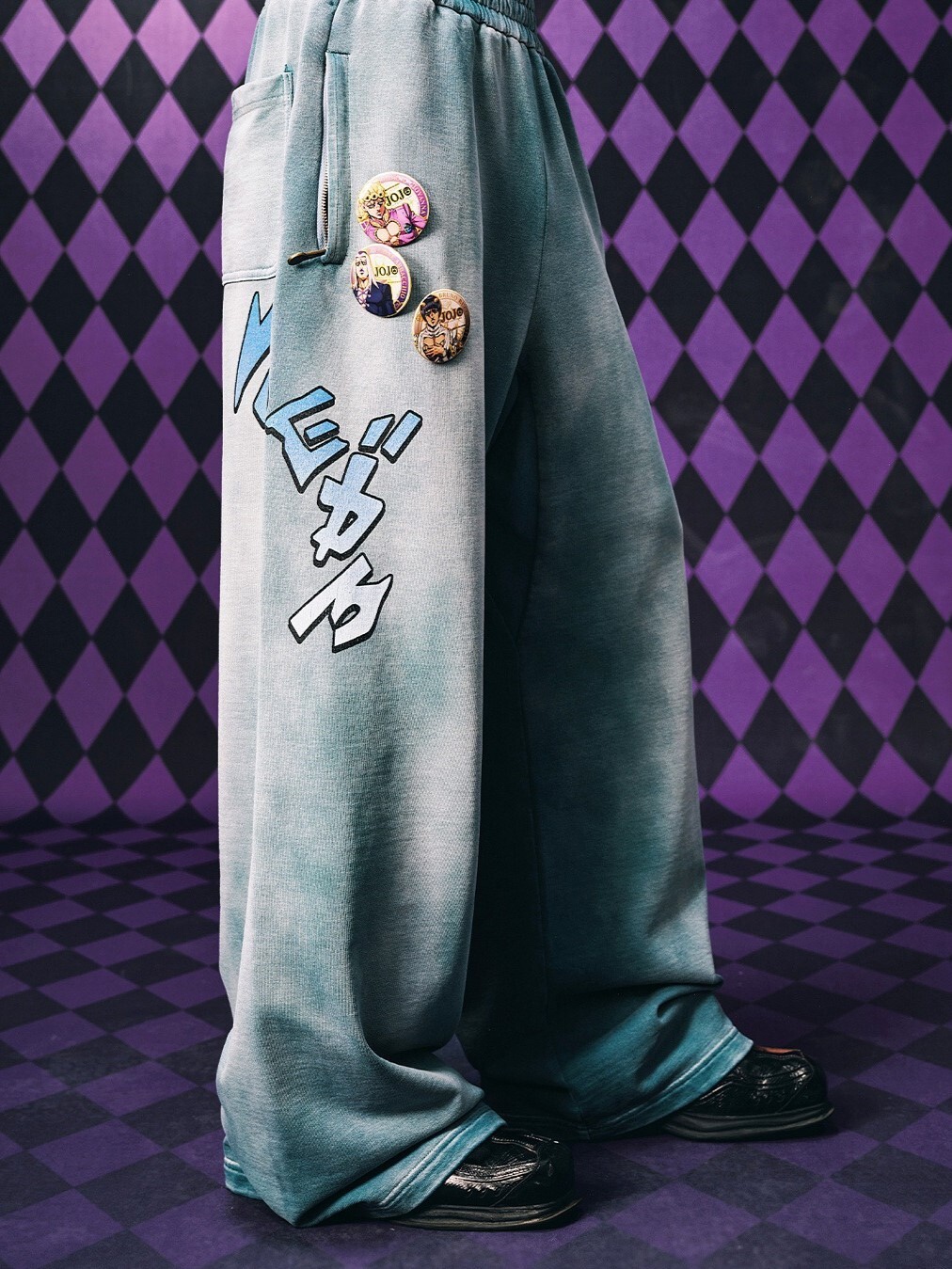 MEDM x JOJO的奇妙冒險 線稿款刺繡 鬆緊 復古做舊 棉長褲