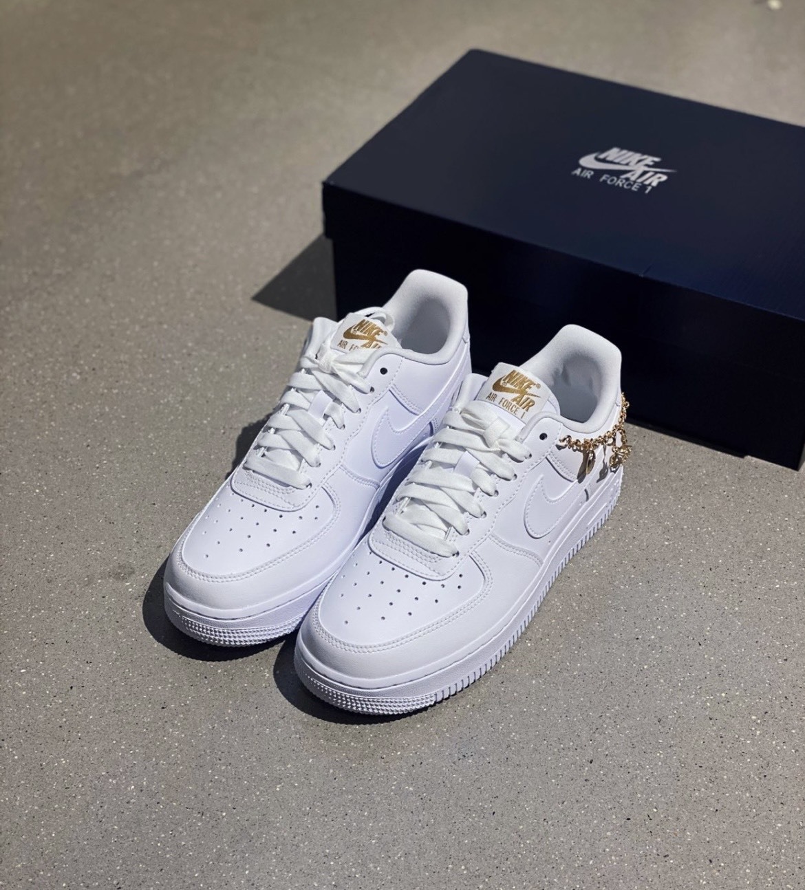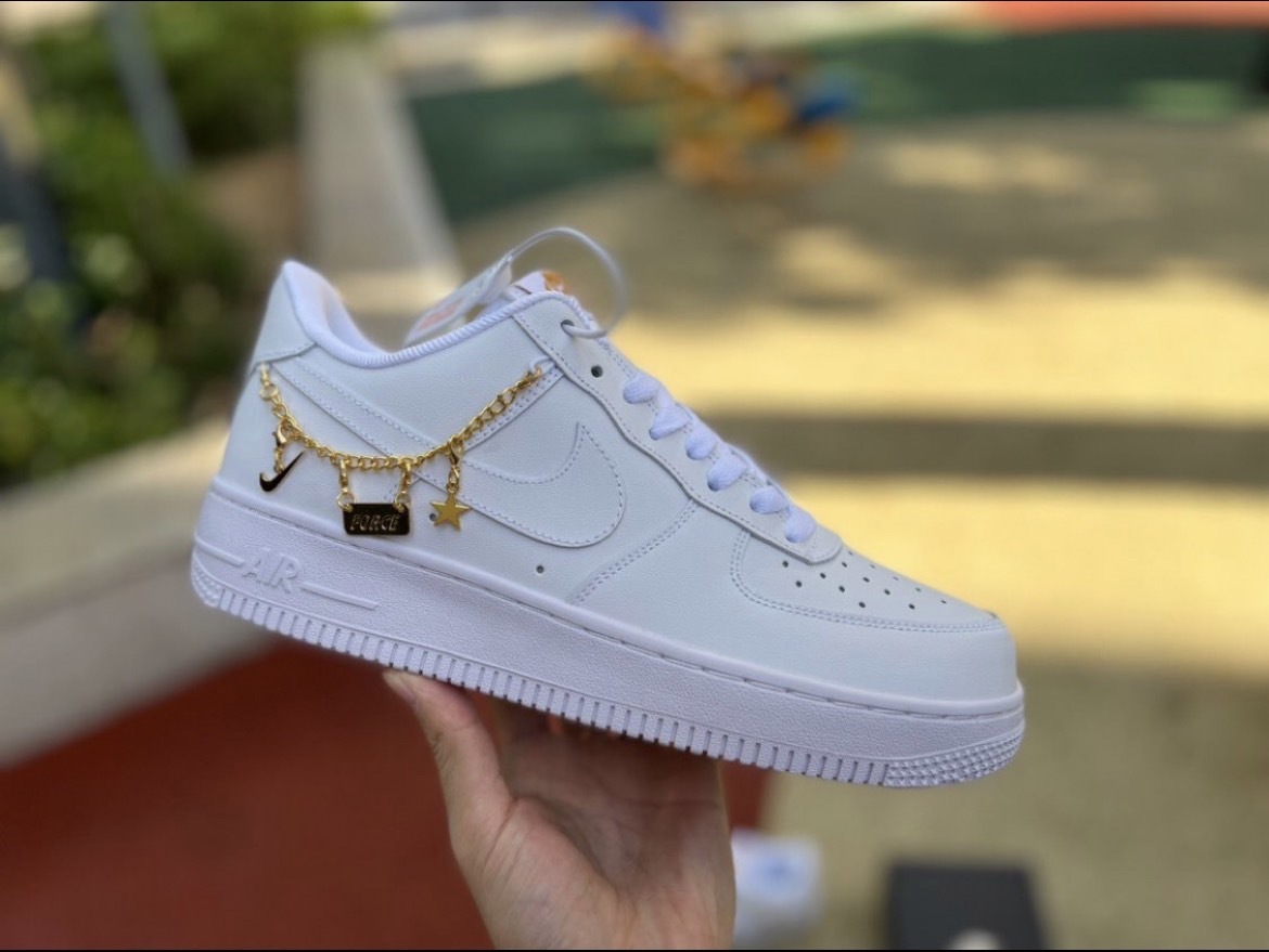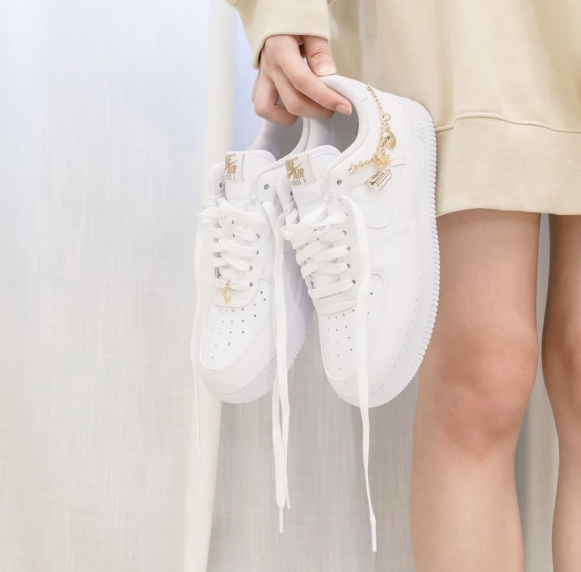 Nike Air Force 1 LX "Lucky Charms" 全白 金鍊條 女款