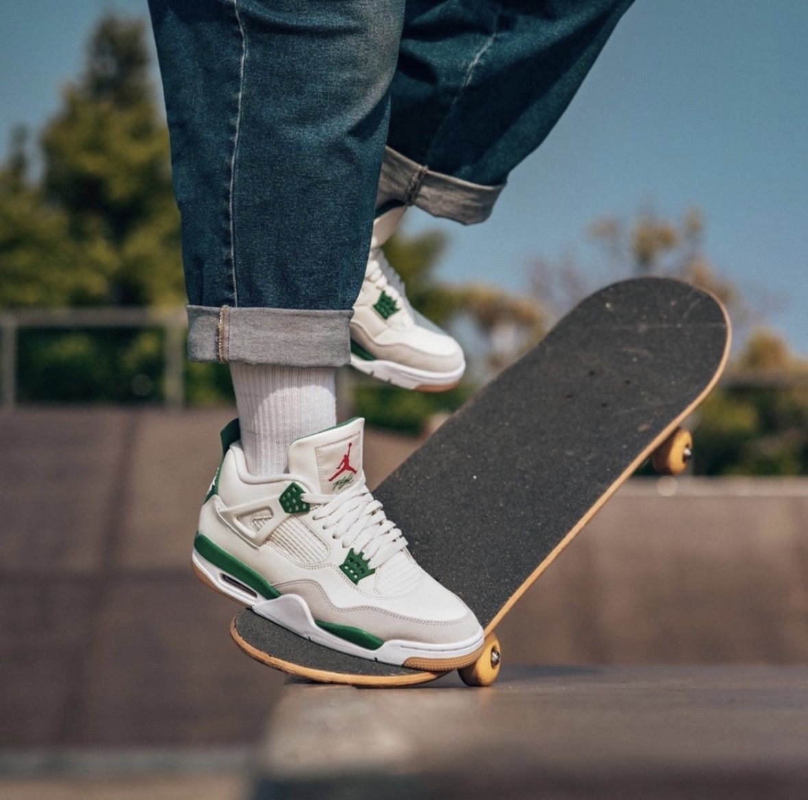 Nike Air Jordan 4 x Nike SB Pine Green 聯名限定 白綠 綠松石 復古籃球鞋 AJ4