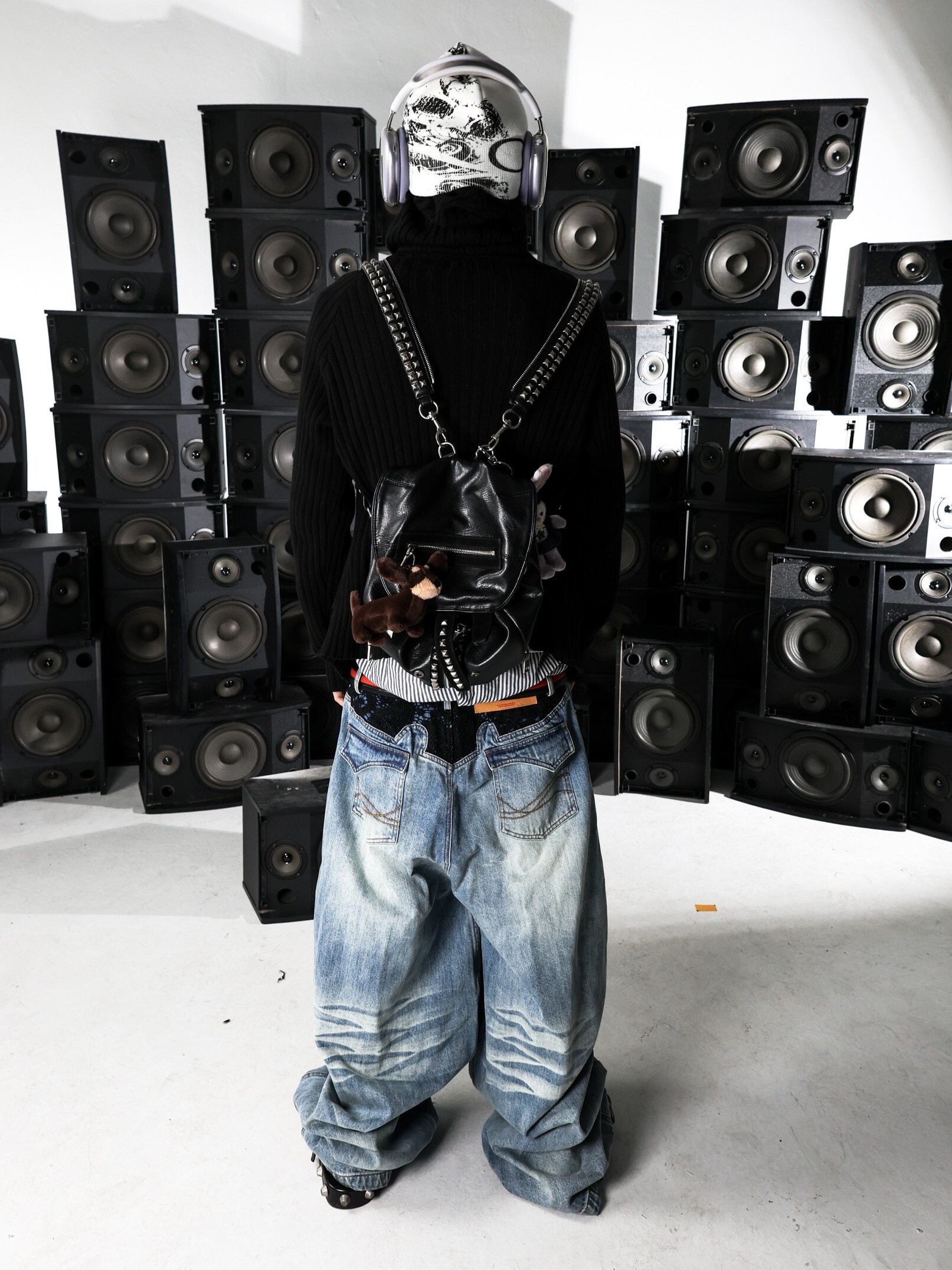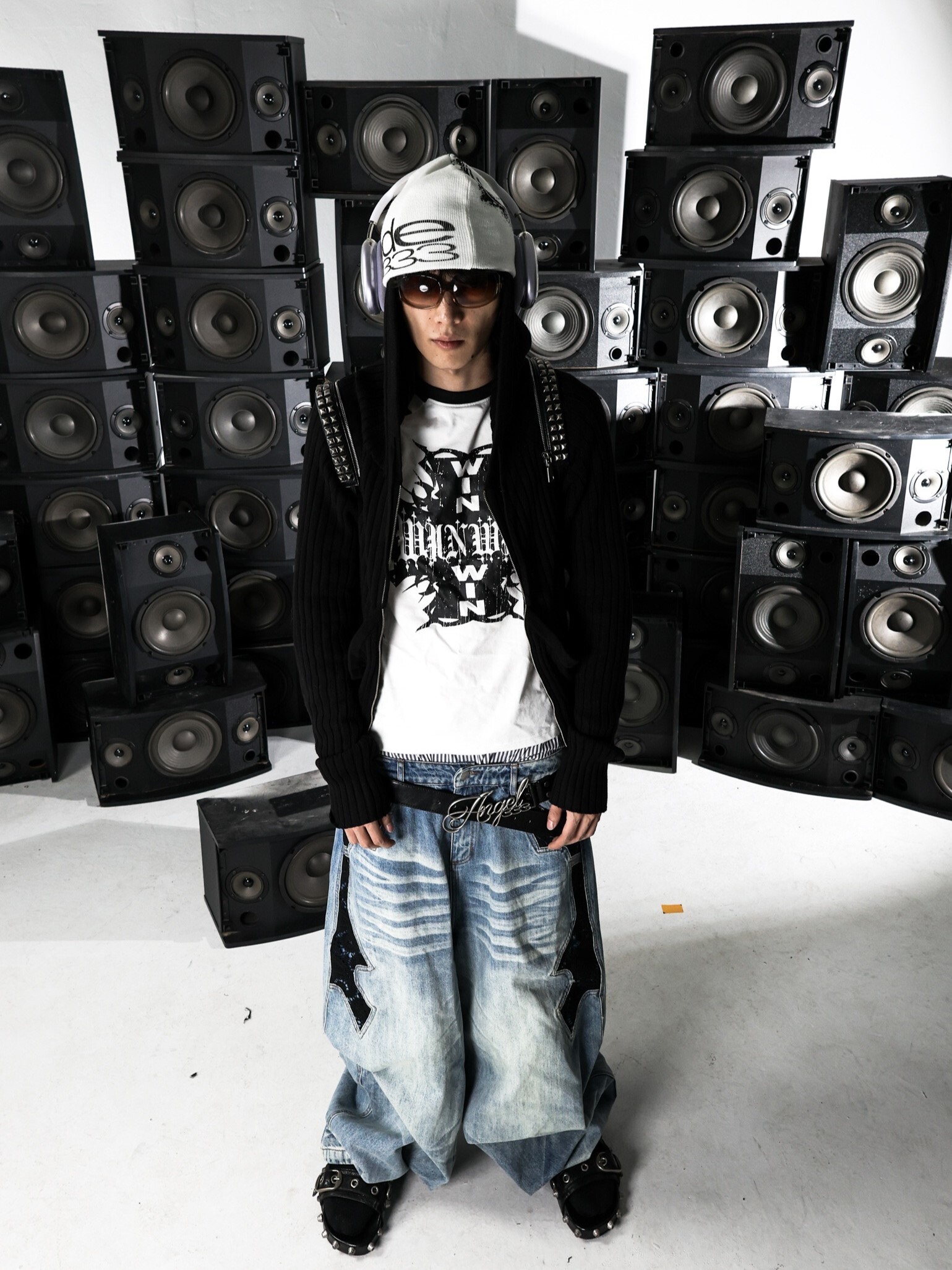 PCCVISION 3MAN0N 蕾絲拼接 藍黑雙色 做舊寬鬆 牛仔褲