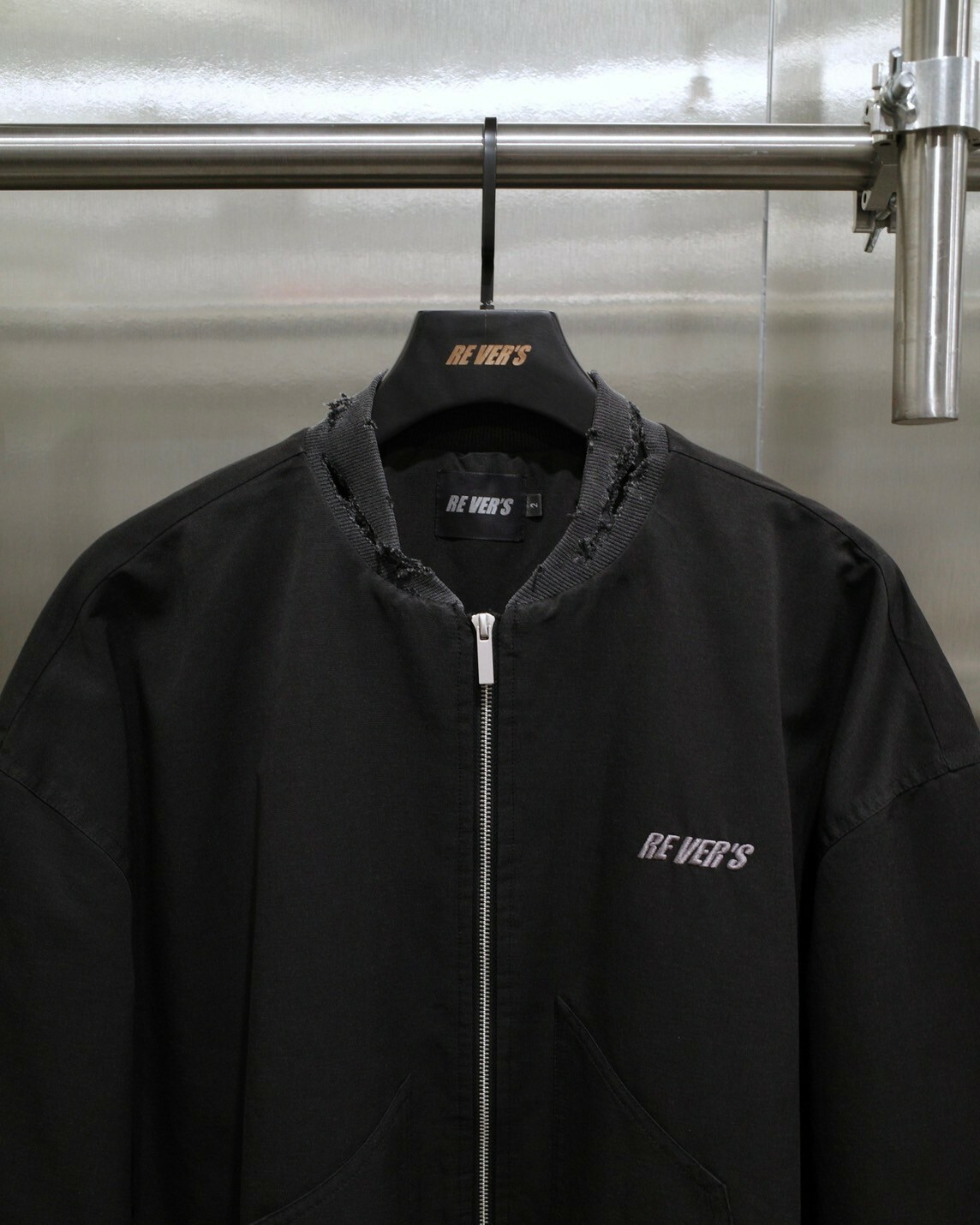 RE VER'S 刺繡Logo做舊破壞解構 短版飛行外套 / TRINITY - WASHED BLACK - 水洗黑
