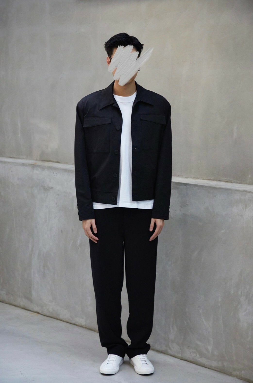 RE VER'S 層次穿搭 質感面料 黑短版夾克 外套