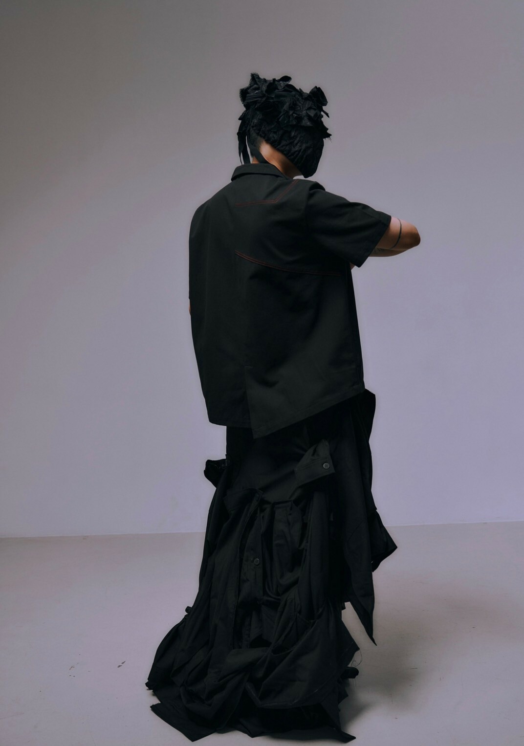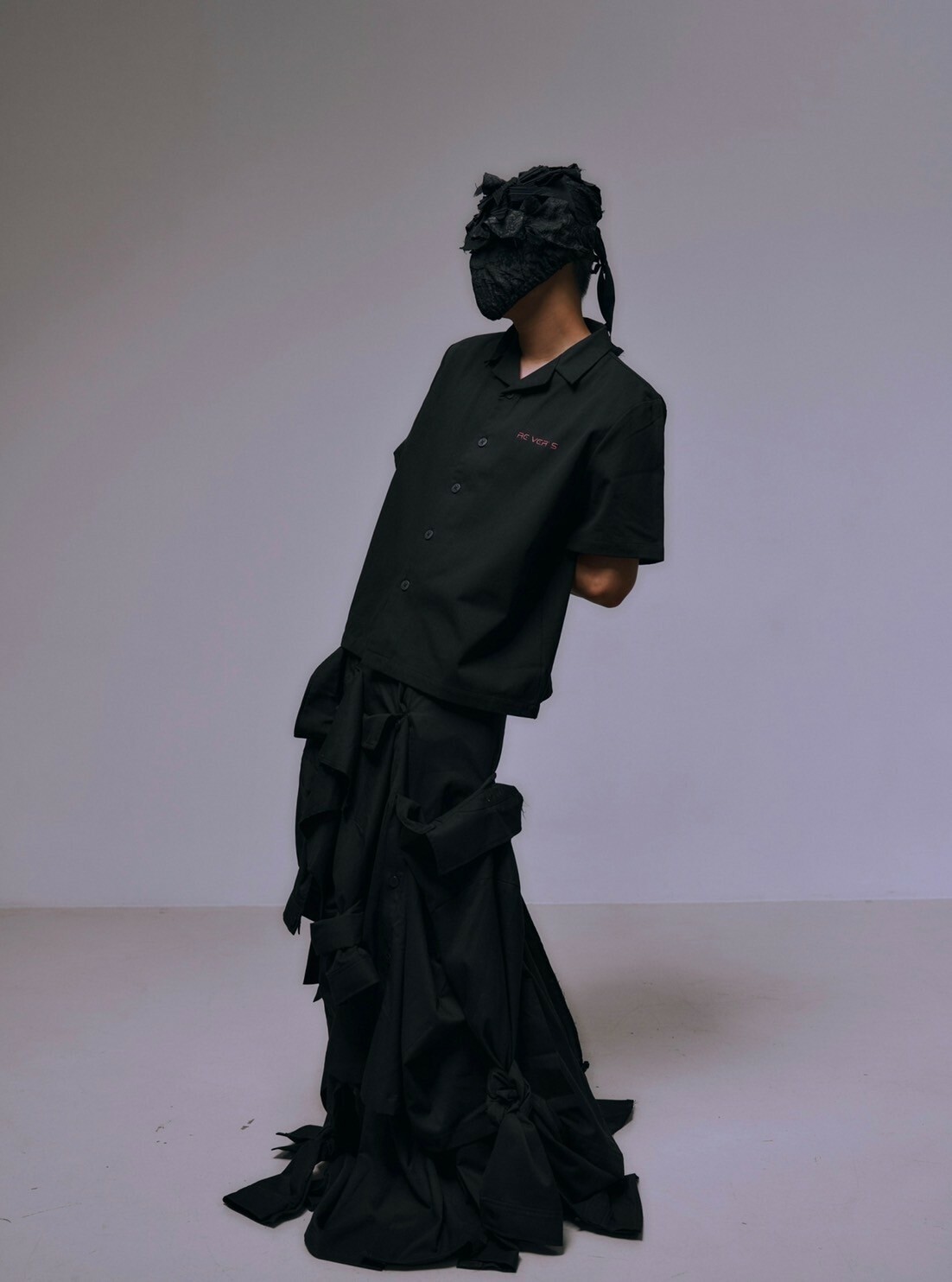 RE VER'S / NOIR 黑紅刺繡Logo 切割解構襯衫 - BLACK DAWN -