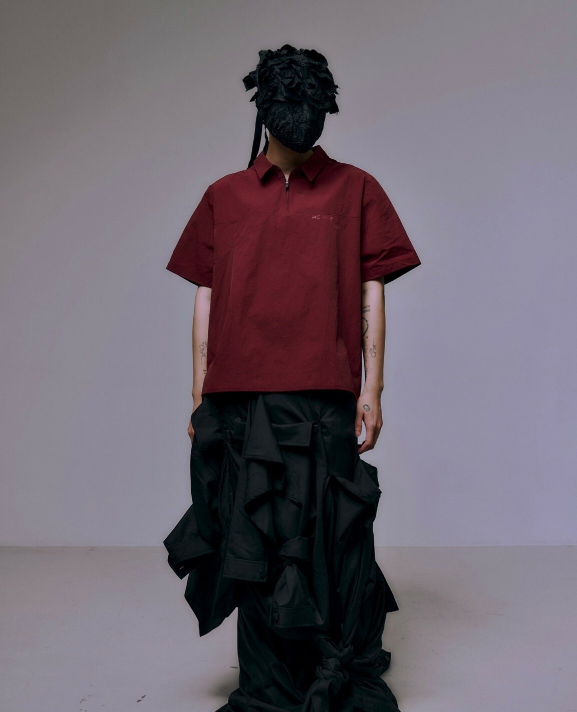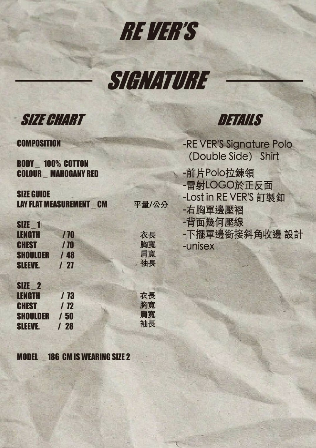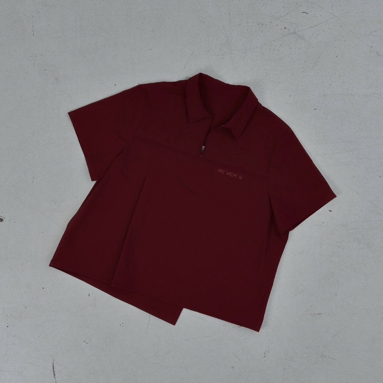 RE VER'S / SIGNATURE 簽字Logo雙面解構拉鍊短袖 - Mahogany Red -