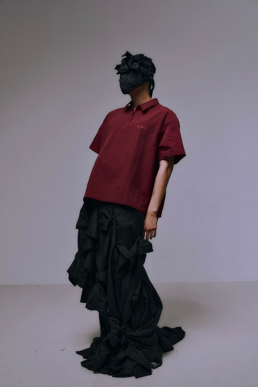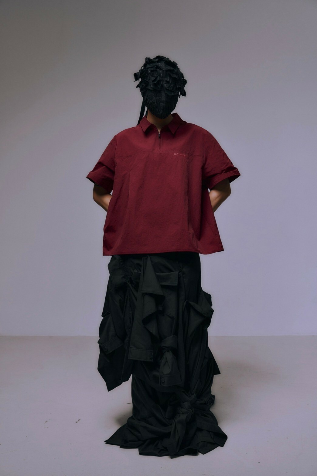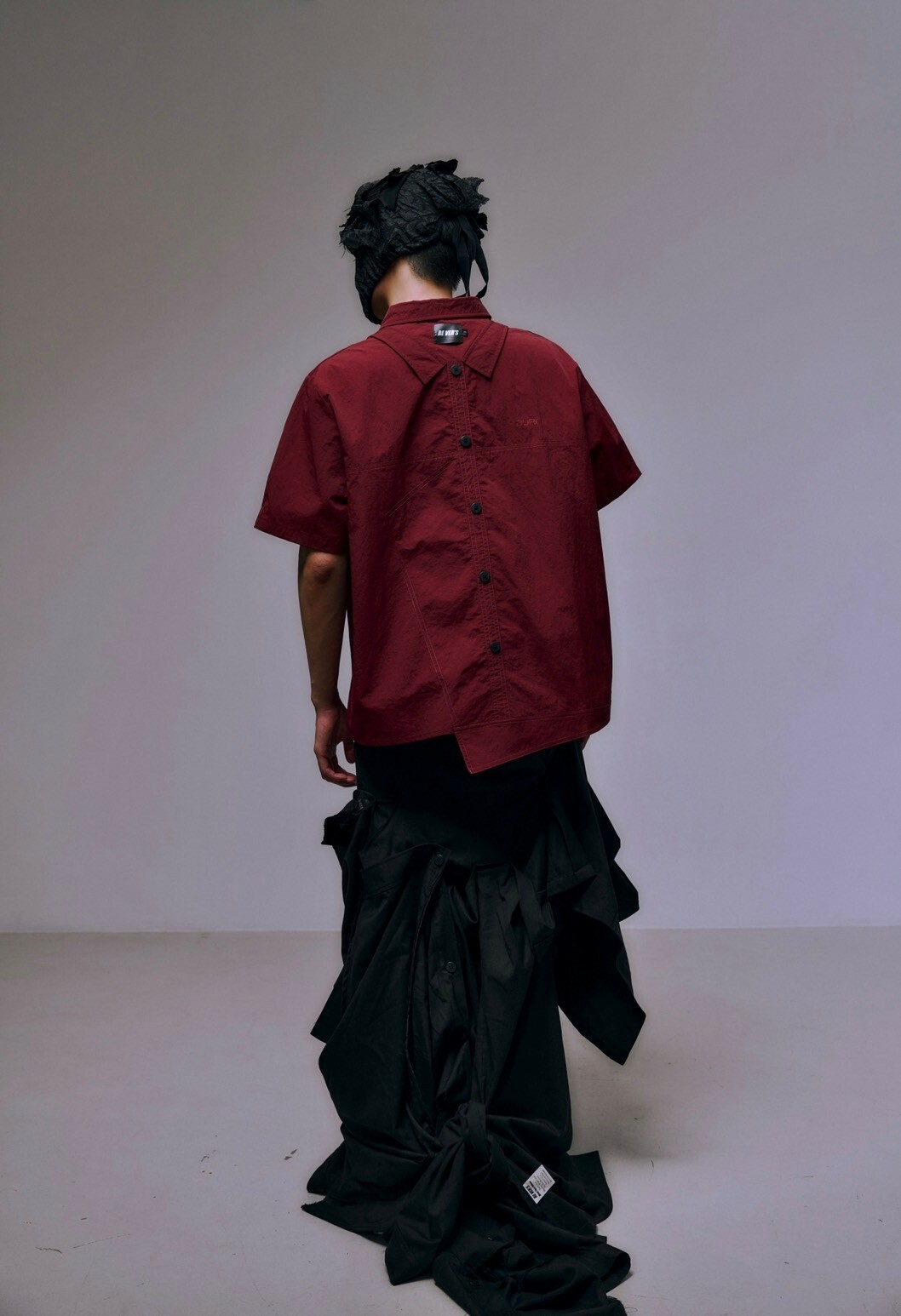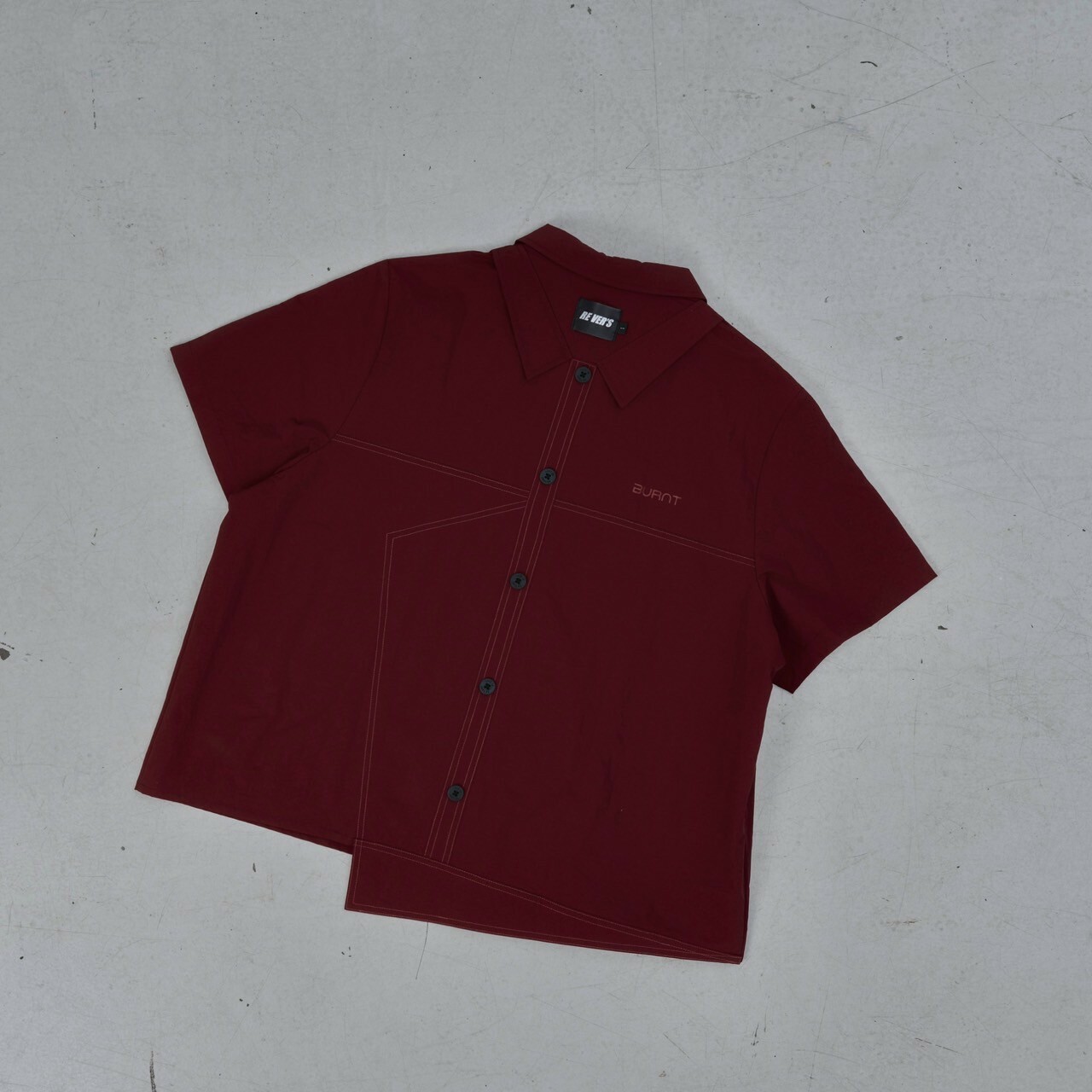 RE VER'S / SIGNATURE 簽字Logo雙面解構拉鍊短袖 - Mahogany Red -