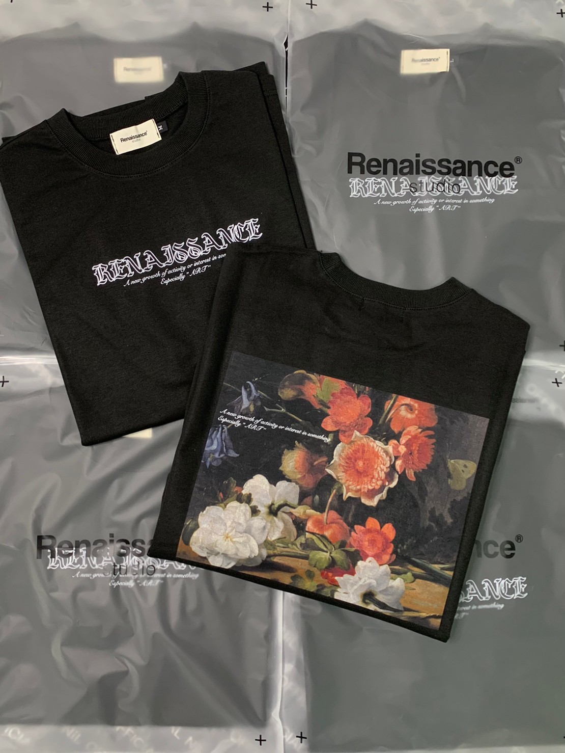 RENAISSANCE 新款 花卉 油畫鏤空 歌德字體 Logo 短袖T