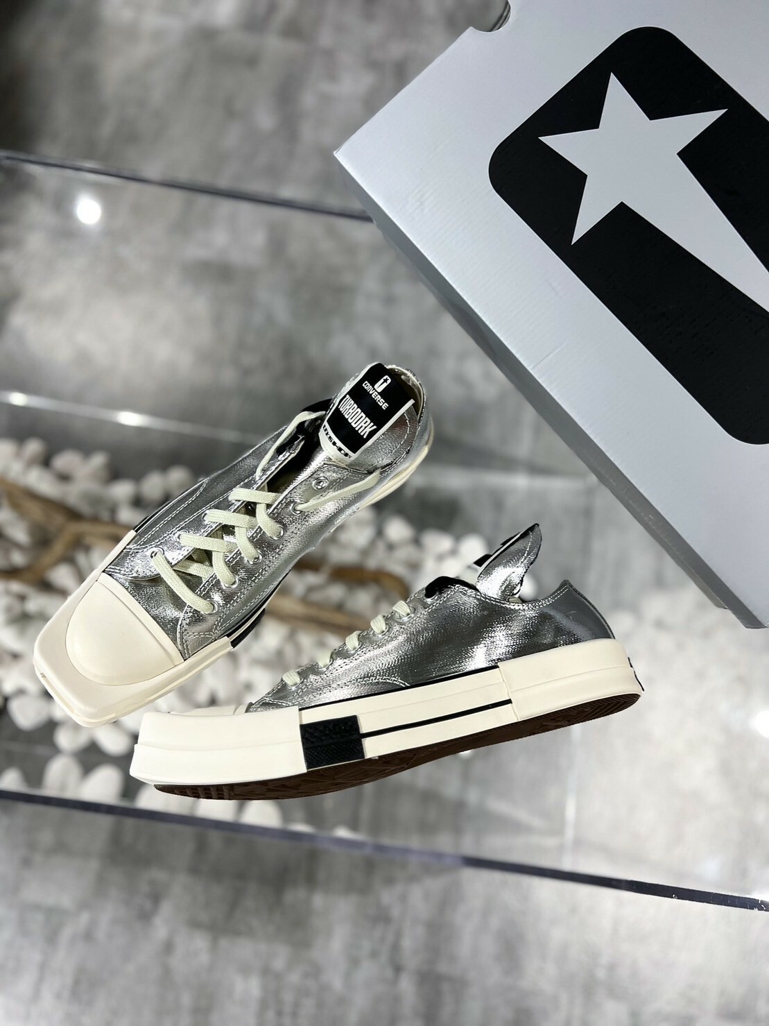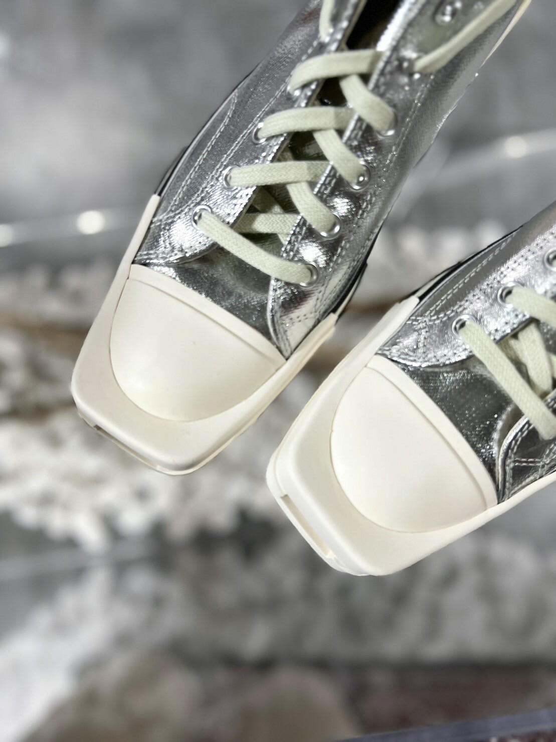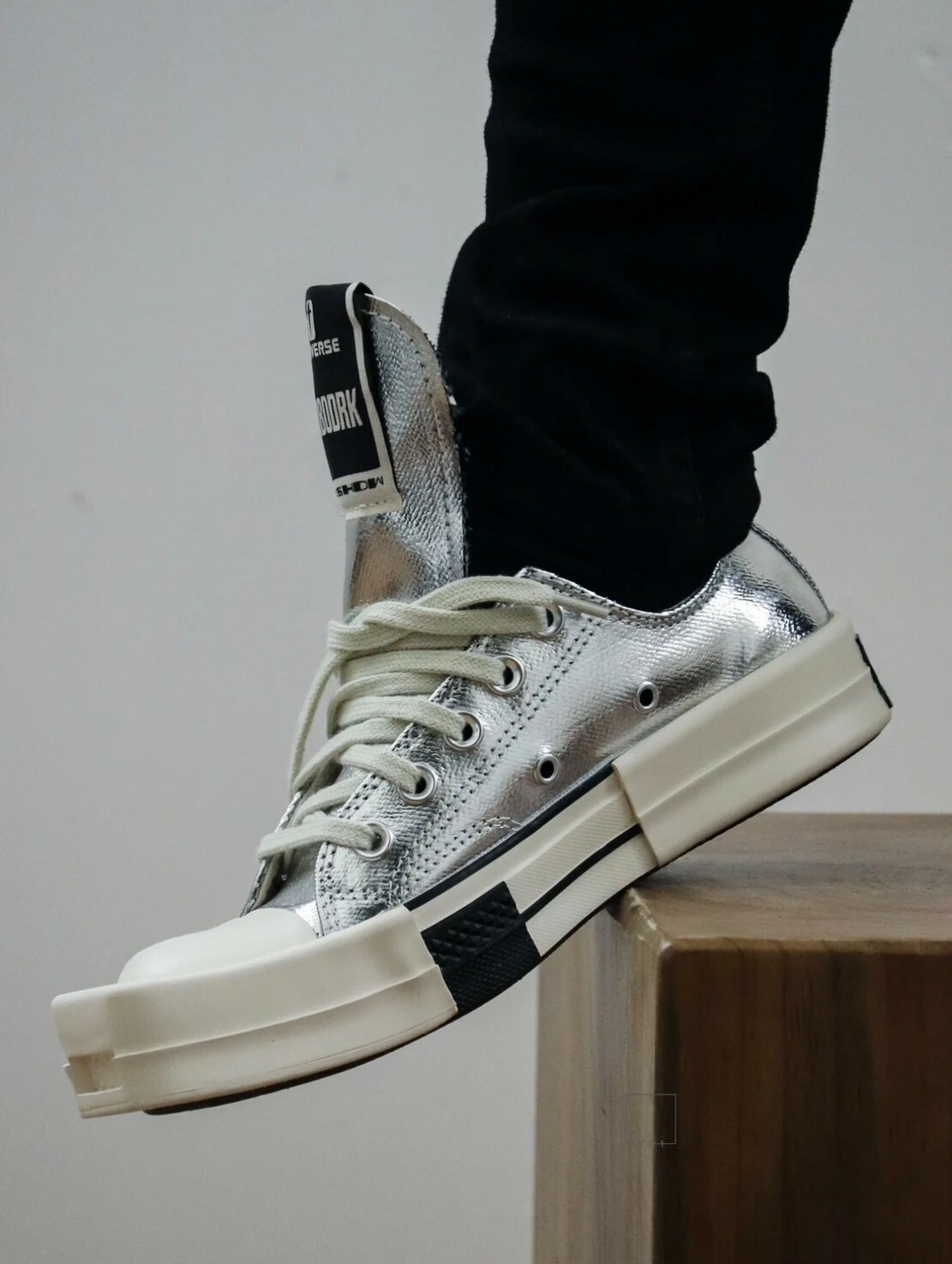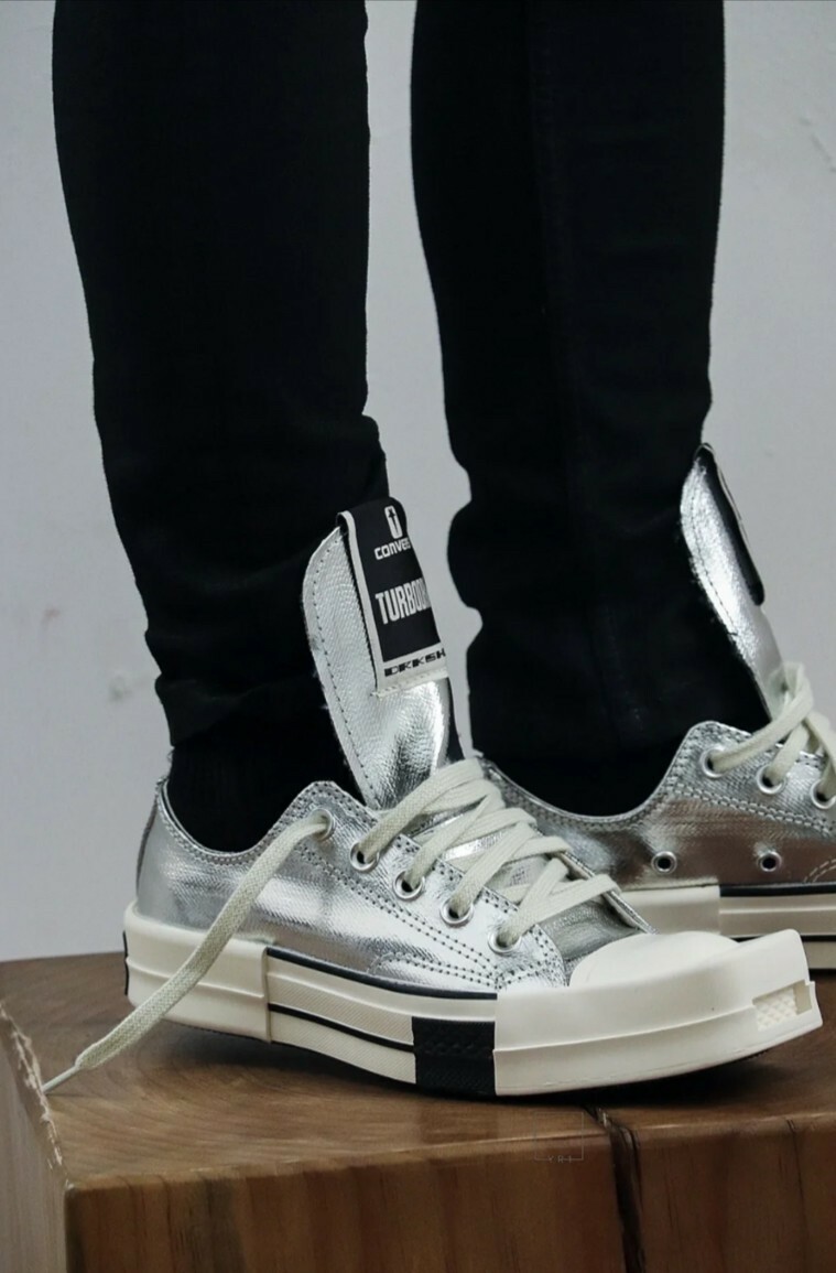 Rick Owens DRKSHDW x Converse TURBODRK 聯名限定 金屬銀 上蠟單寧牛仔布 方頭鞋