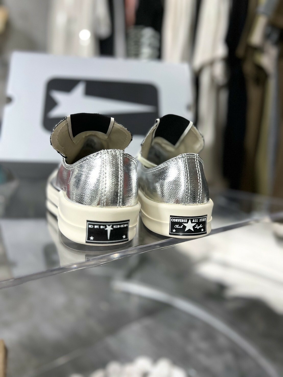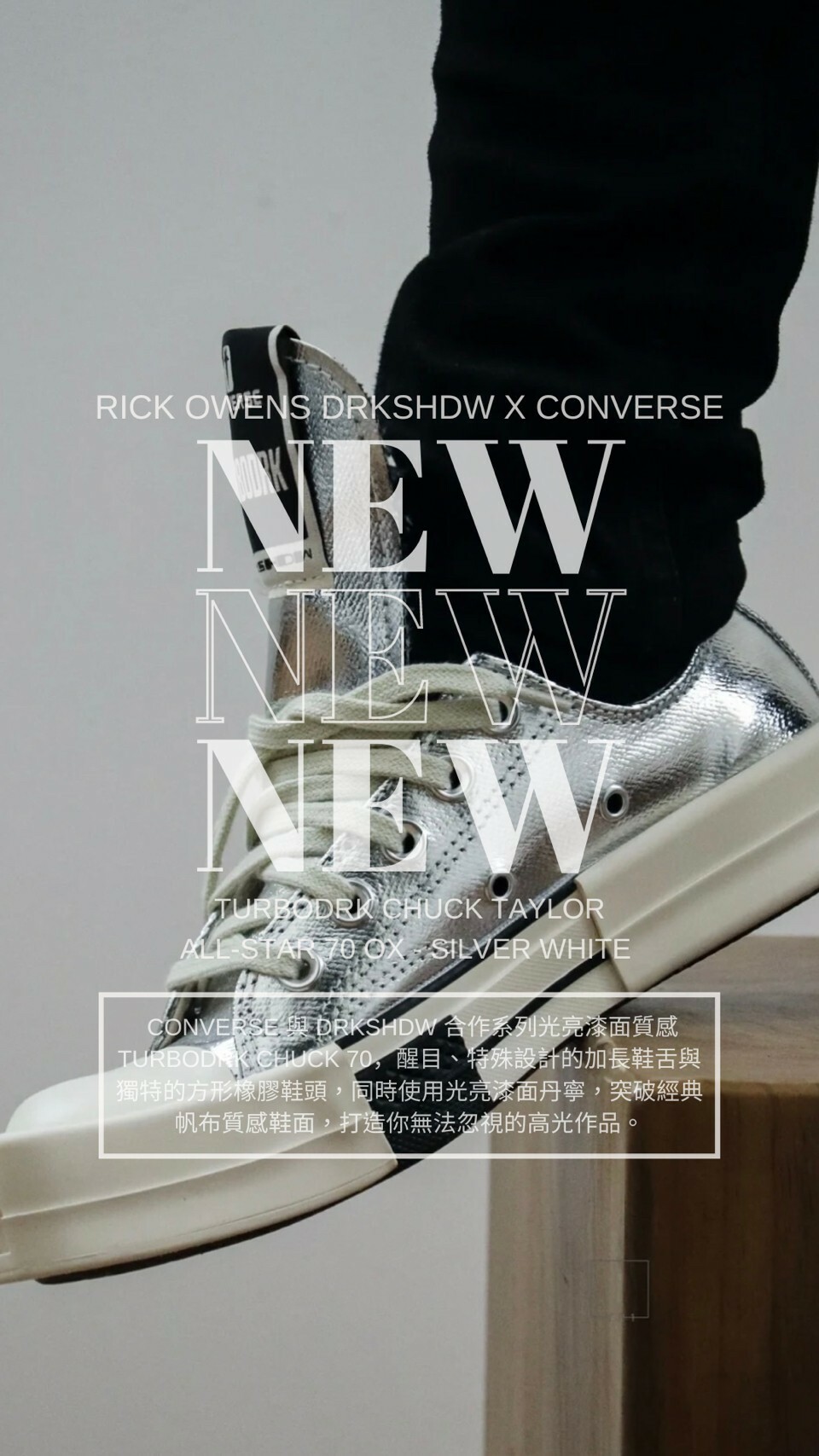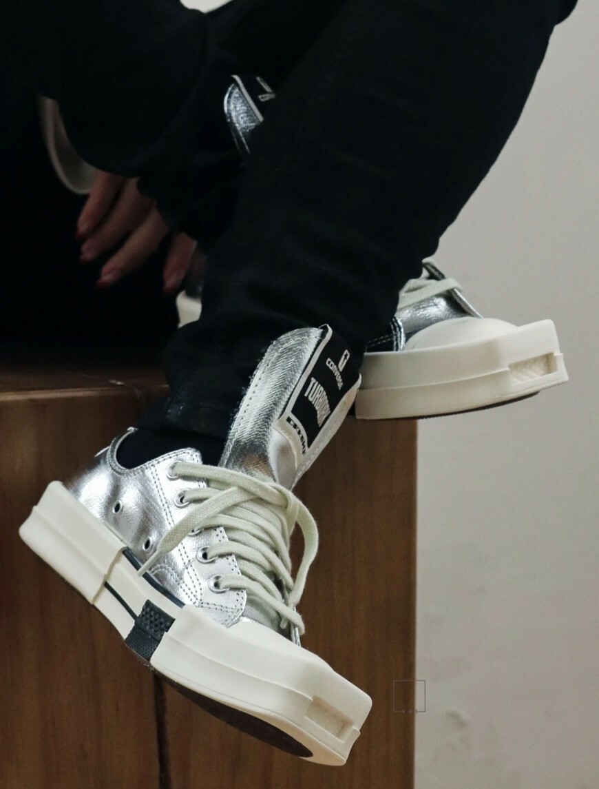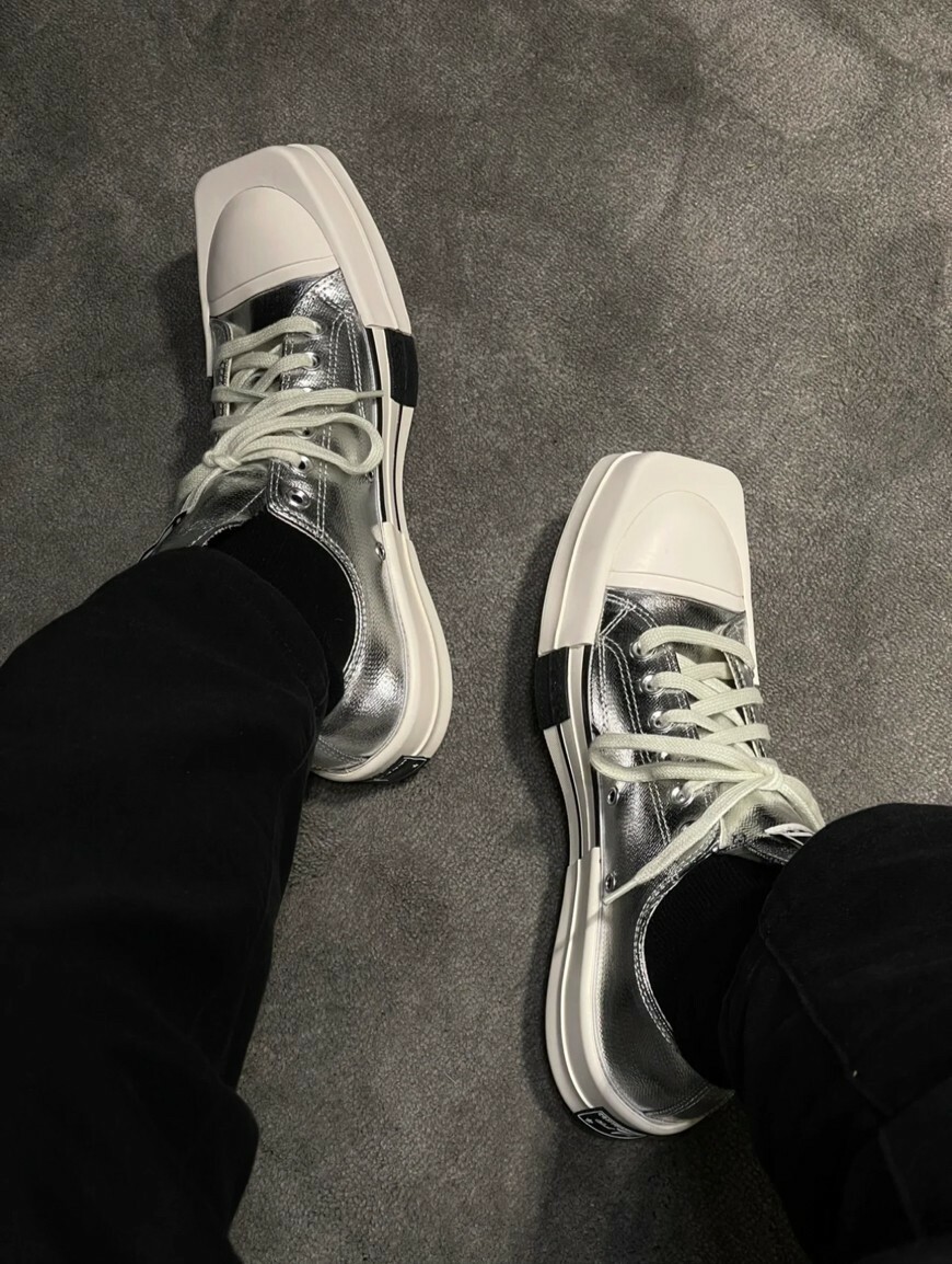 Rick Owens DRKSHDW x Converse TURBODRK 聯名限定 金屬銀 上蠟單寧牛仔布 方頭鞋