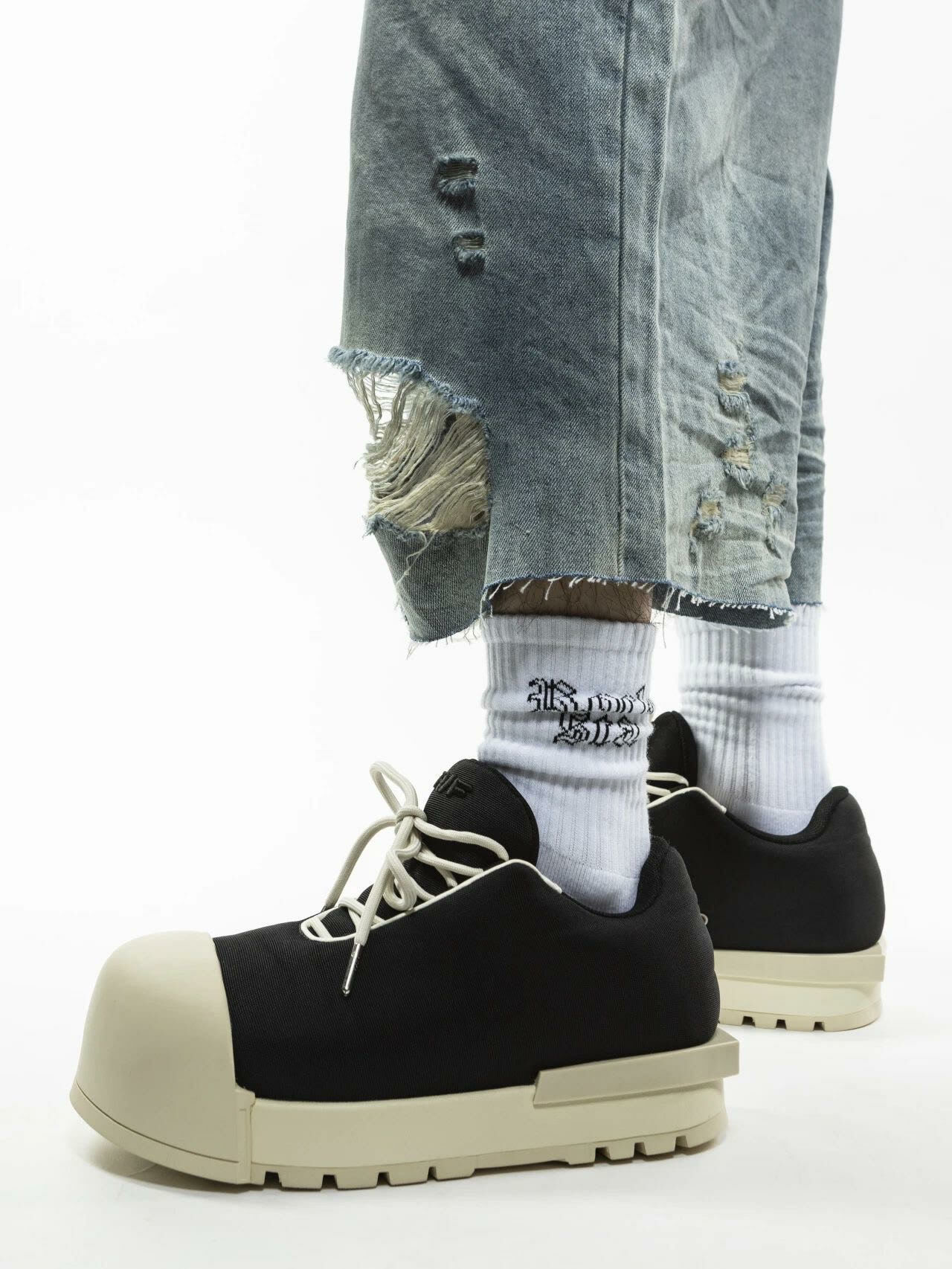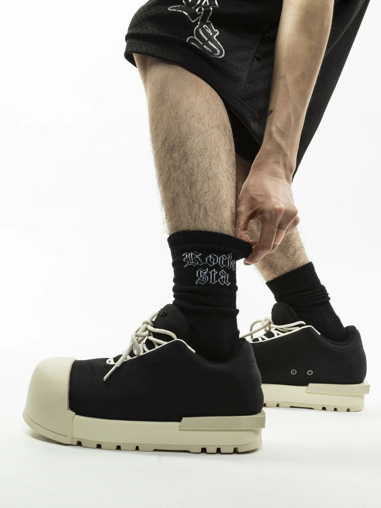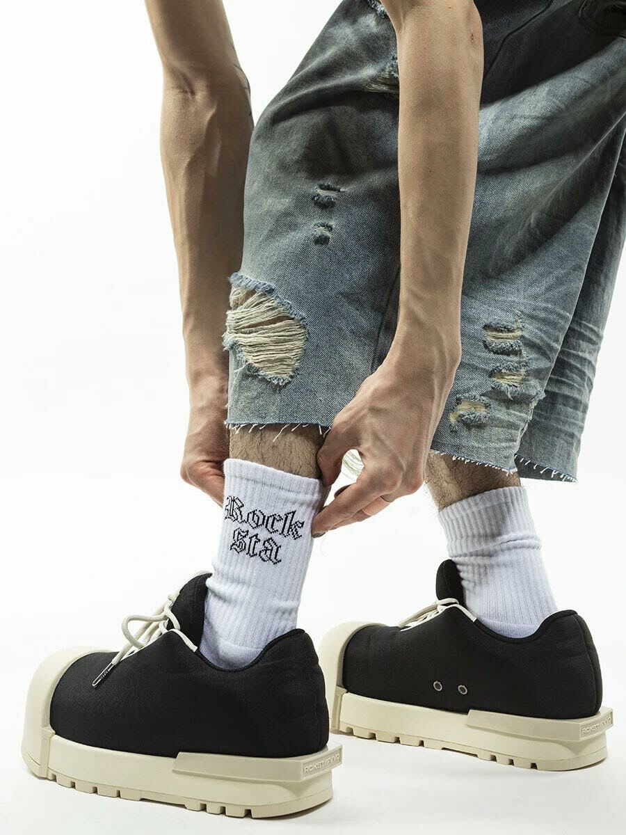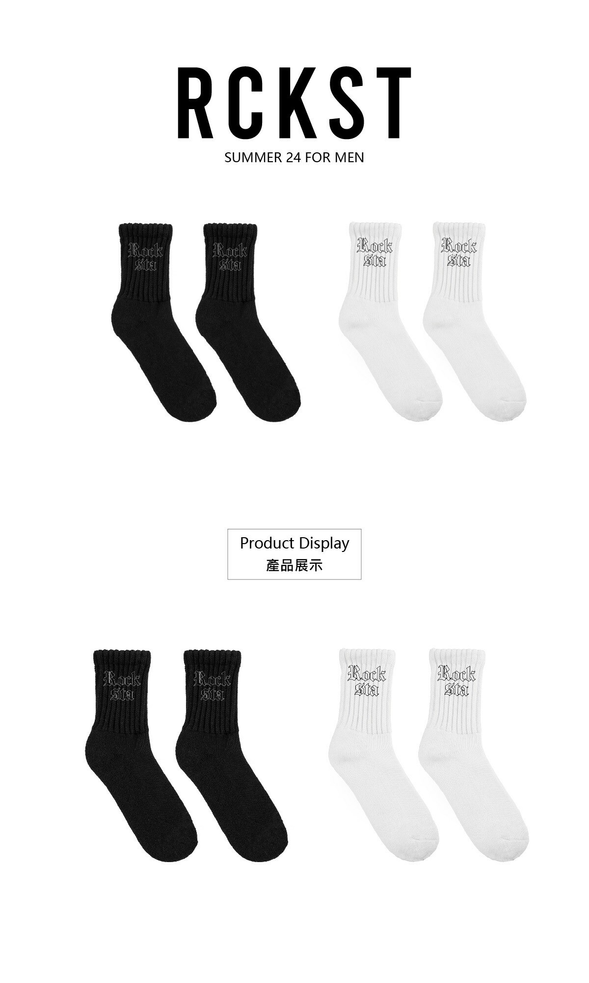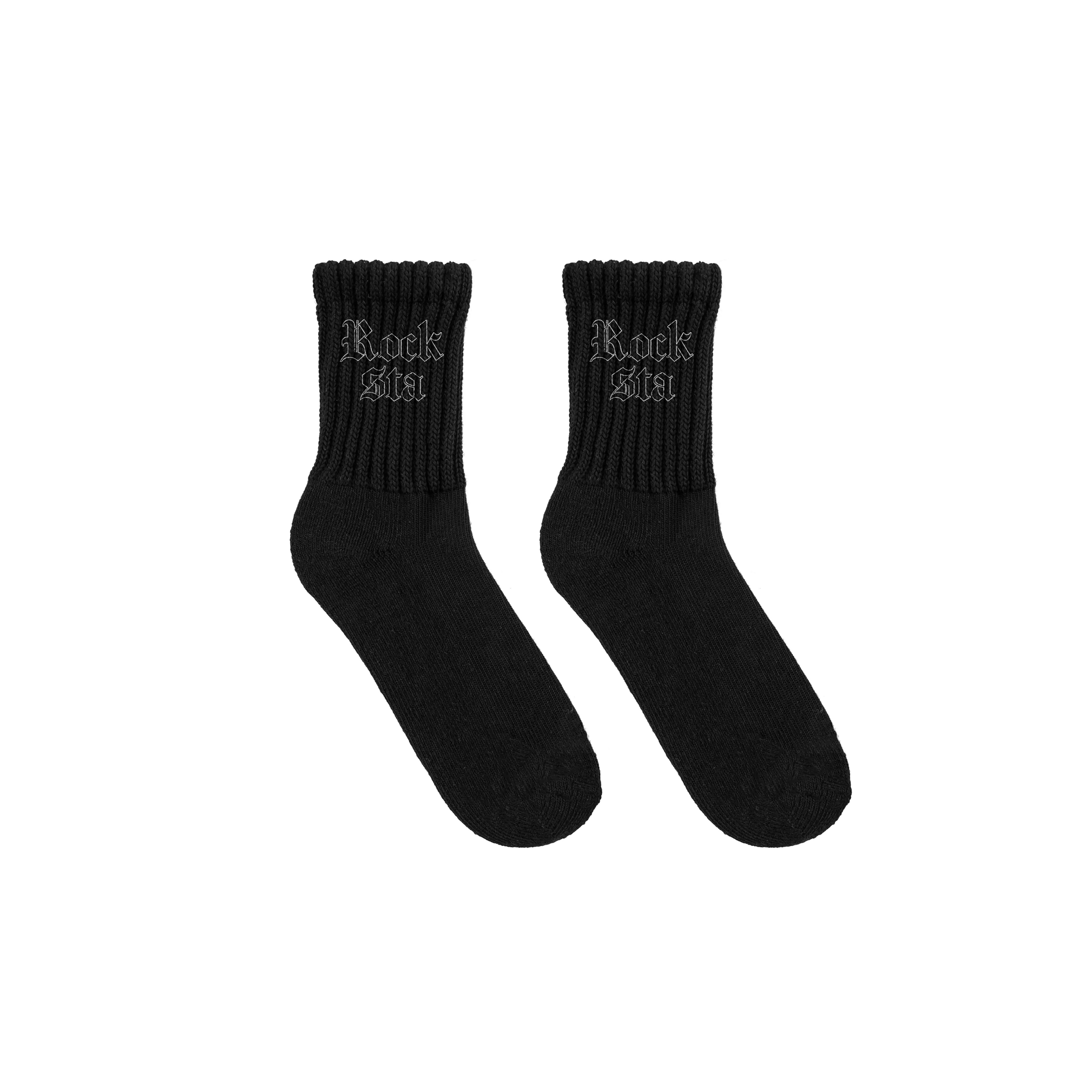 ROCKSTA 基本款 歌德字體 百搭 黑白雙色 中筒襪
