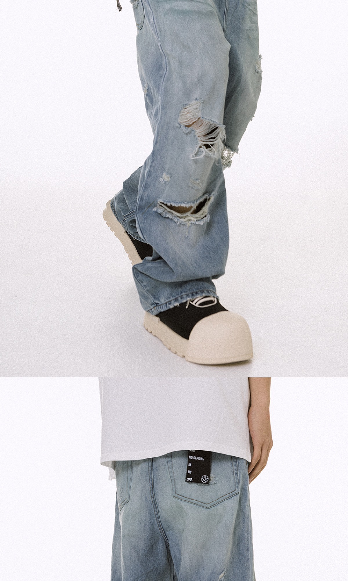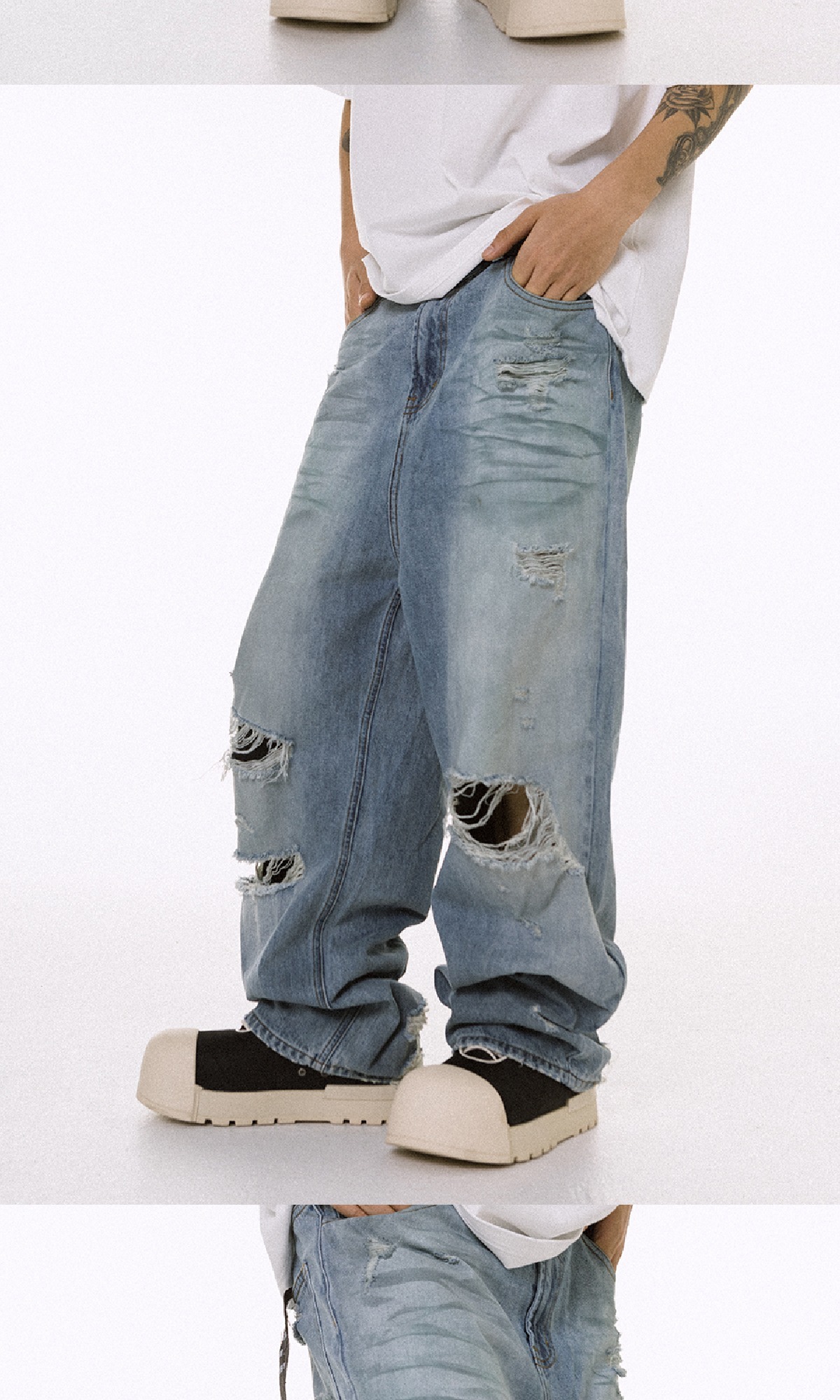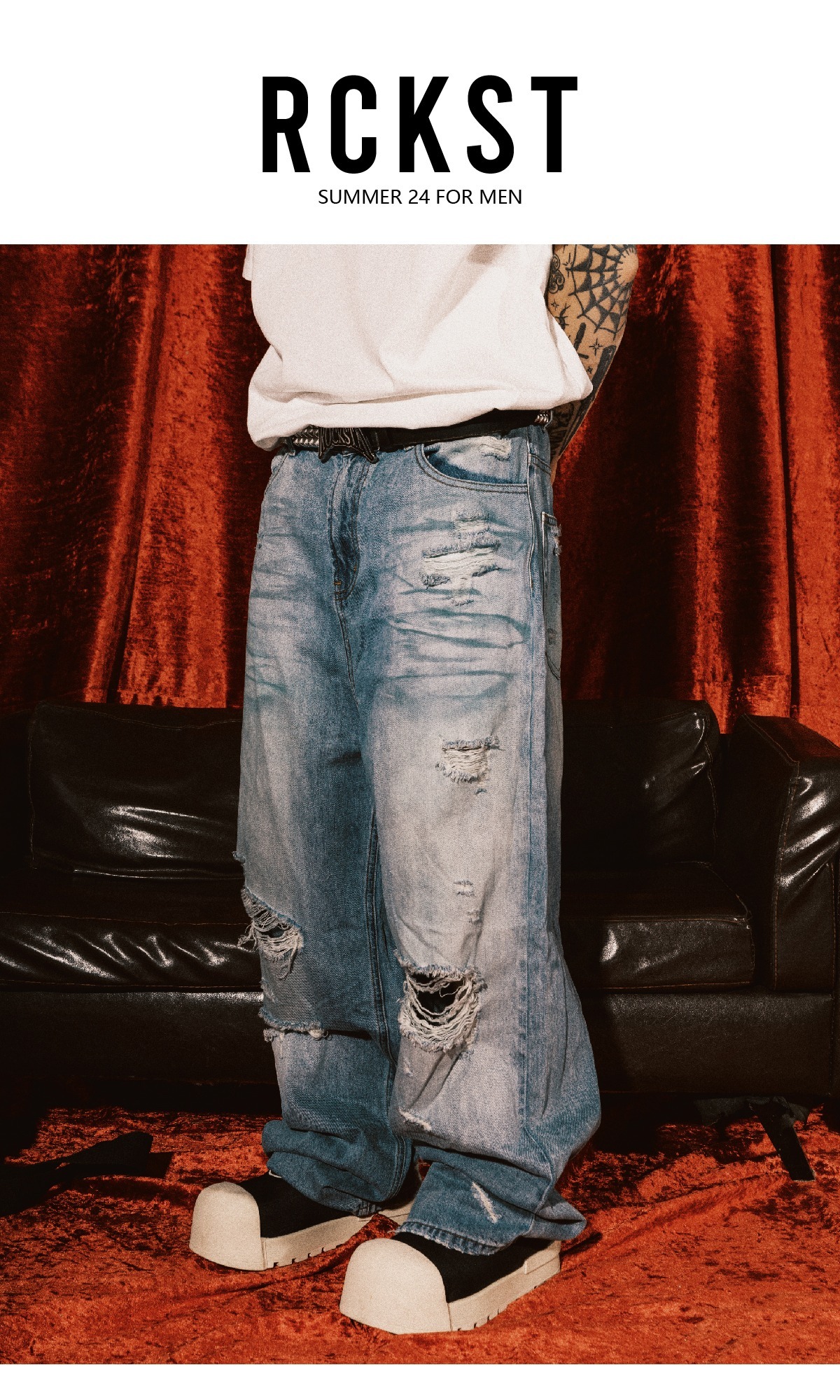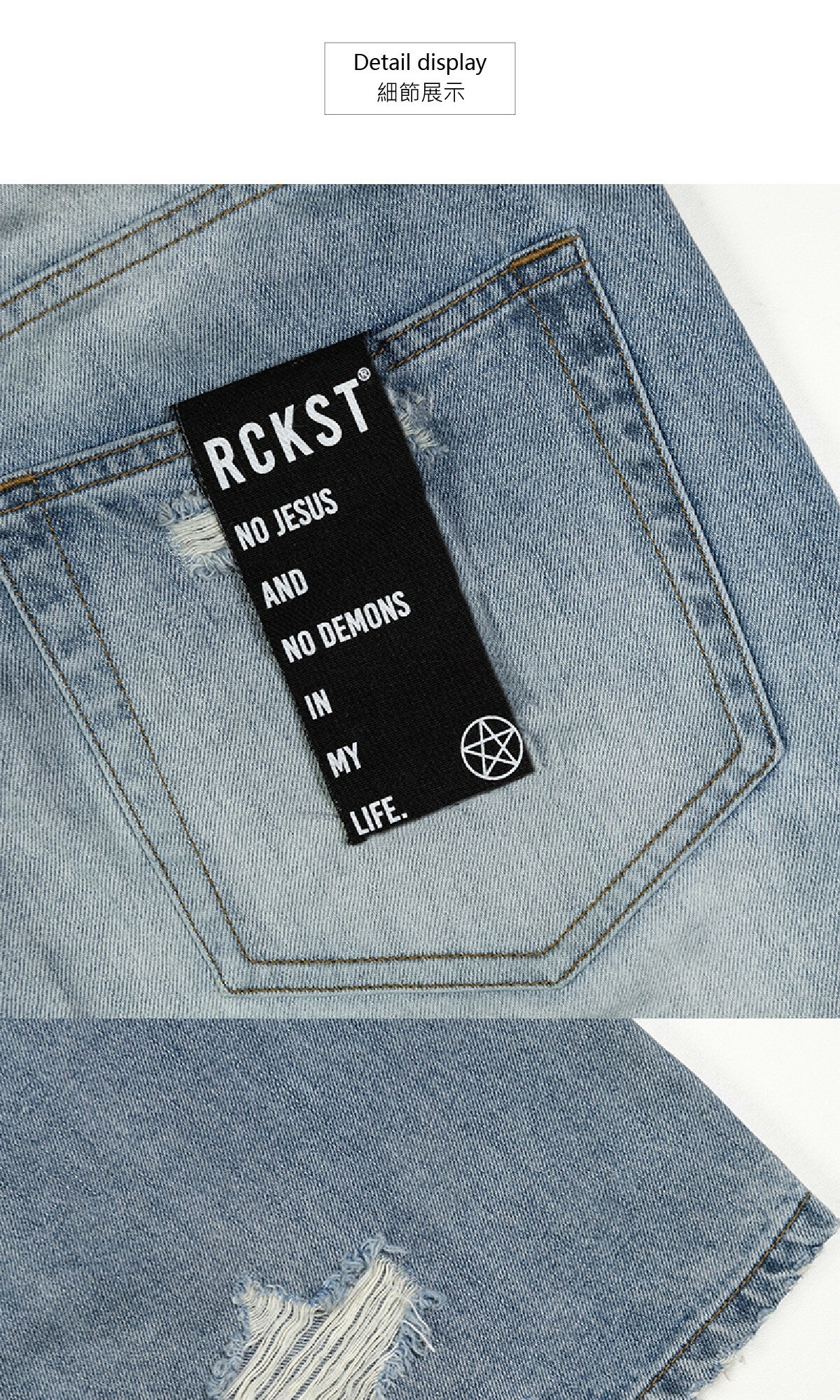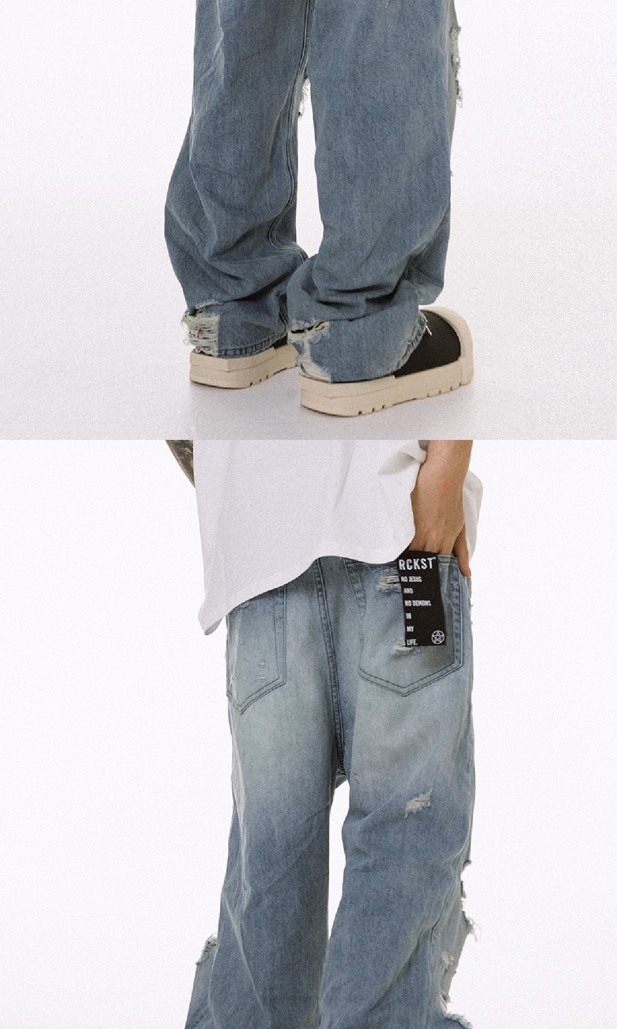 ROCKSTA 藍色水洗做舊直筒寬鬆牛仔褲