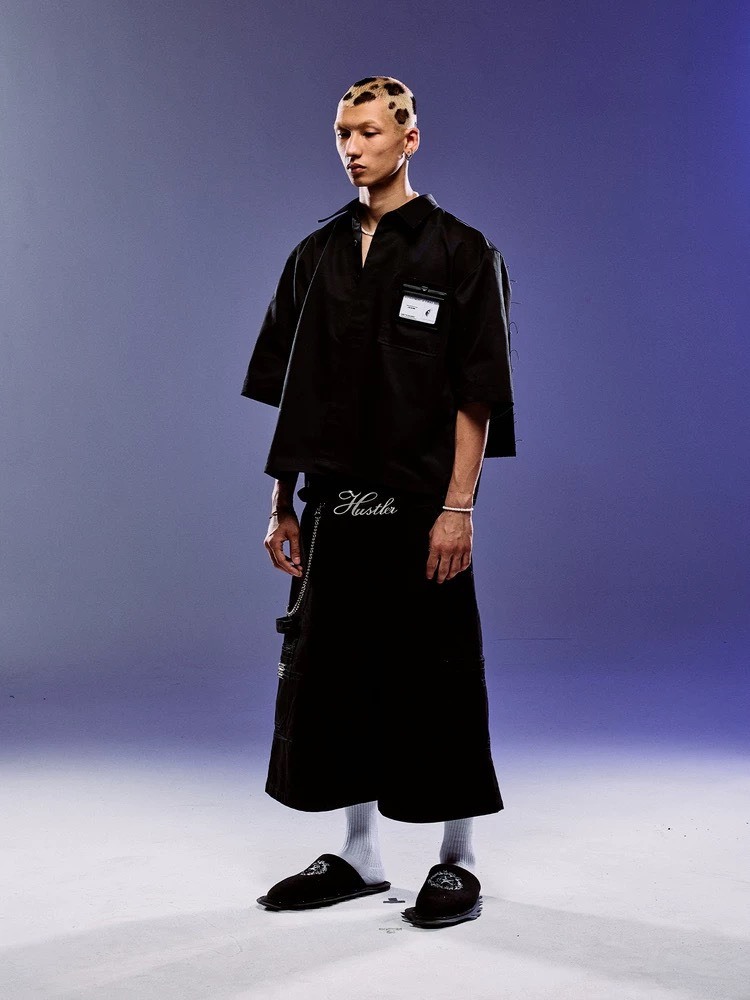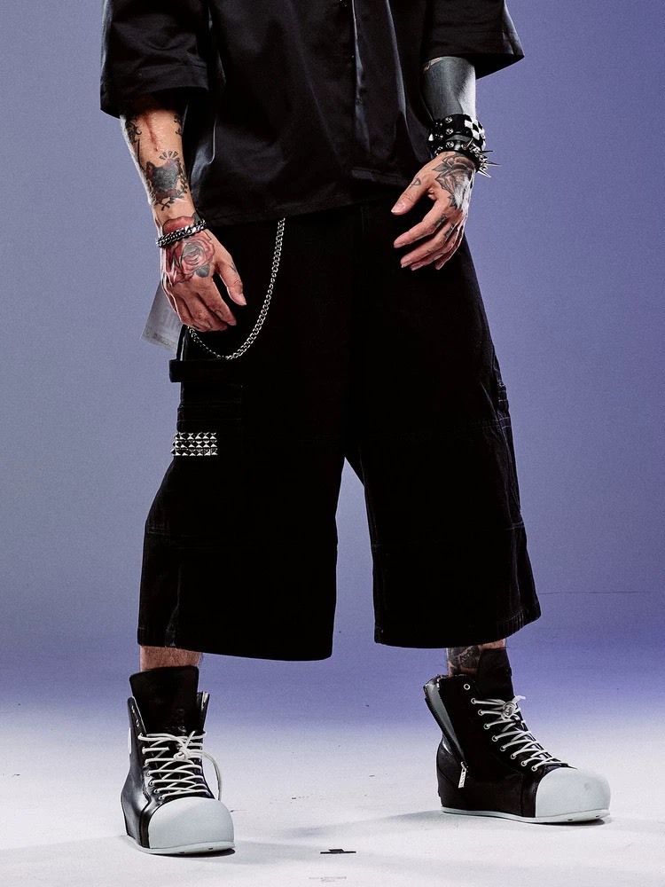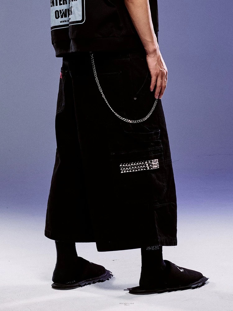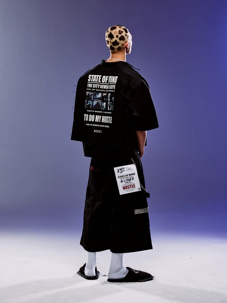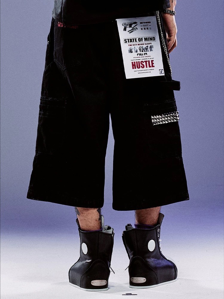 ROCKSTA “GHETTO SOLIDER” 黑色廓型貼布 牛仔七分褲