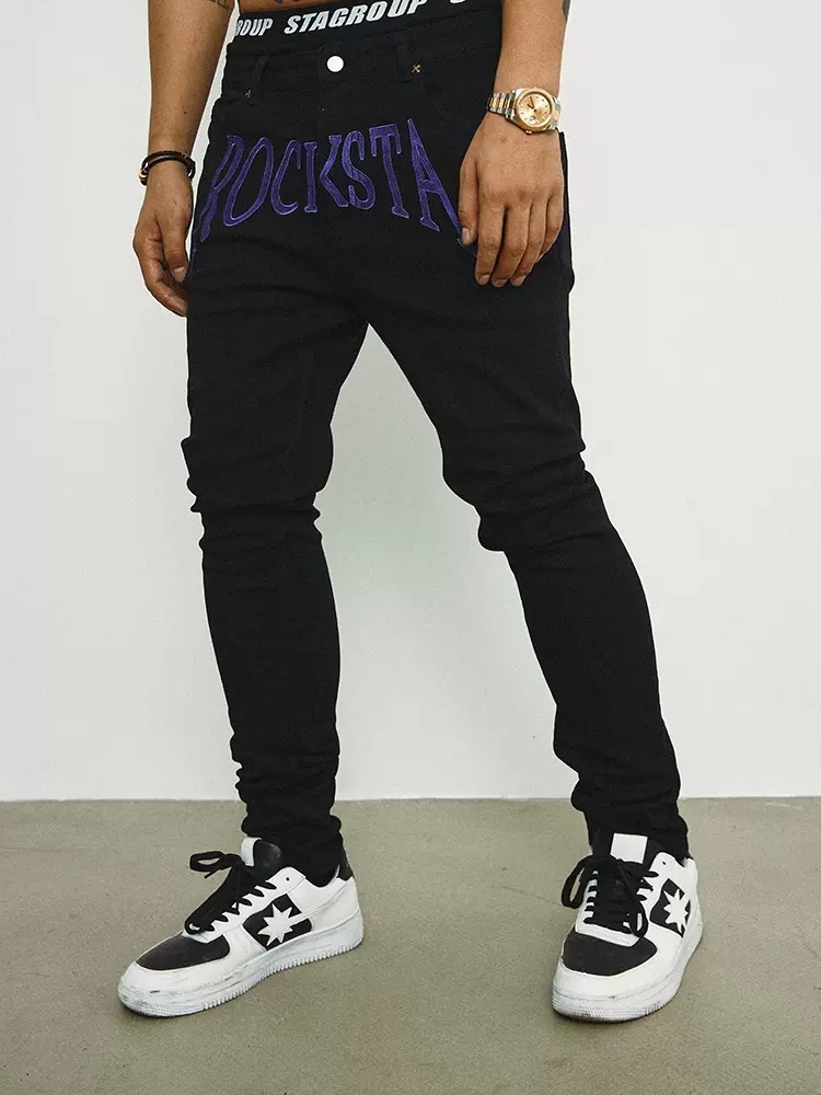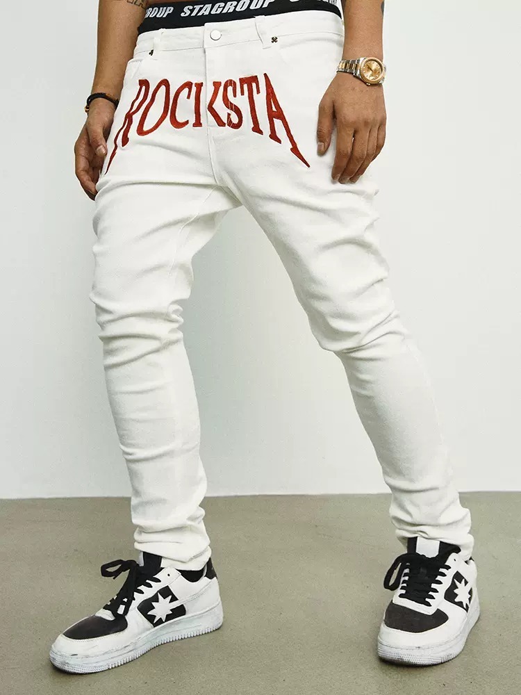 ROCKSTA 街頭搖滾龐克風 刺繡字體牛仔褲