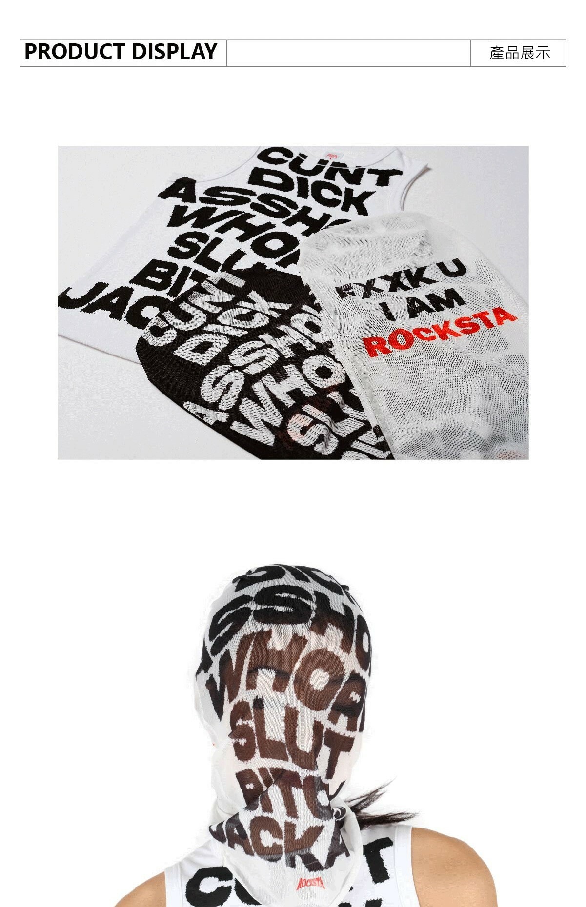 ROCKSTAGIRLS 黑白雙色 字體印花 網紗頭套面罩