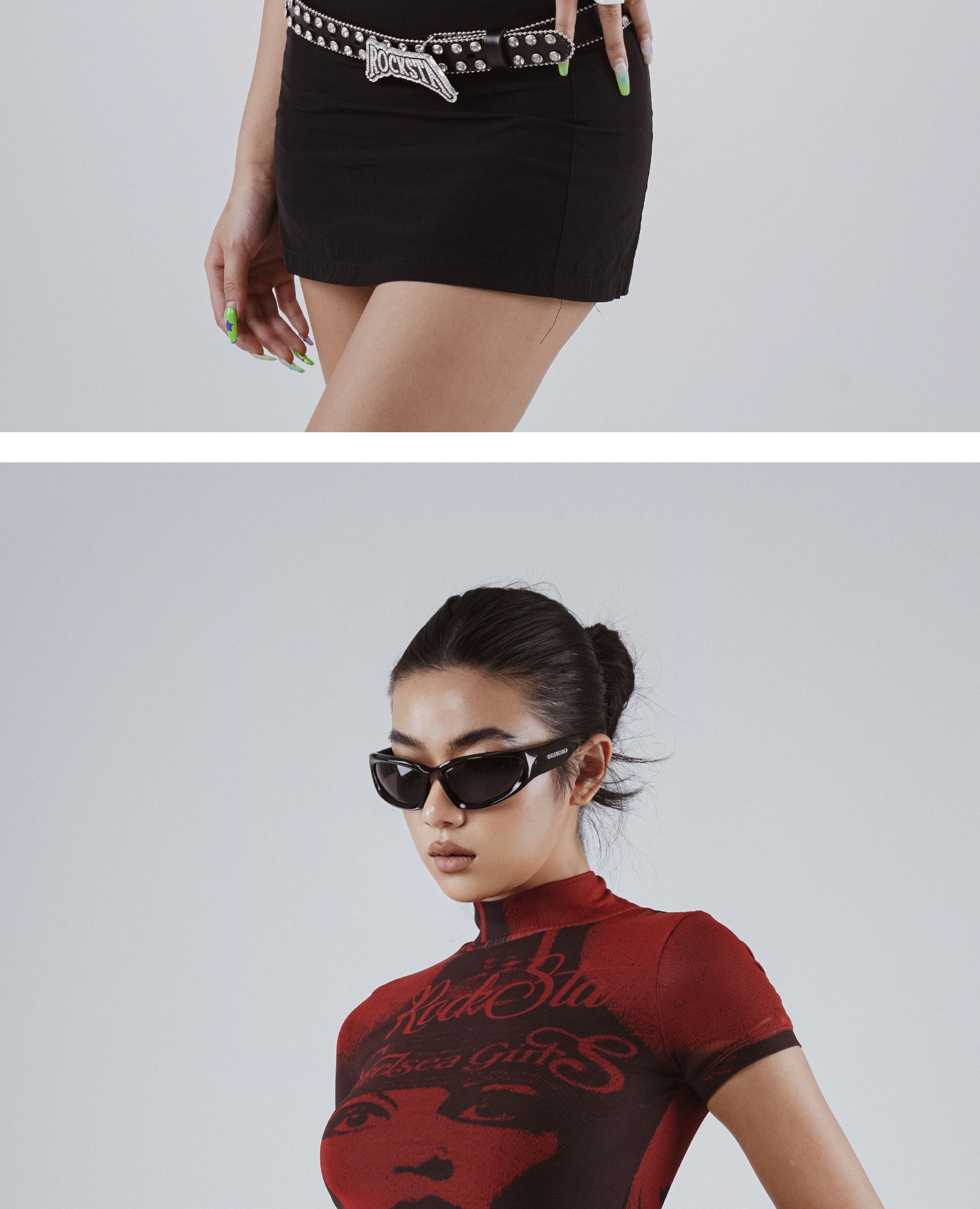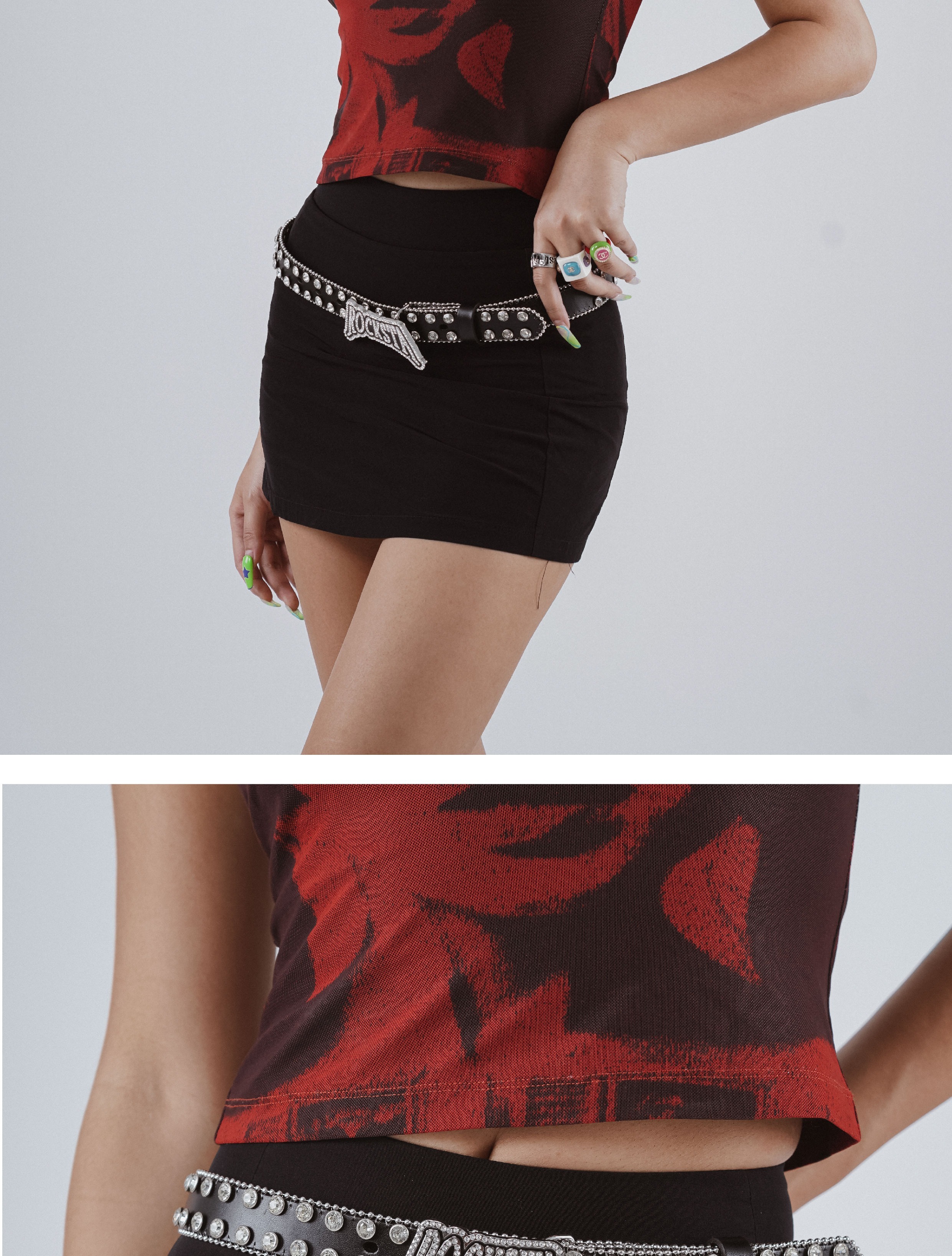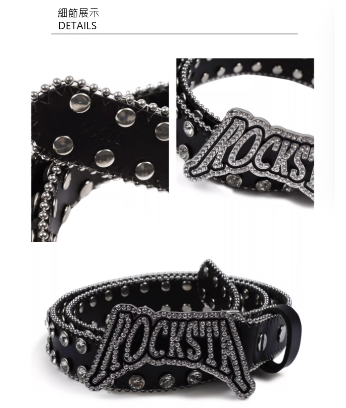 ROCKSTAGIRLS 女款 黑色純牛皮 龐克風 水鑽鍊條鉚釘皮帶