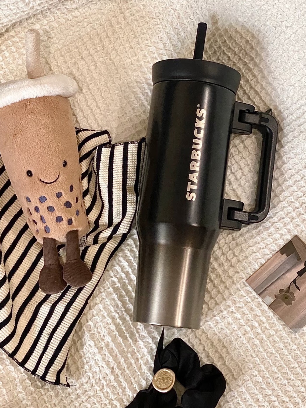 星巴克 Starbucks 酷黑漸變 大手把水杯