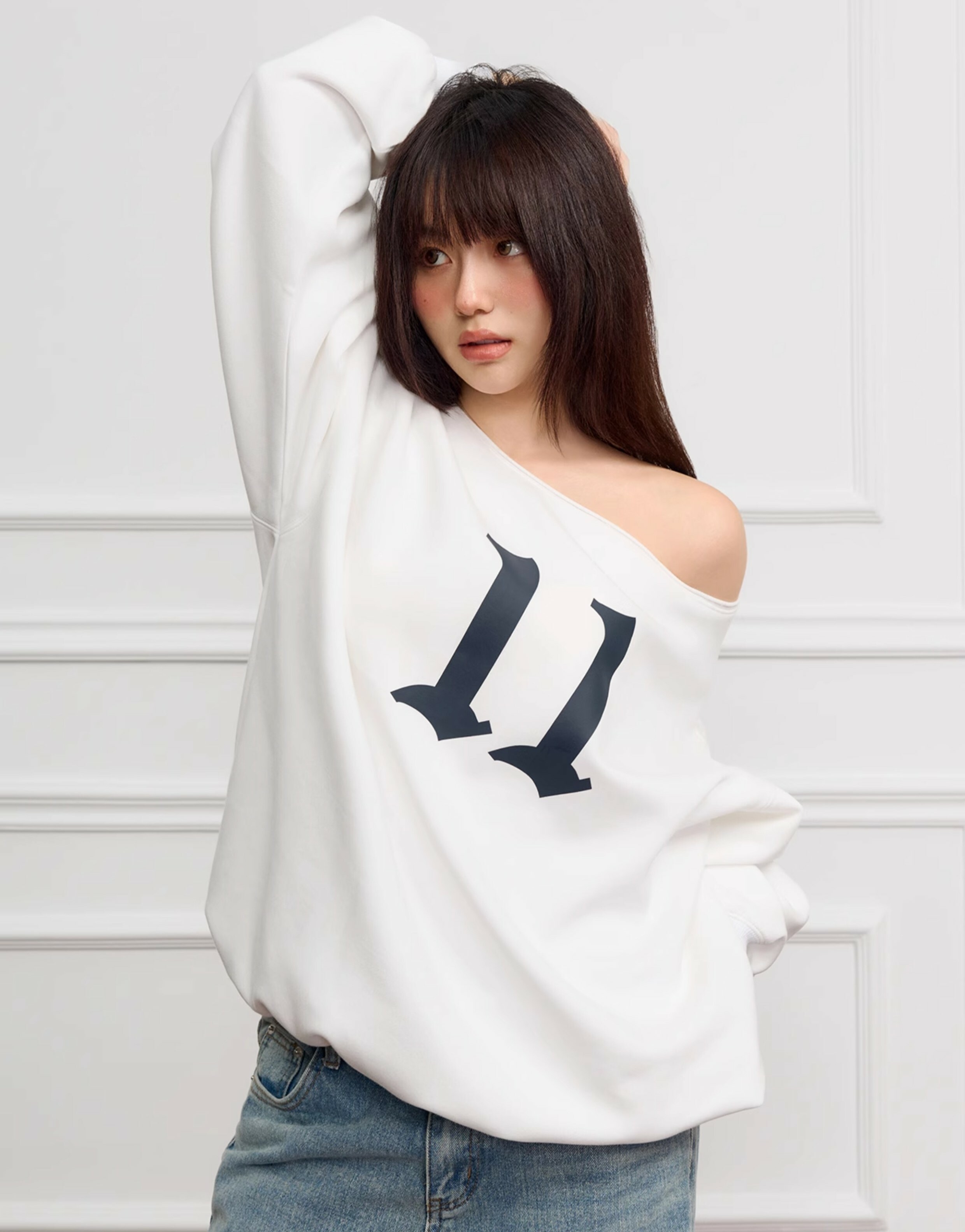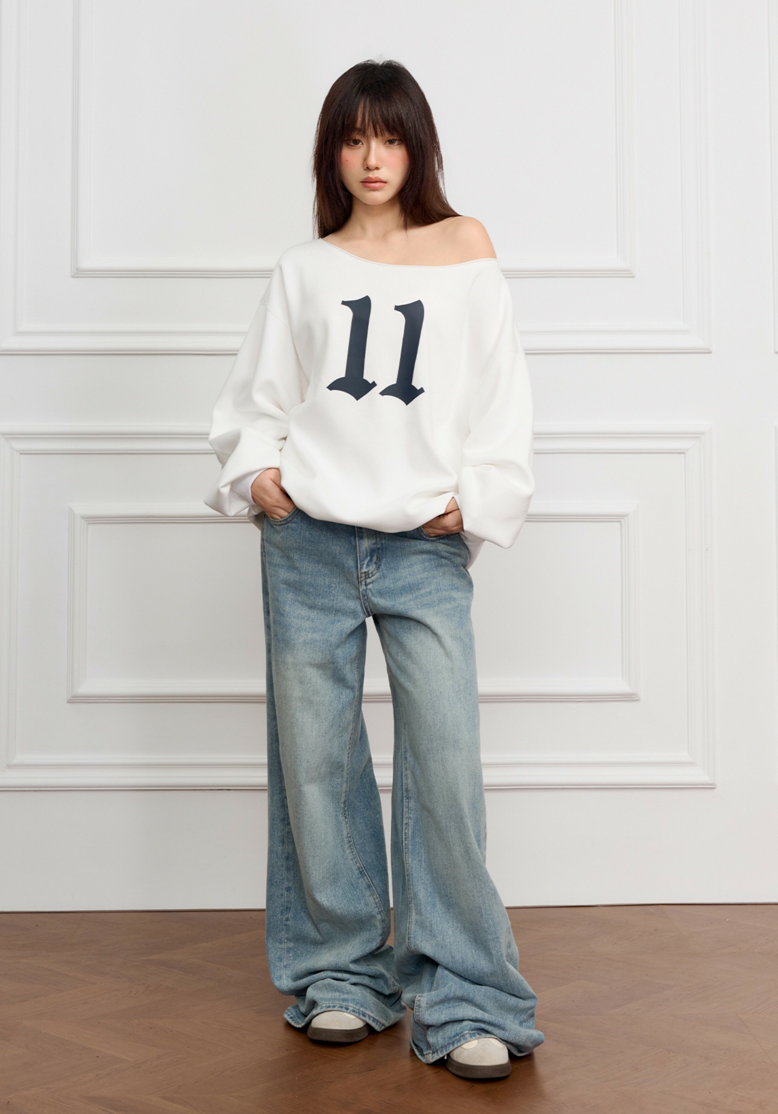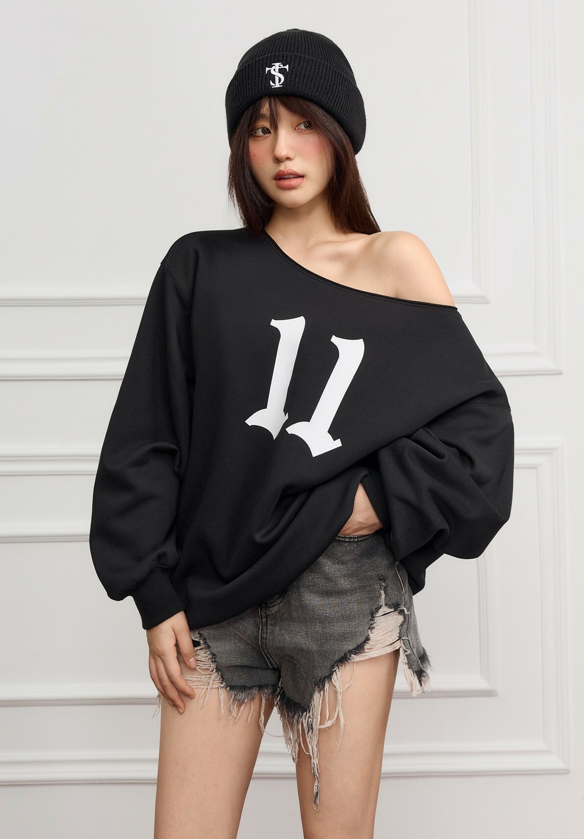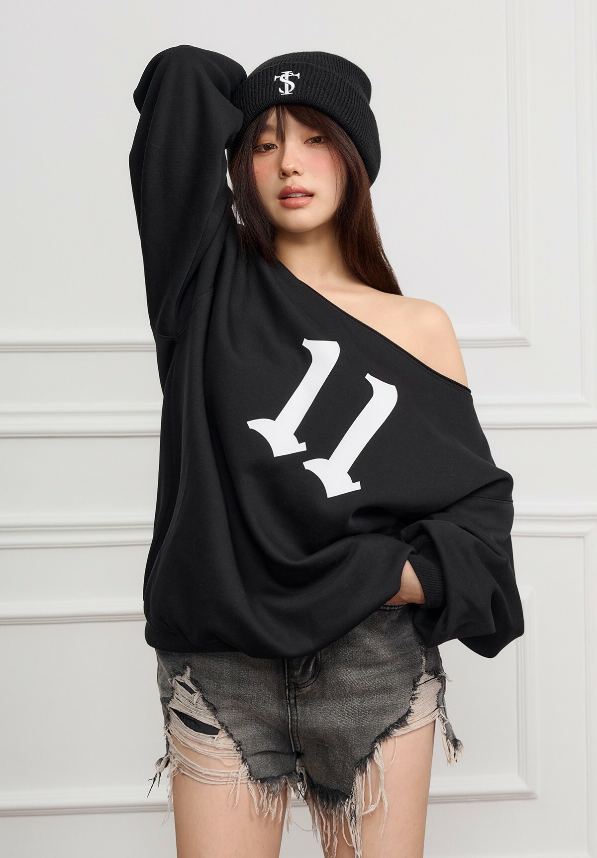 STK SmallTownKid 美式11印花 露肩衛衣