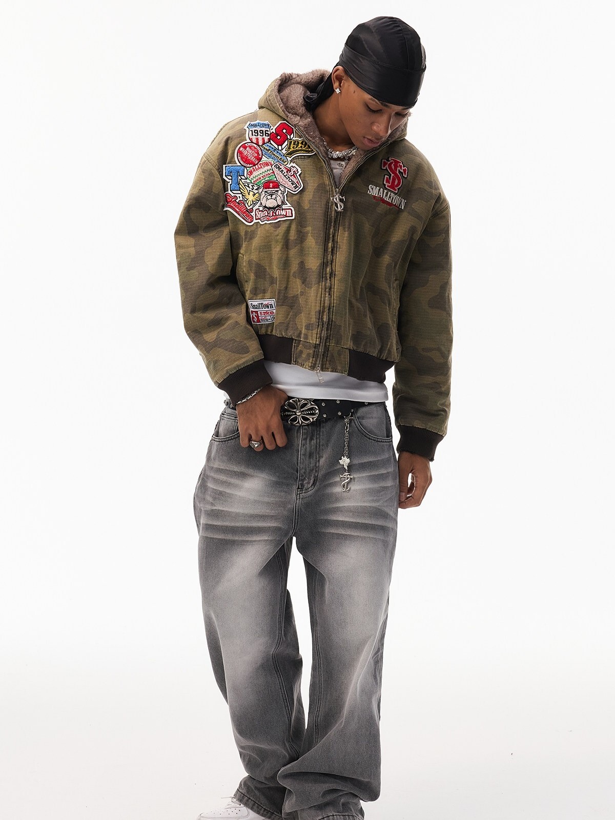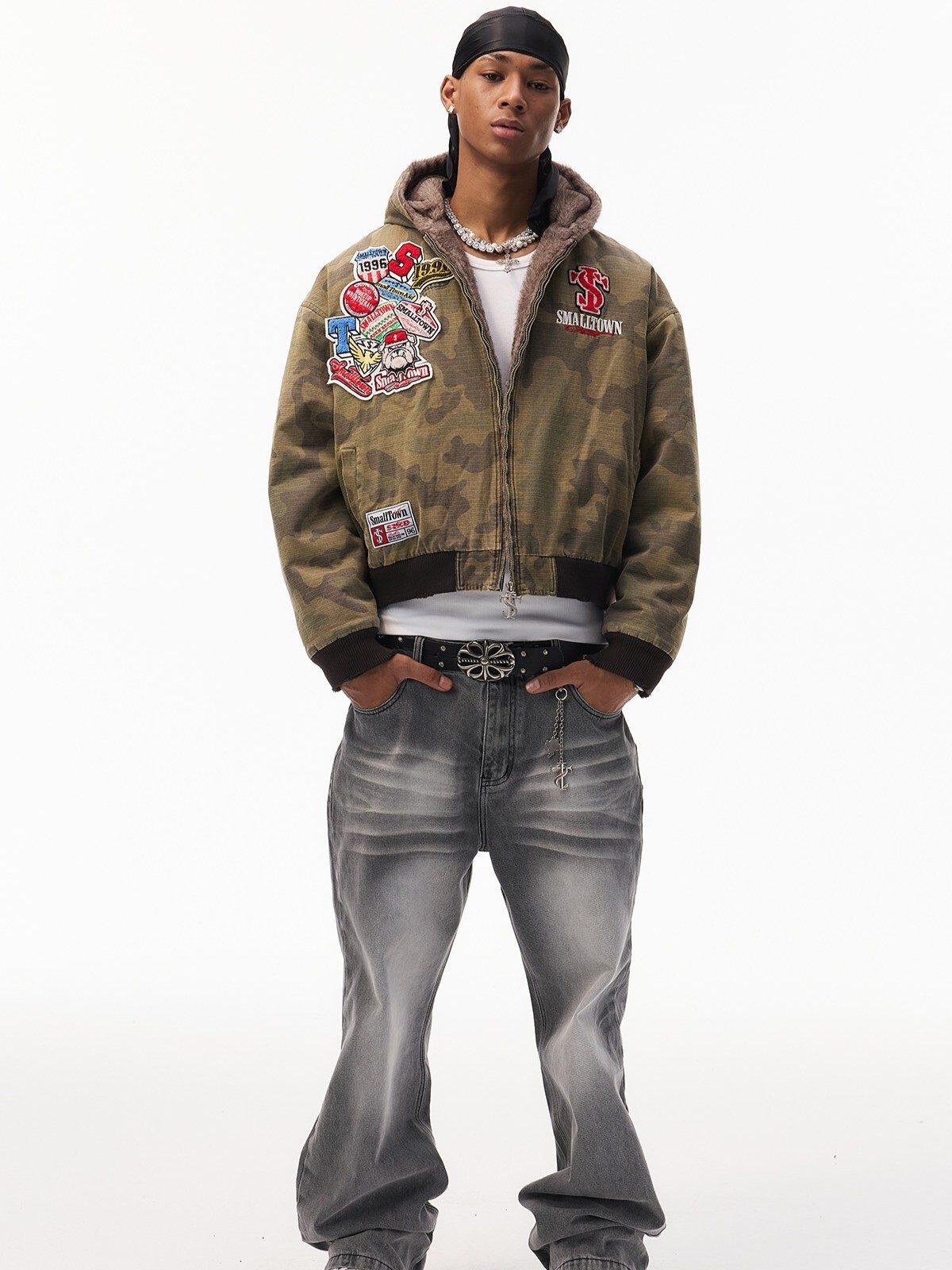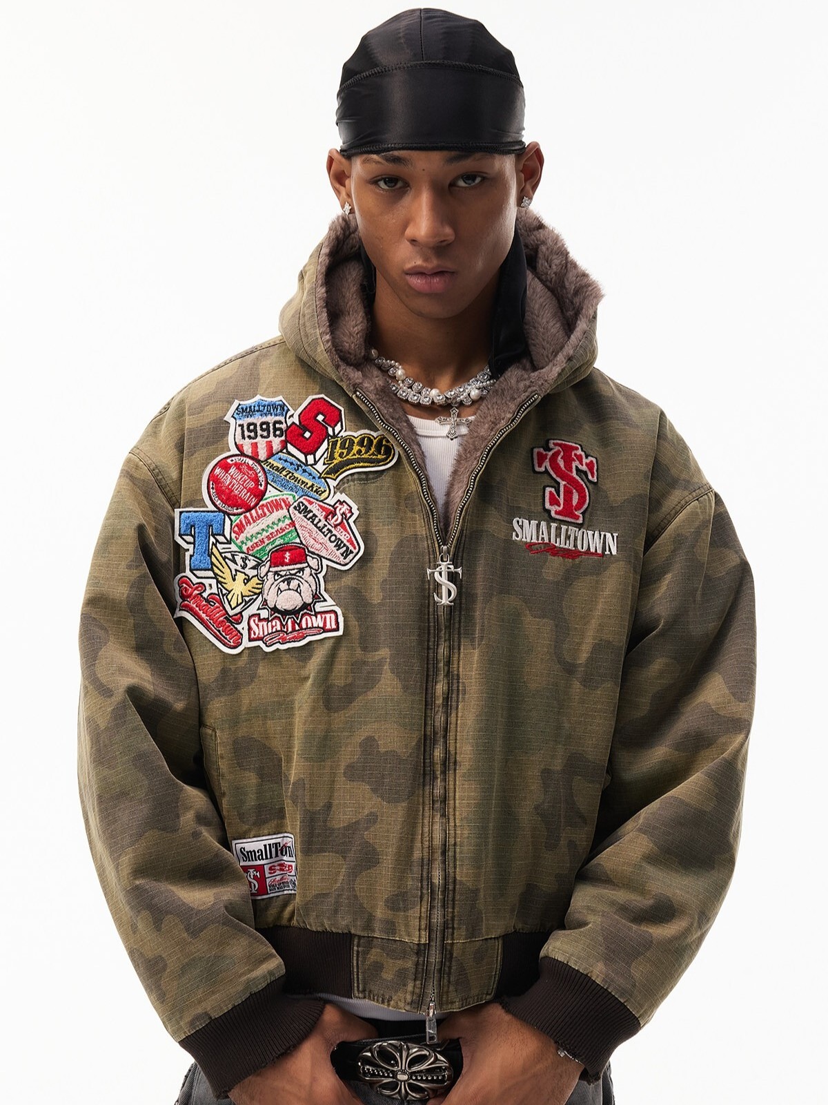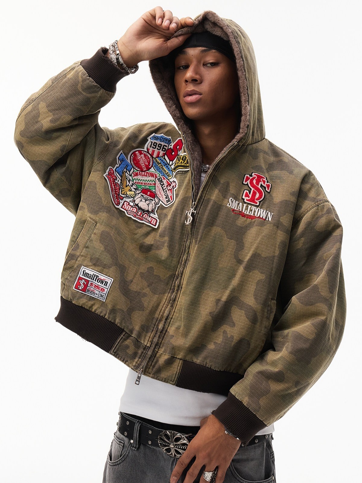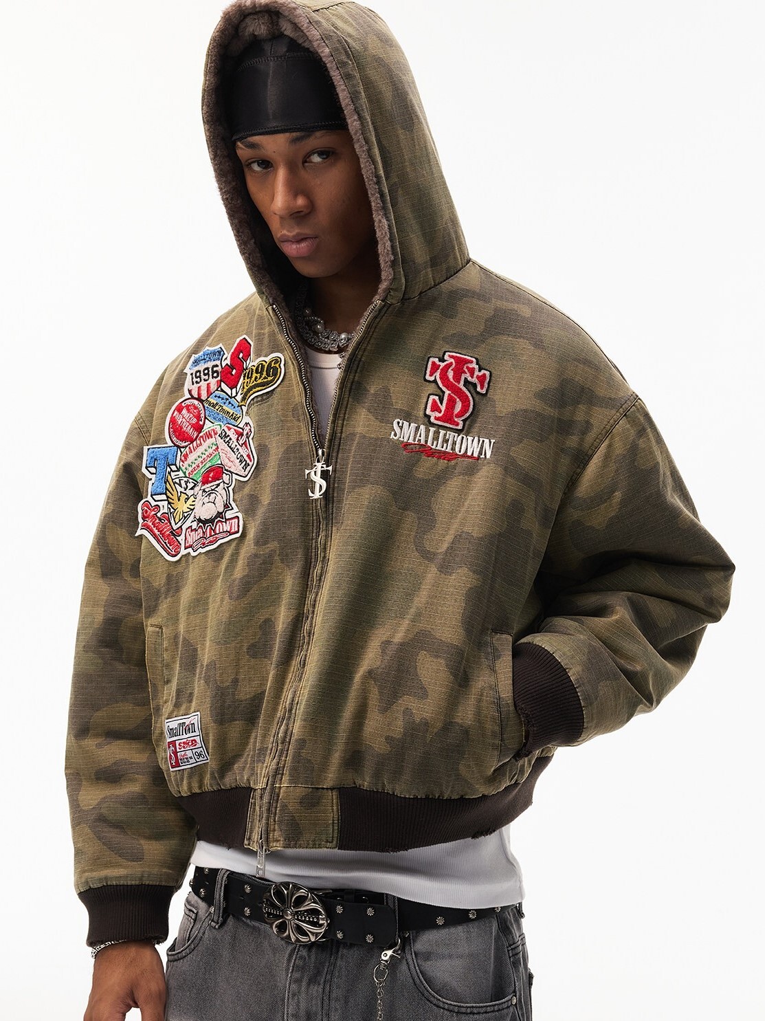 STK SmallTownKid 美式刺繡貼布 內裡毛絨 迷彩連帽外套