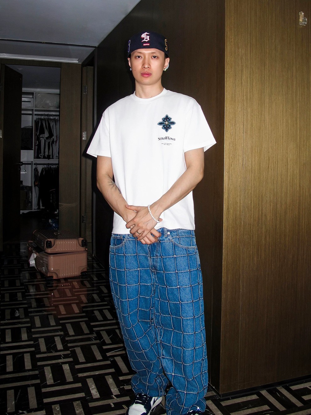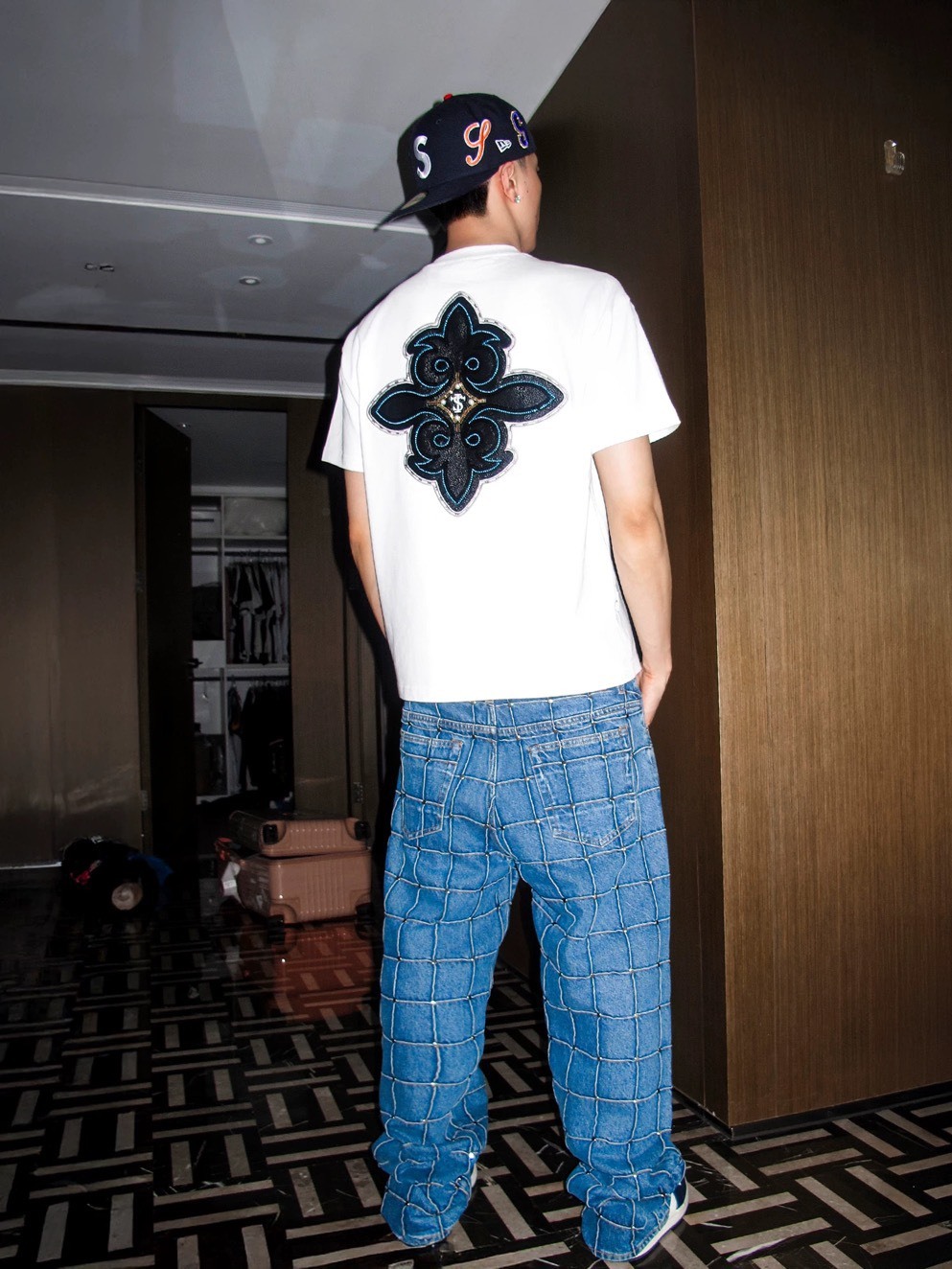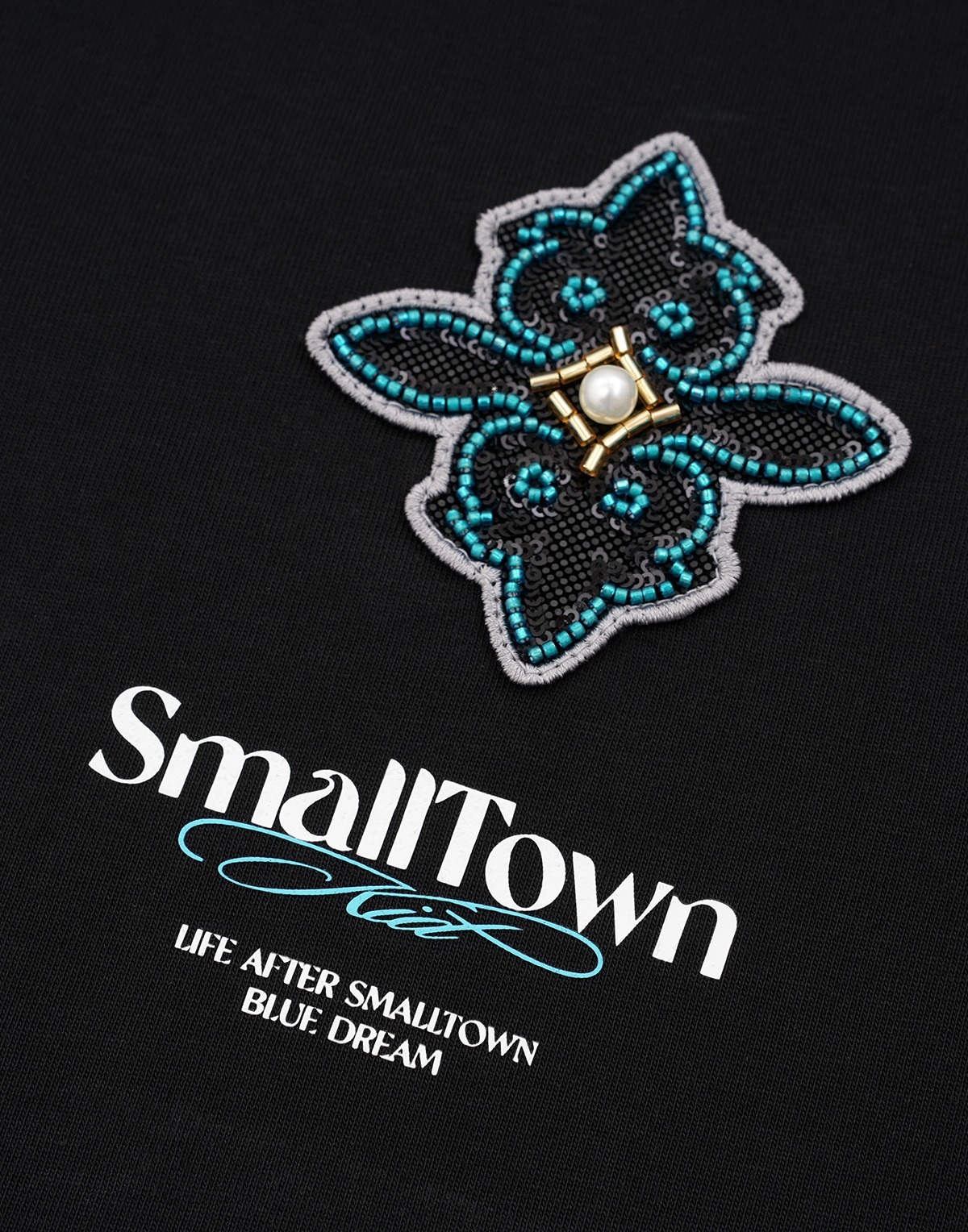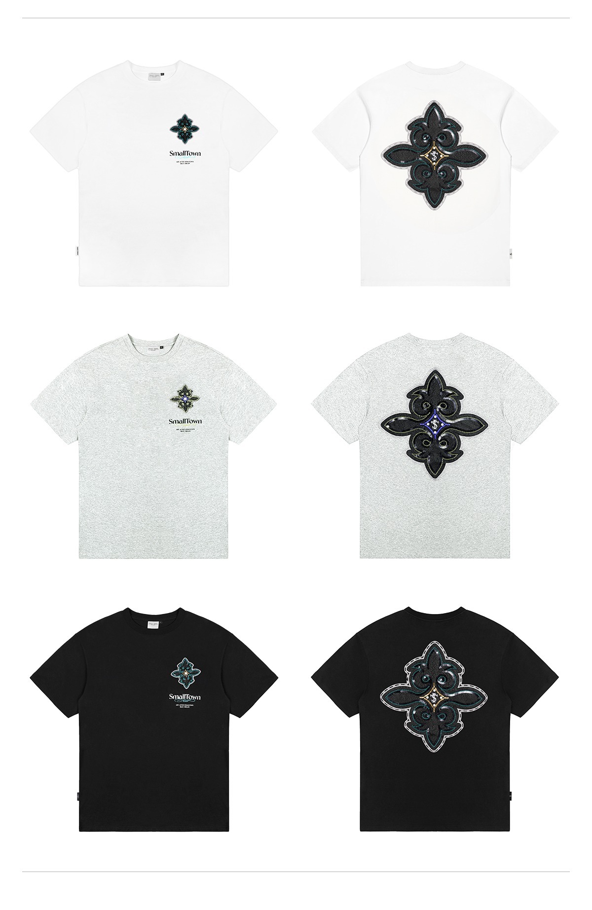 STK SmallTownKid ASEN同款 珍珠亮片 十字花貼布 短袖 T