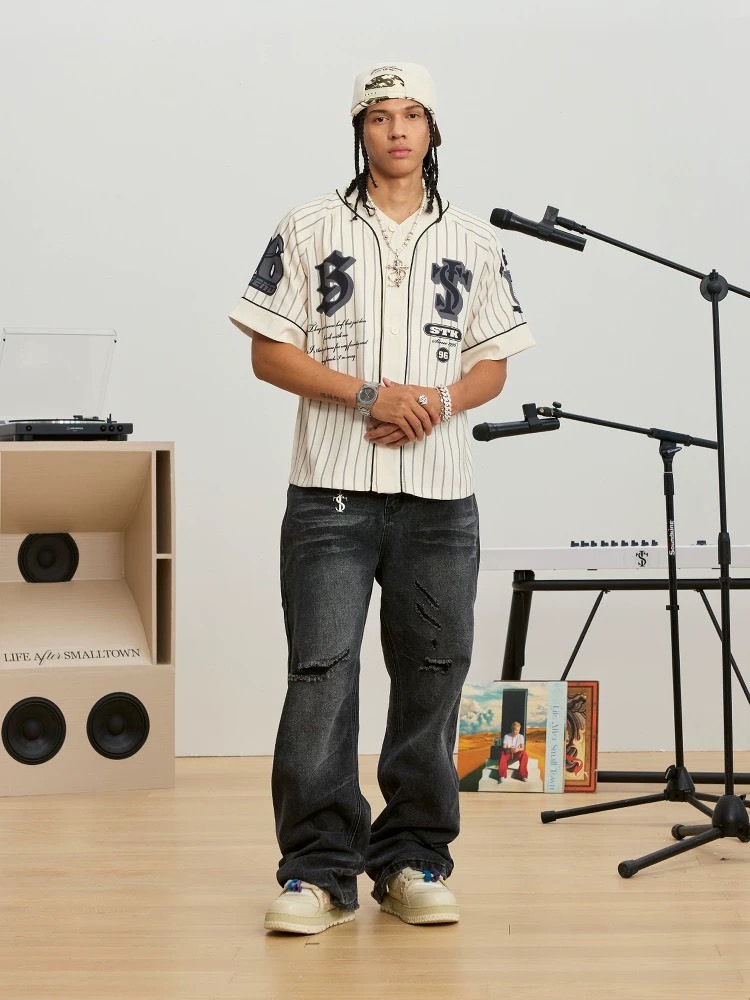 STK SmallTownKid 棒球條紋 短袖襯衫
