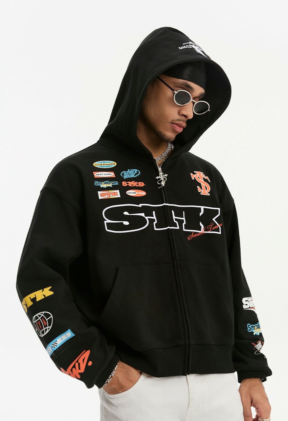 STK SmallTownKid 刺繡徽章 賽車連帽外套