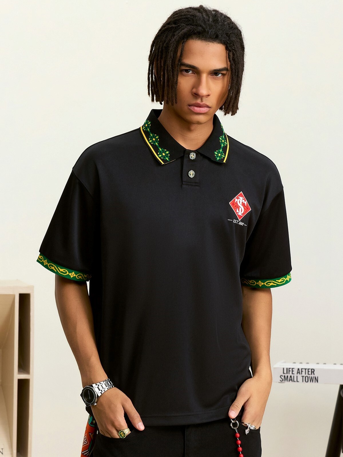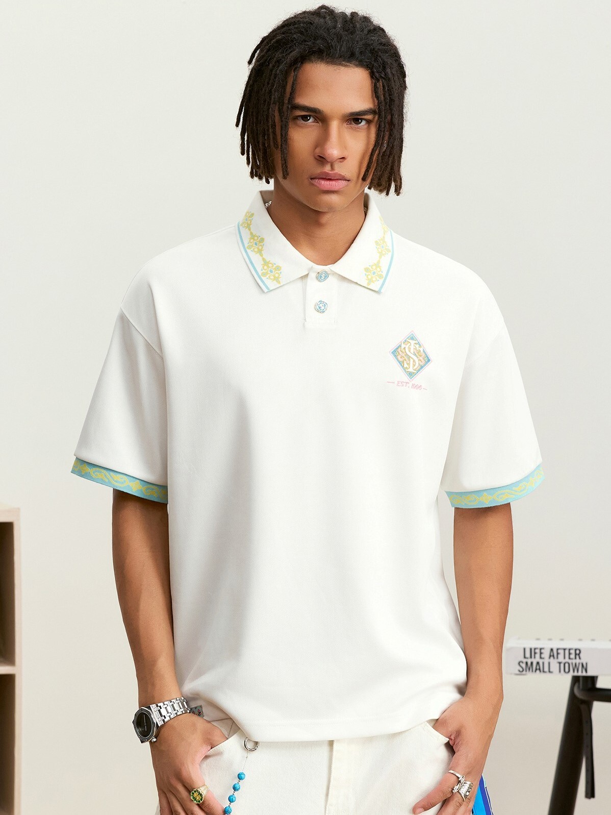 STK SmallTownKid 民族風 刺繡 POLO短袖