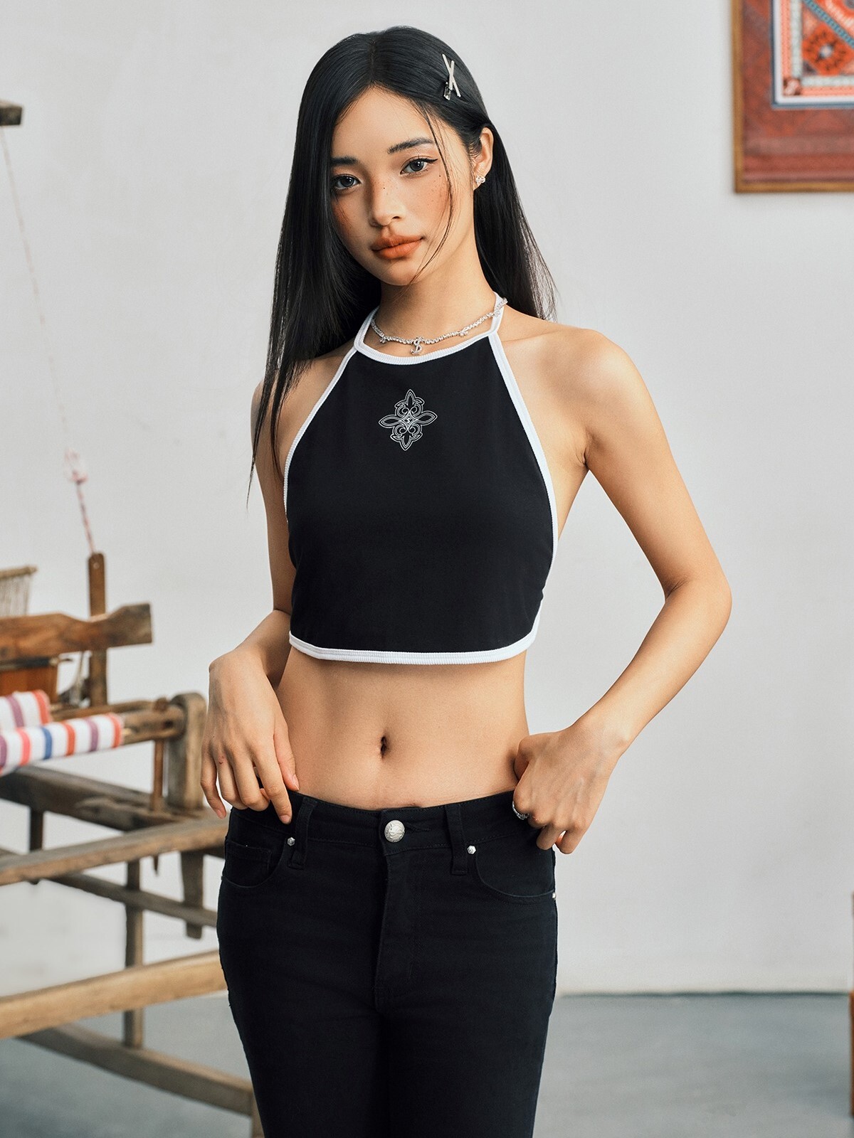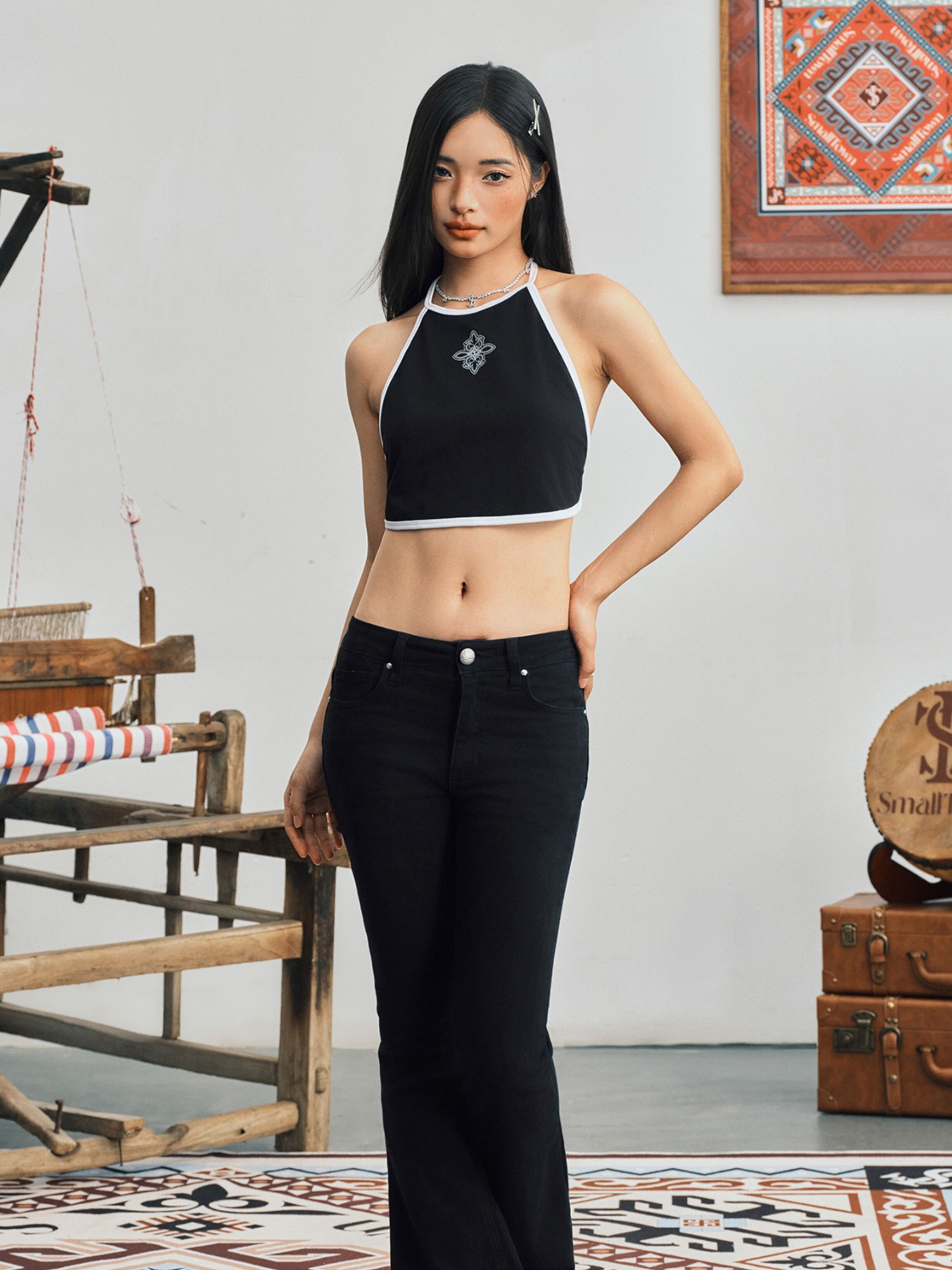 STK SmallTownKid 民族風Logo 針織掛脖背心