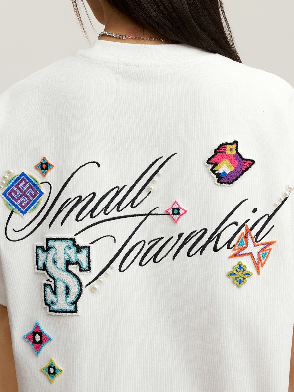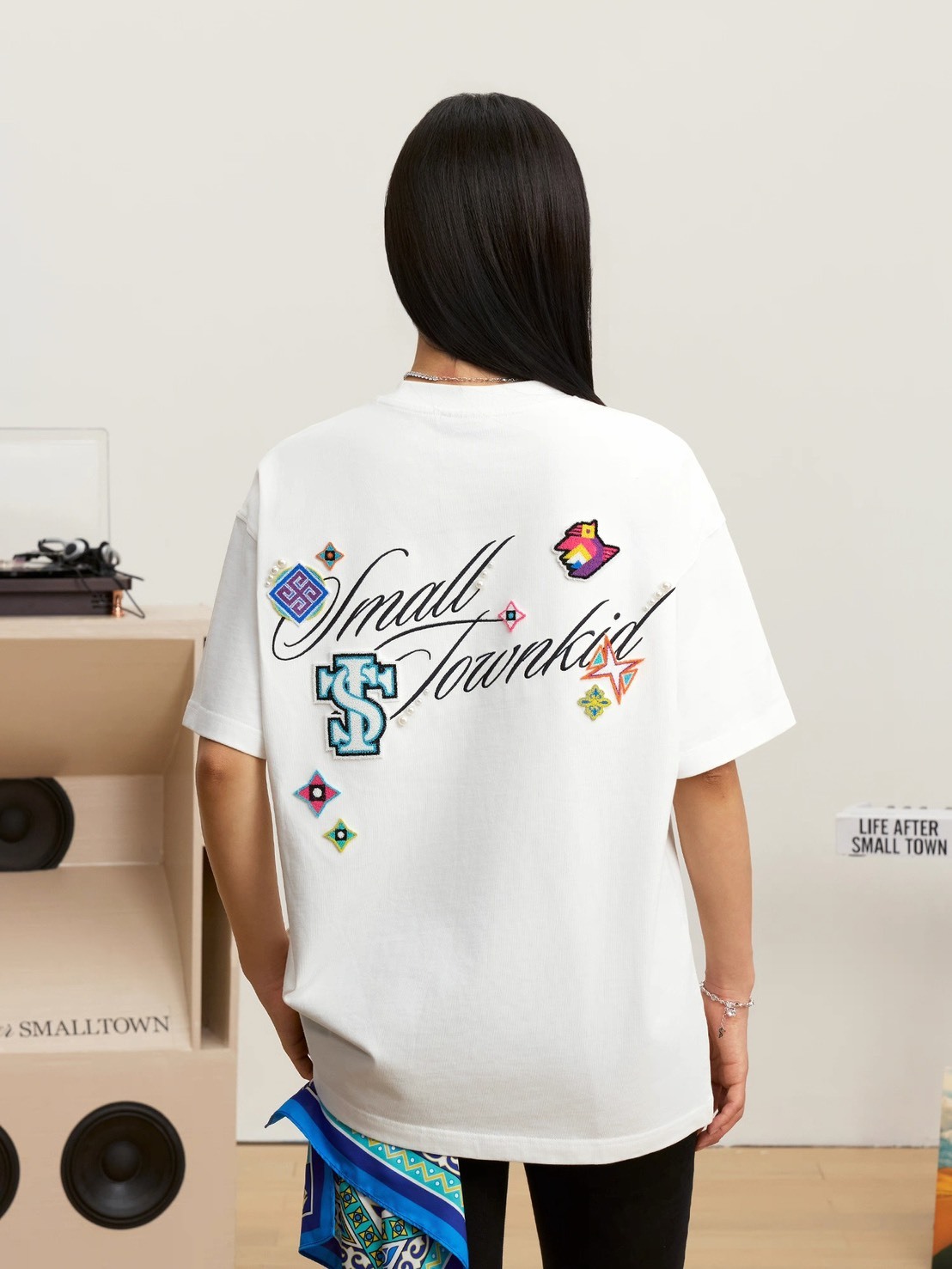 STK SmallTownKid 民族風 刺繡小Logo 短袖 T