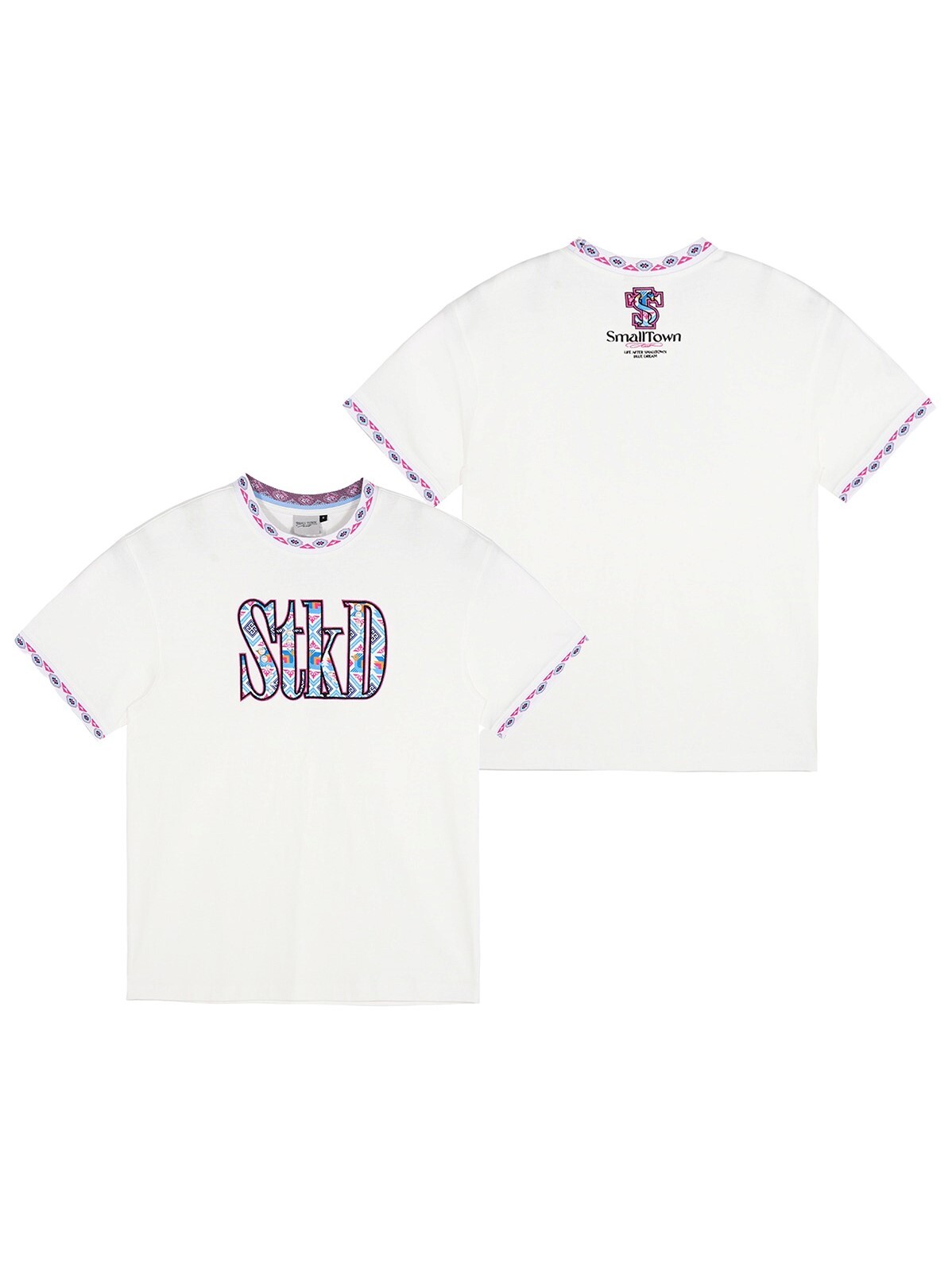 STK SmallTownKid 民族風 珍珠刺繡 包邊花紋 短袖 T