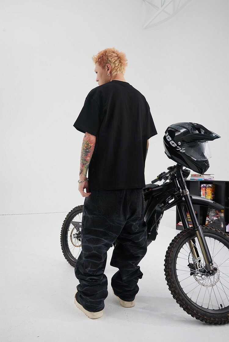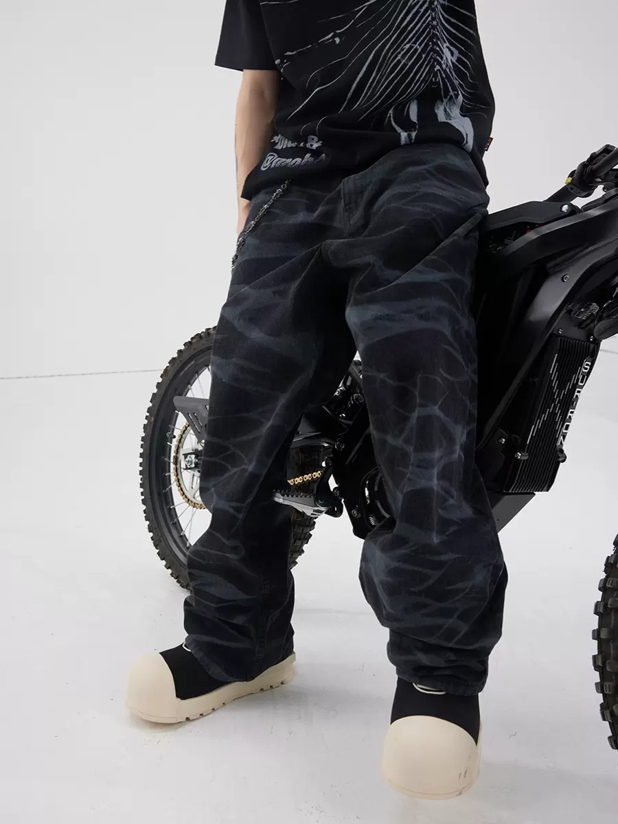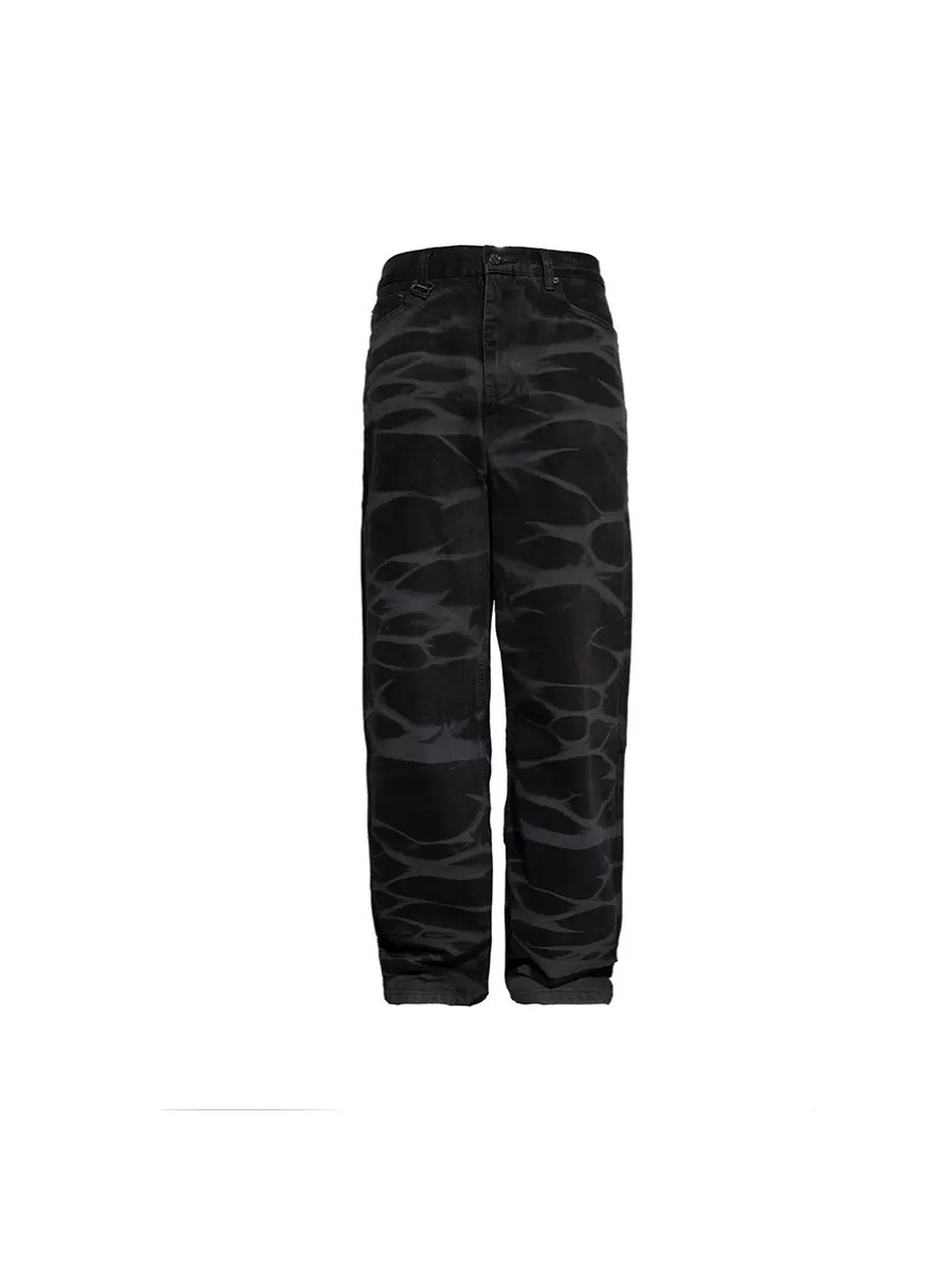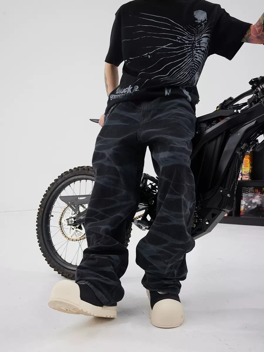 BLACK8MOB 水波紋寬鬆直筒牛仔褲