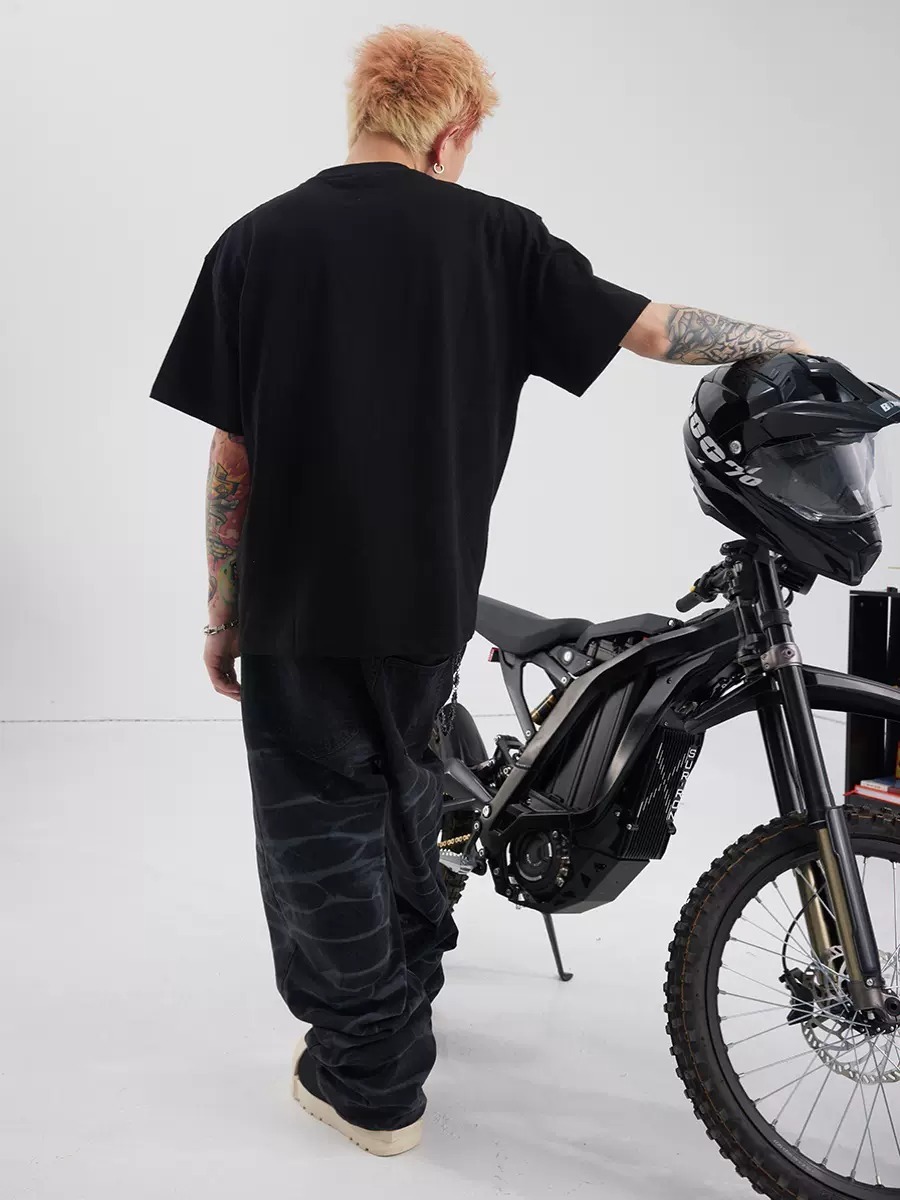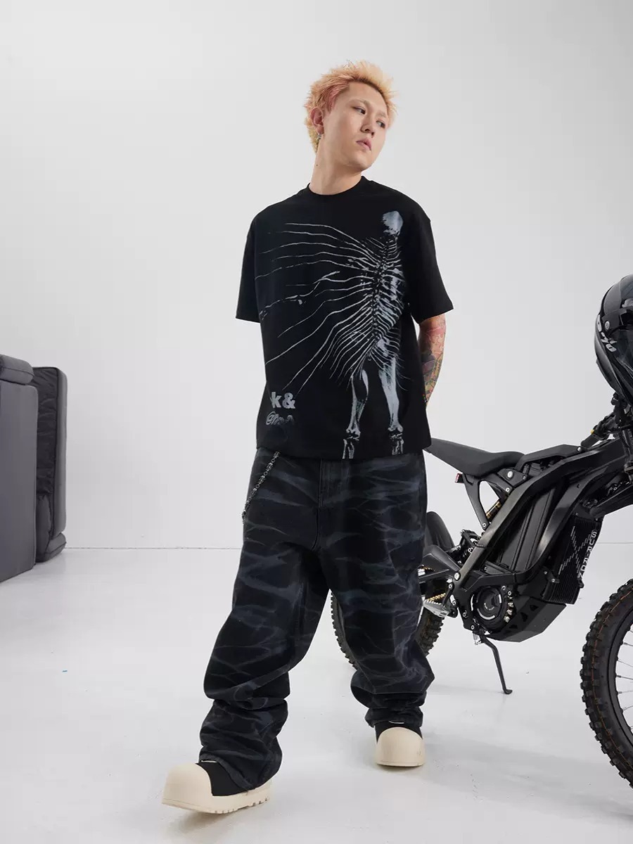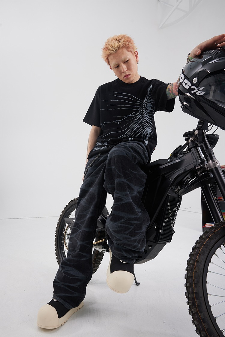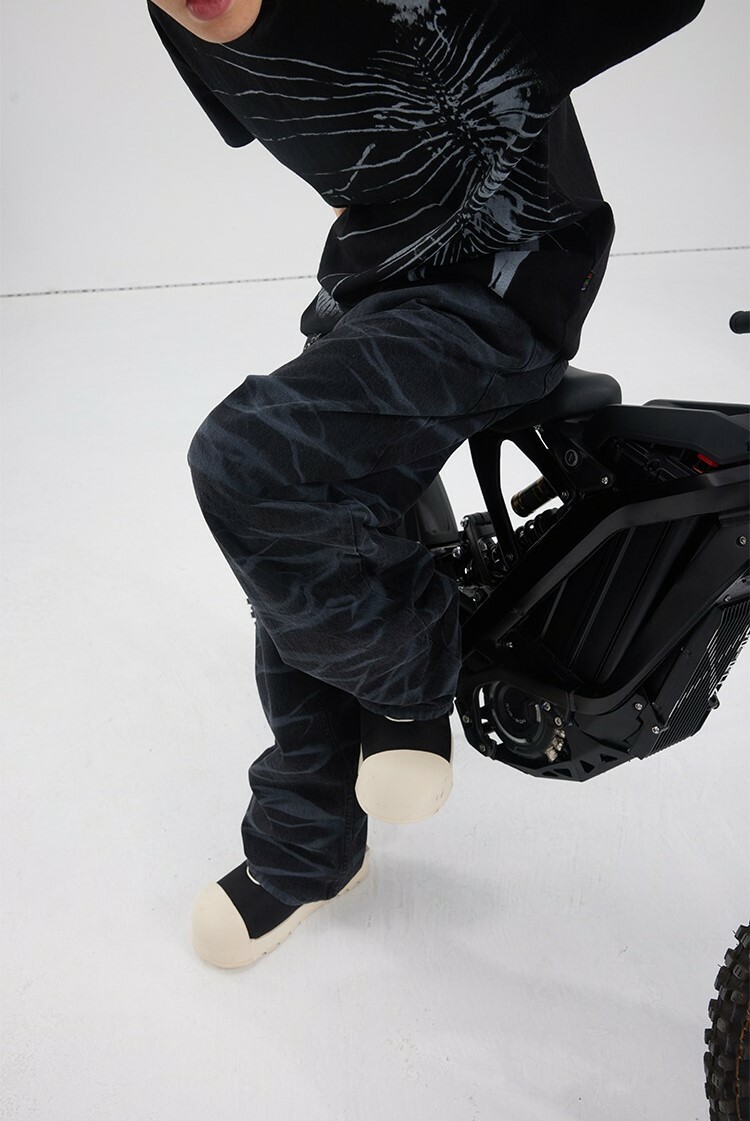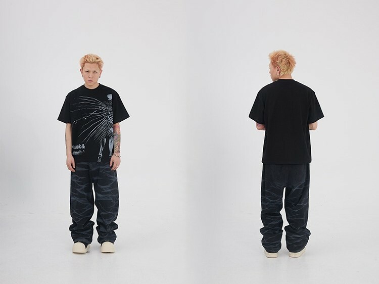 BLACK8MOB 水波紋寬鬆直筒牛仔褲