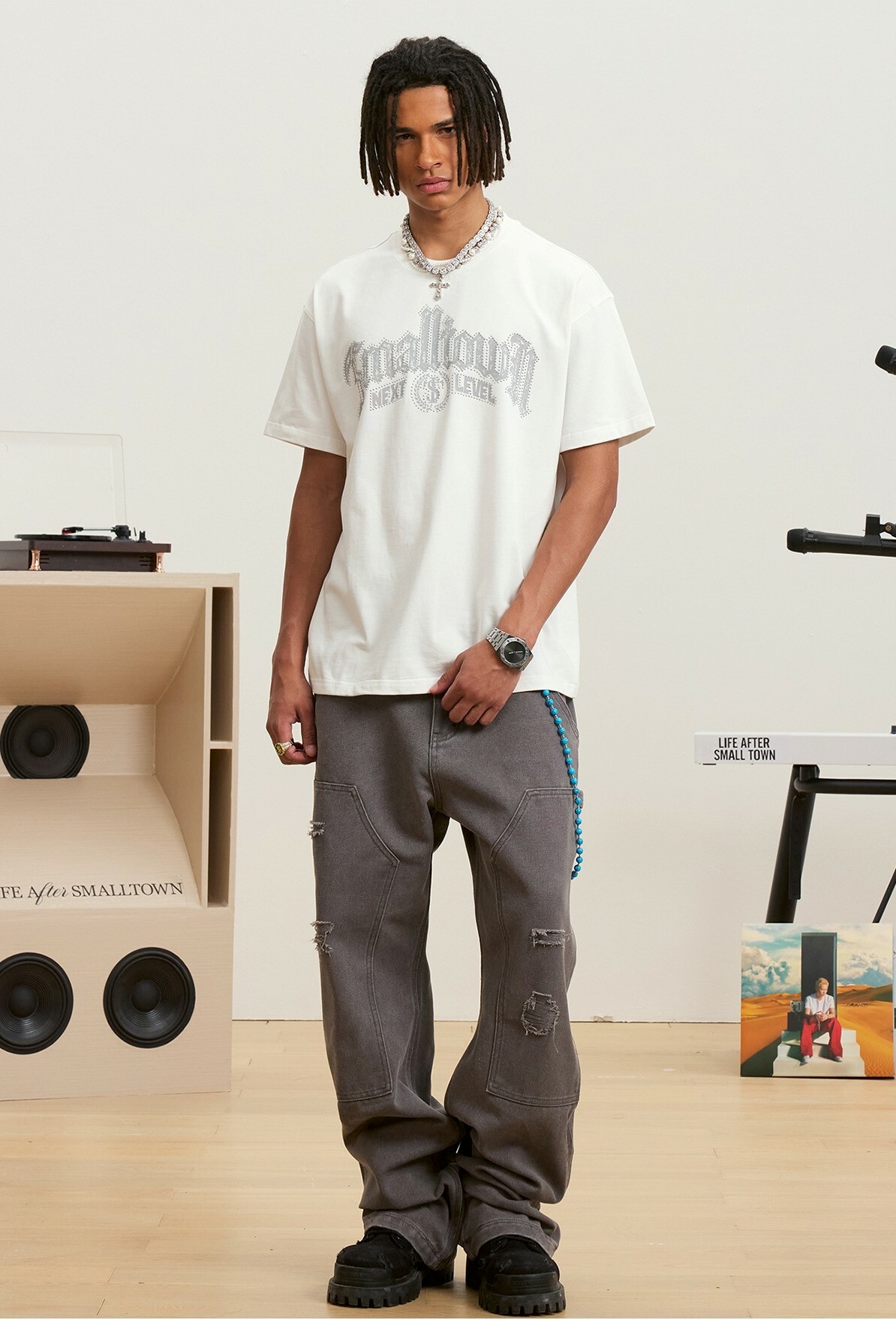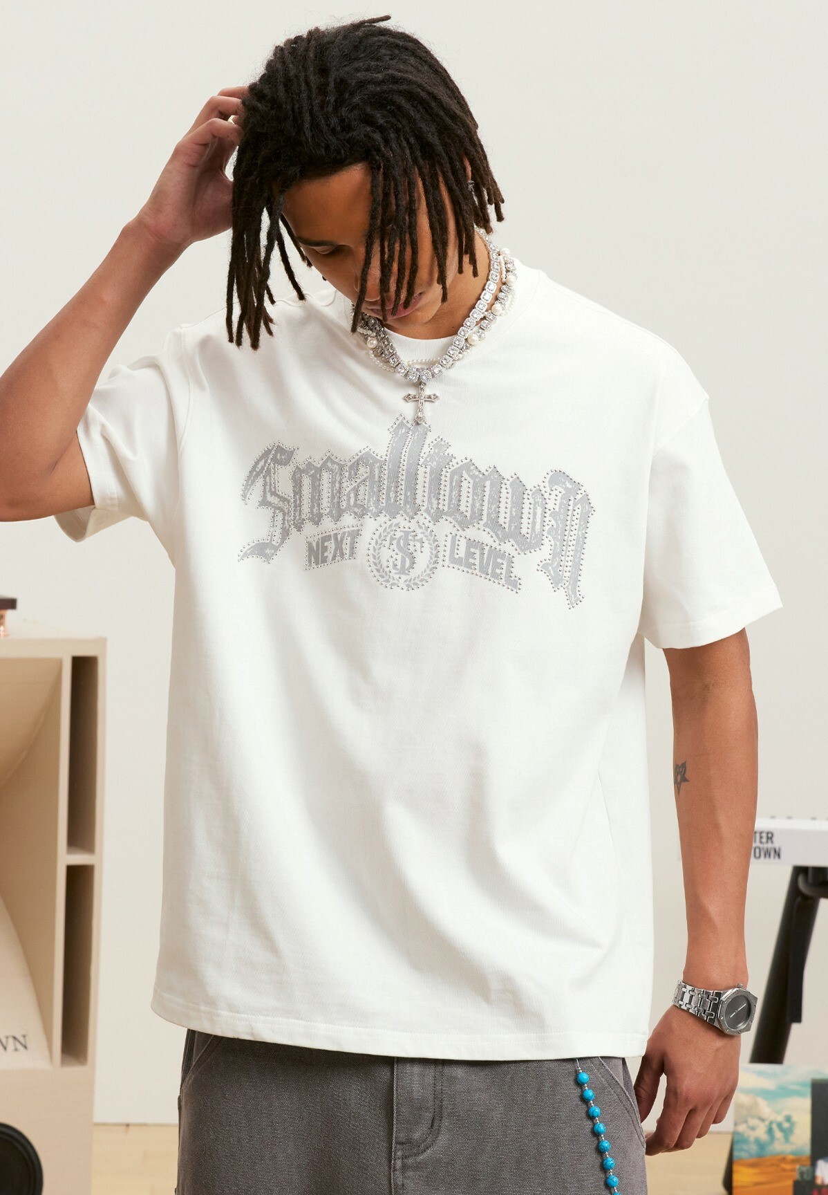 STK SmallTownKid 金屬钉印花 歌德字體 短袖 T恤