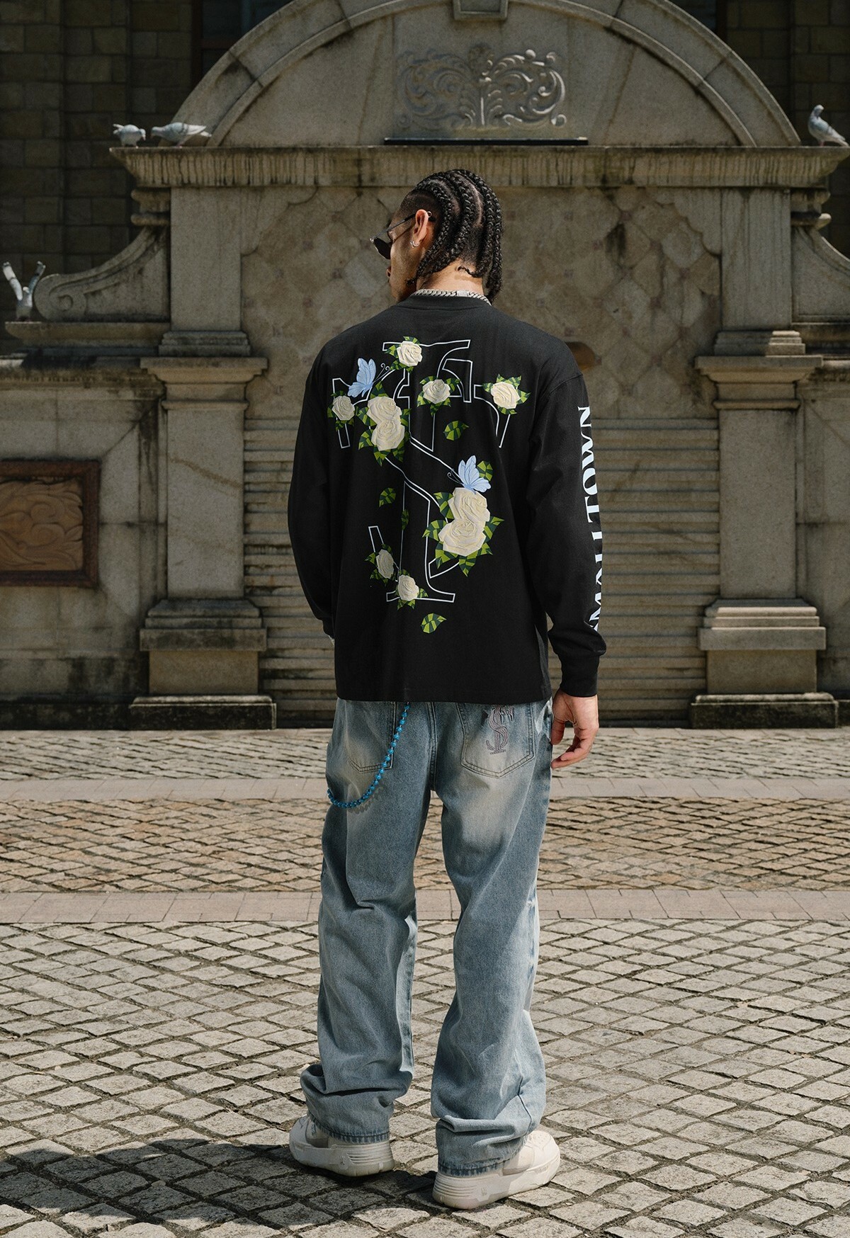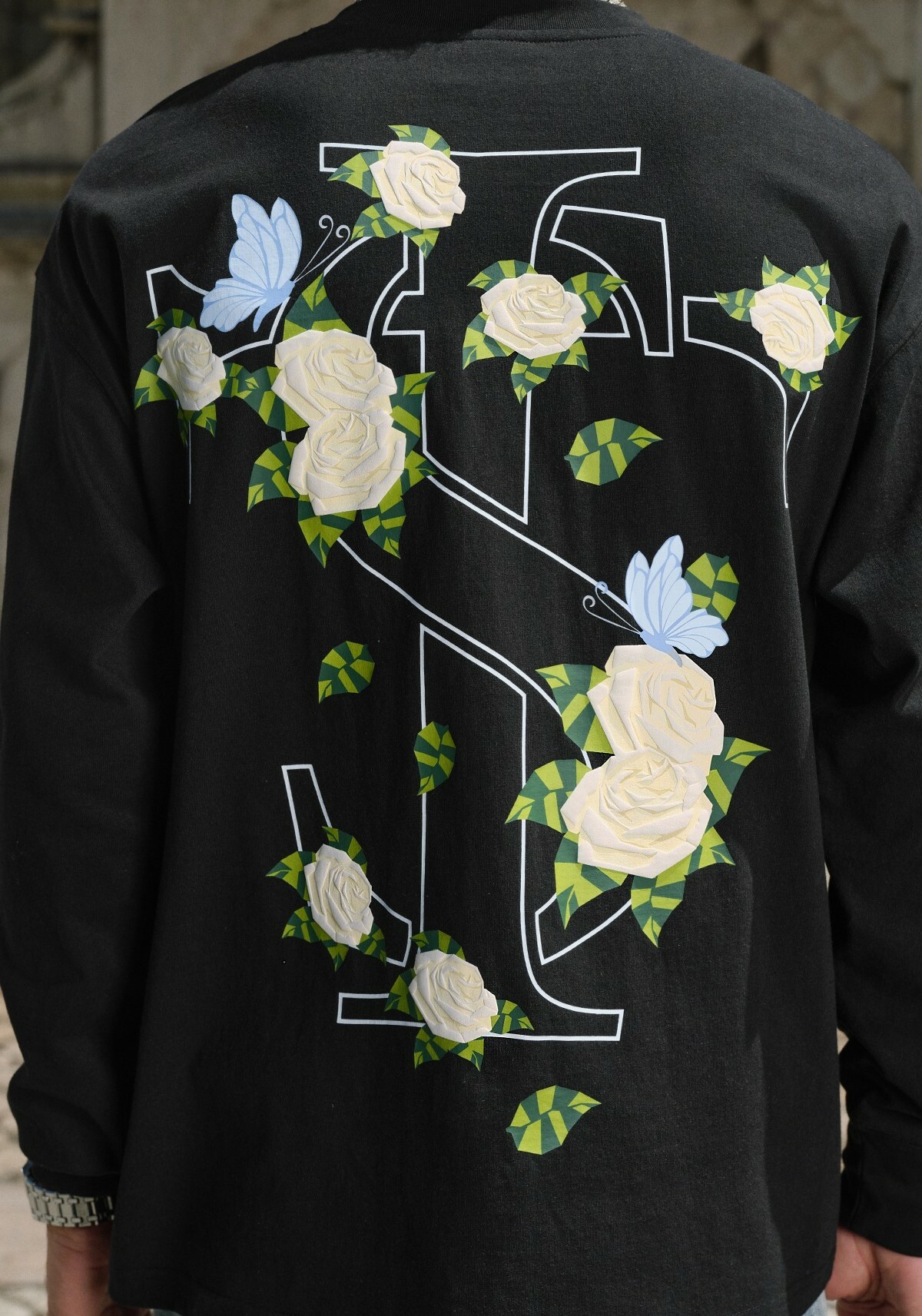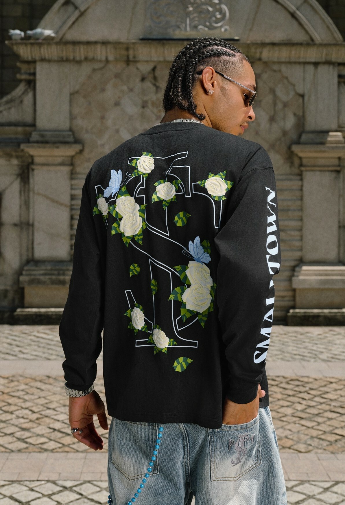 STK SmallTownKid 玫瑰蝴蝶 LOGO 長袖 T恤
