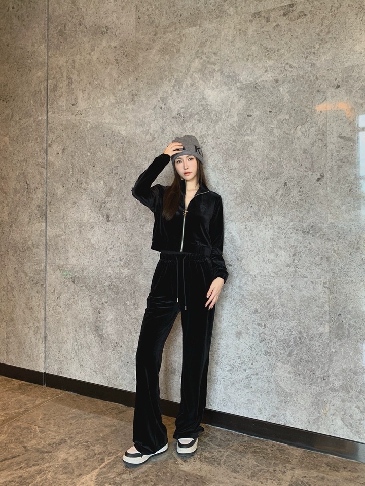 STK SmallTownKid 口袋十字刺繡Logo 絲絨運動長褲