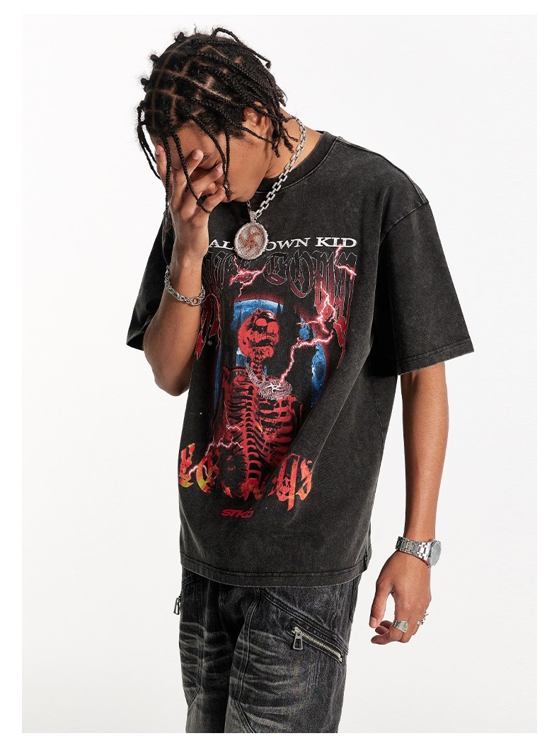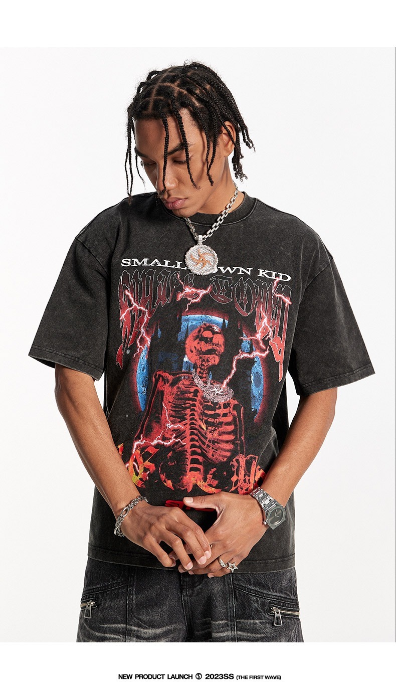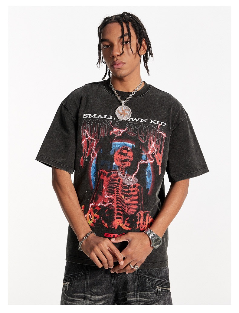 STK SmallTownKid 水洗作舊 骷髏印花 短袖 T恤