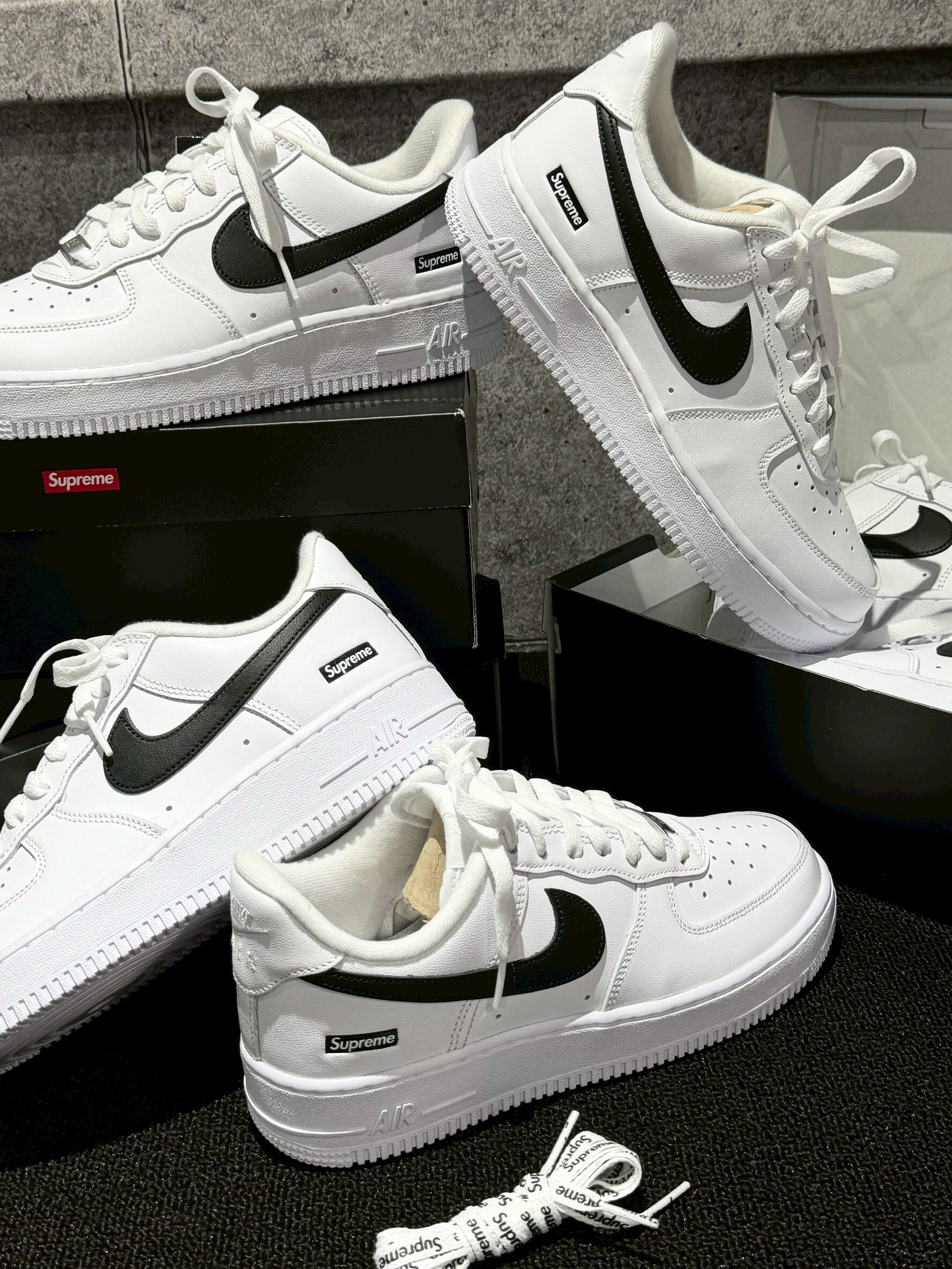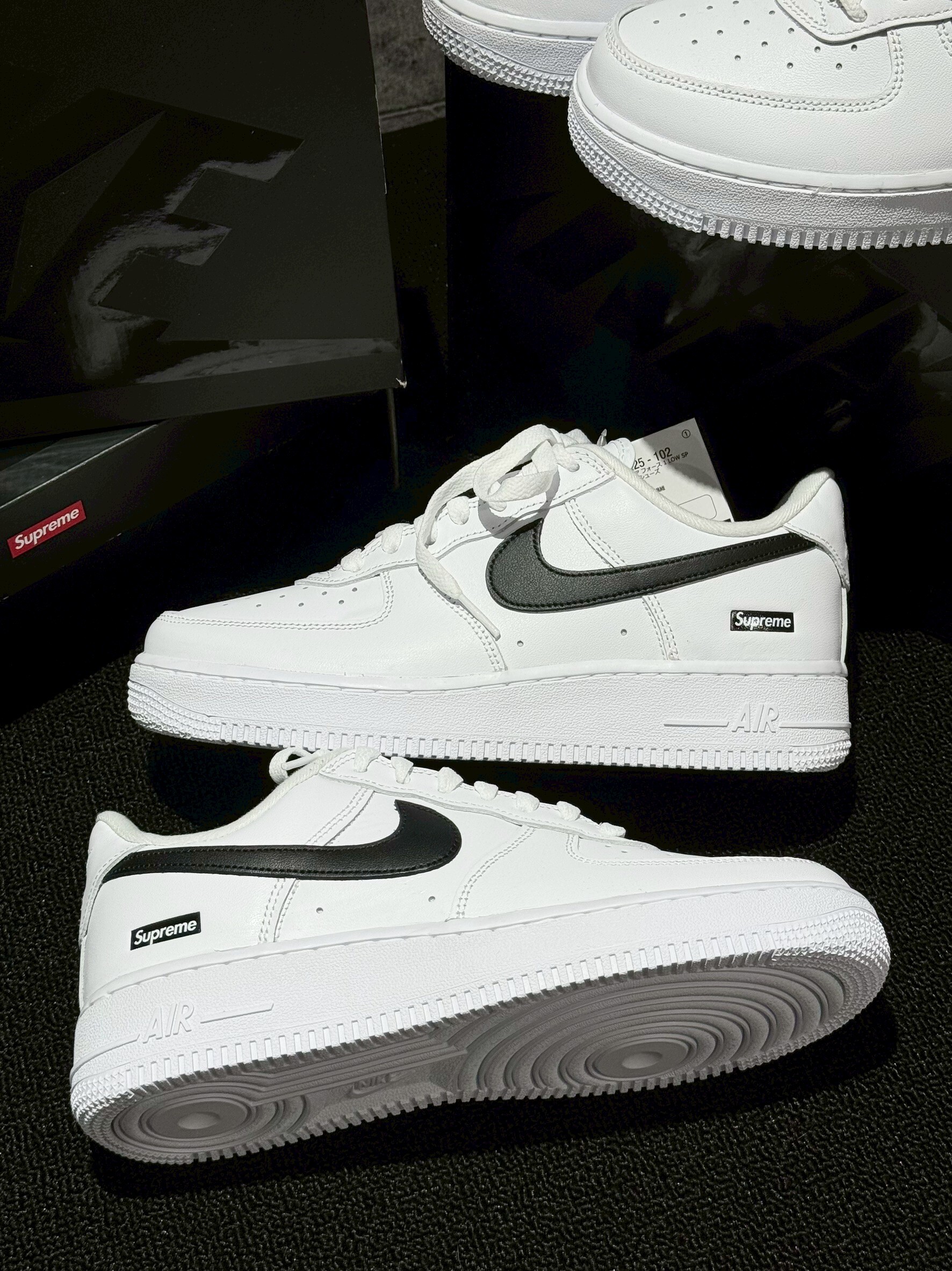 Supreme x Nike Air Force 1 Low 新款 白底黑標Logo