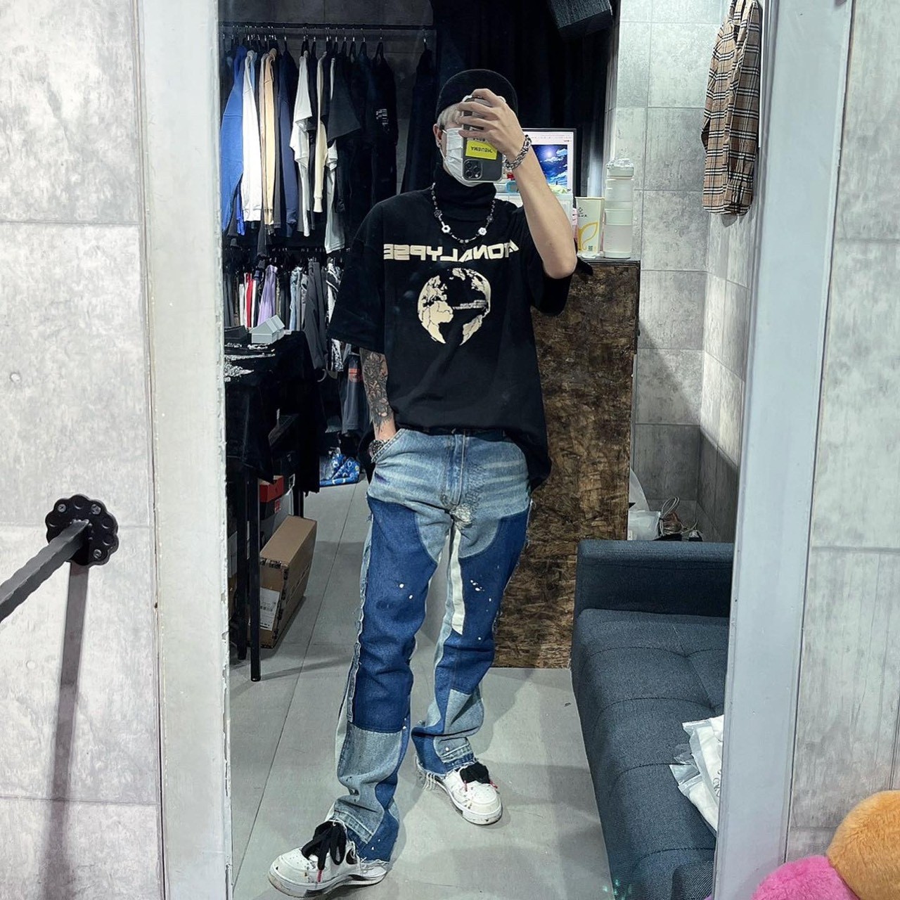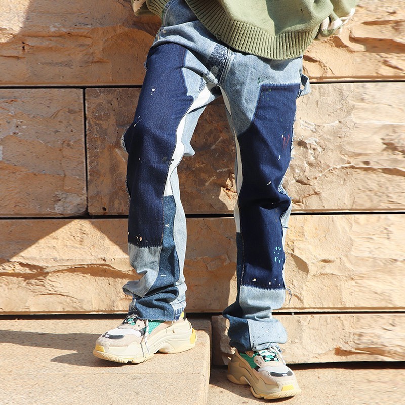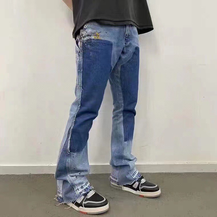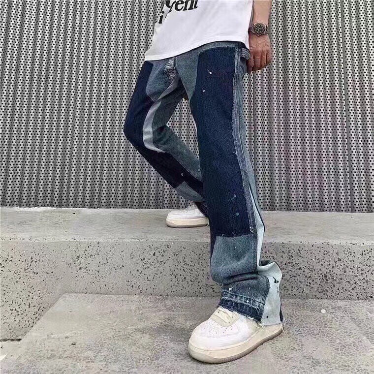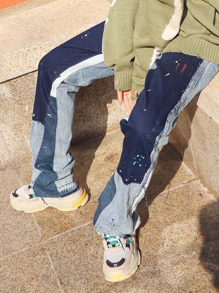 VIBE 超修身 潑墨 解構 拼接 微喇叭 闊腿褲 不收邊 牛仔褲